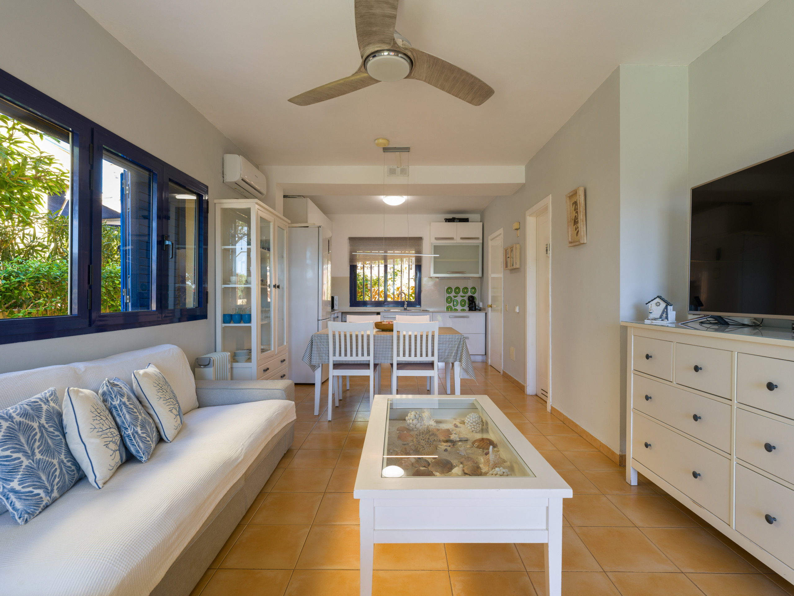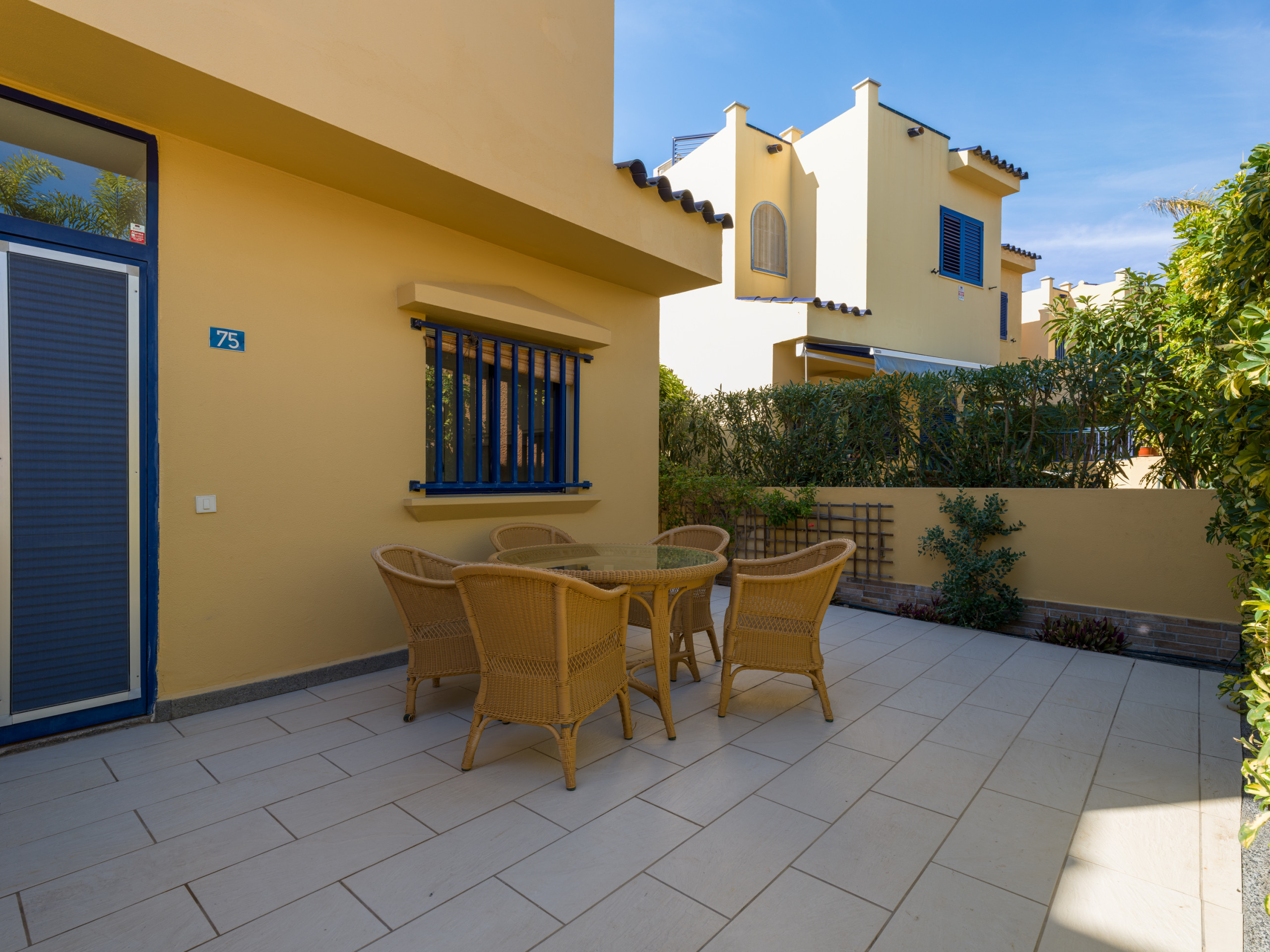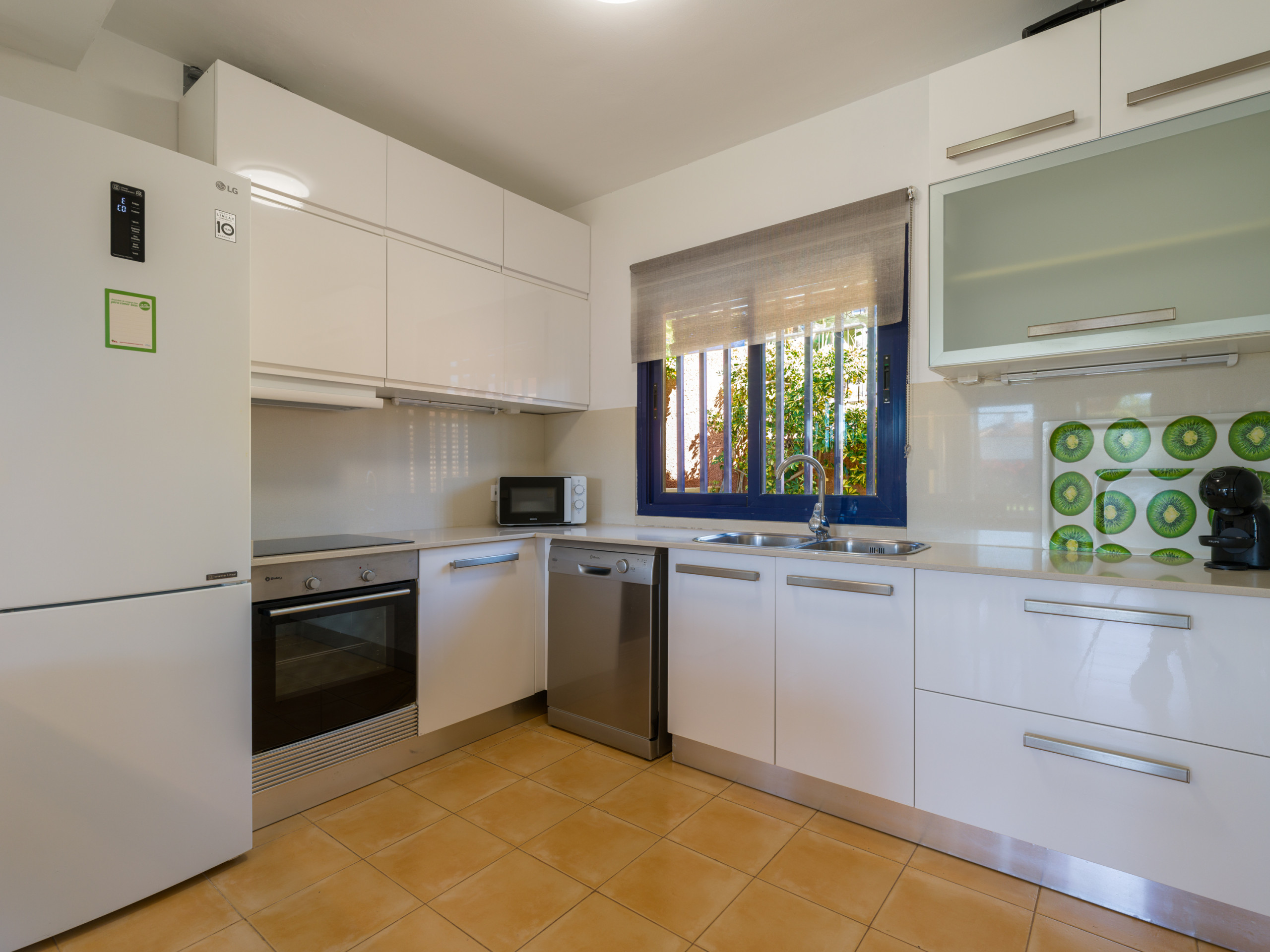 Es hat einen großen Garten mit Möbeln und Sonnenliegen, ideal zum Essen, Sonnenbaden und Entspannen. Das Grundstück ist eingezäunt und es gibt auch eine 10 m² große Terrasse auf der Rückseite. Es verfügt über alles, was Sie brauchen, um einen idealen Urlaub wie zu Hause zu verbringen, wie z.B. Bügeleisen, unbegrenzten Internetzugang (wifi), Haartrockner, Gemeinschaftspool und 2 Smart TVs. Die offene Küche ist mit dem Wohnzimmer verbunden und mit hochwertigen Geräten ausgestattet: Cerankochfeld, Kühlschrank, Mikrowelle, Backofen, Gefrierschrank, Waschmaschine, Geschirrspüler, Geschirr/Besteck, Küchenutensilien, Kaffeemaschine, Toaster, Wasserkocher und Saftpresse.