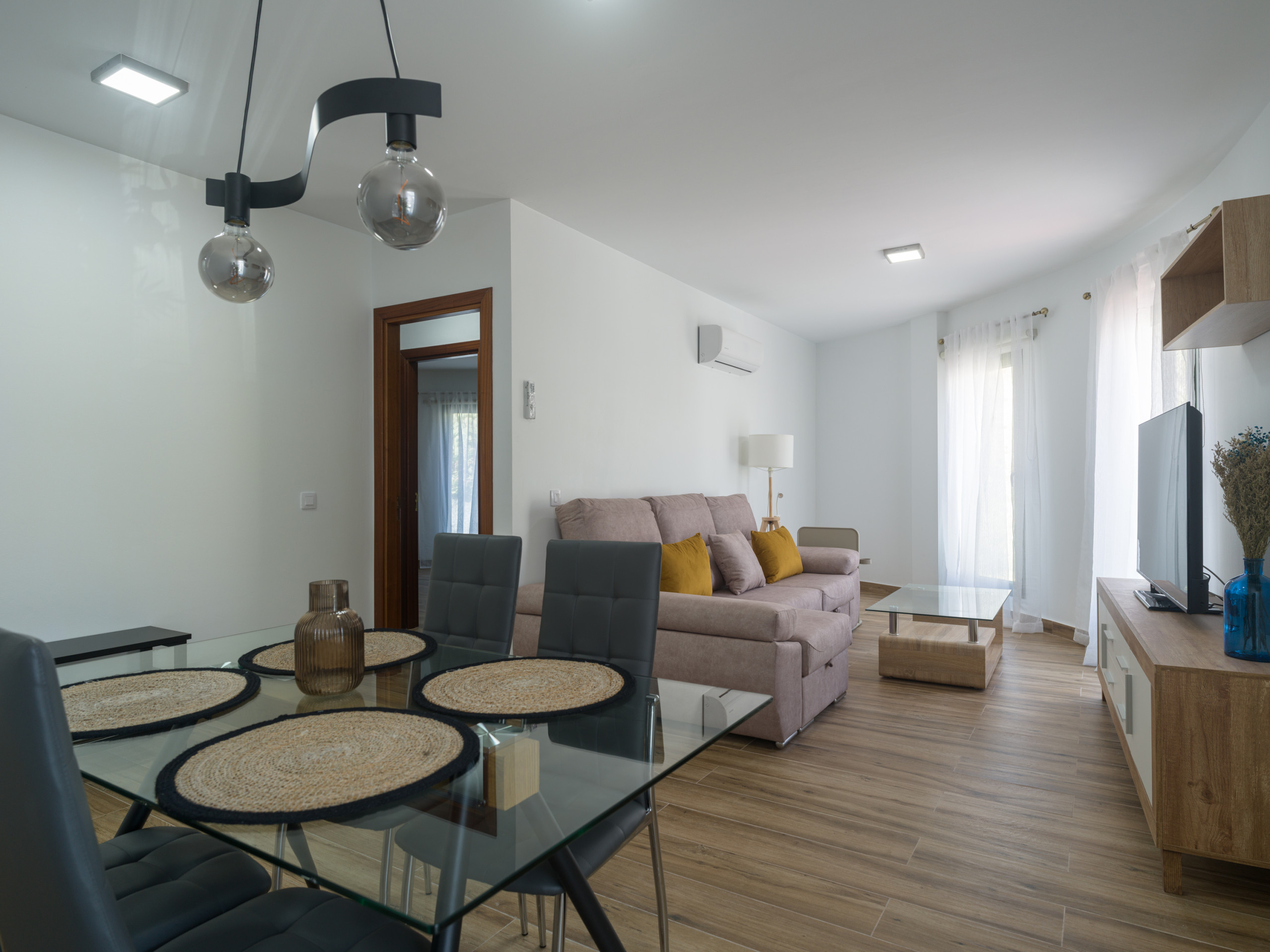 Diese Zwei-Zimmer-Wohnung bietet eine warme, helle und funktionale Atmosphäre, die auf Erholung und Komfort ausgelegt ist. Sie verfügt über Klimaanlage in der gesamten Wohnung und eine perfekte Aufteilung für bis zu 4 Personen, mit einem Schlafzimmer mit Doppelbett und einem anderen mit Einzelbett.