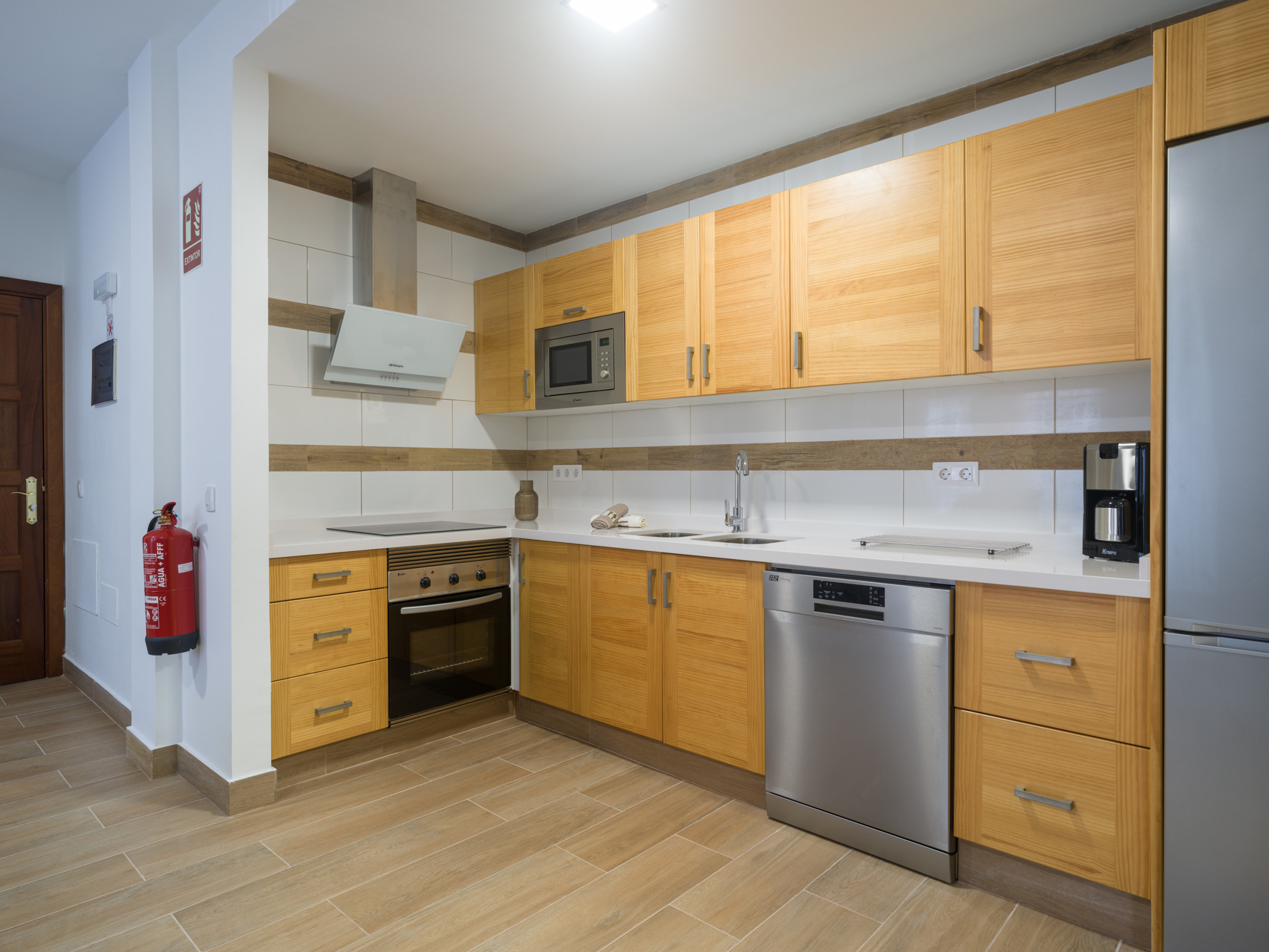 Die amerikanische Küche ist komplett ausgestattet und verfügt über moderne Haushaltsgeräte wie Waschmaschine, Geschirrspüler, Backofen, Mikrowelle und Kaffeemaschine sowie alles, was Sie benötigen, um Ihre Mahlzeiten mit größtmöglichem Komfort zuzubereiten.