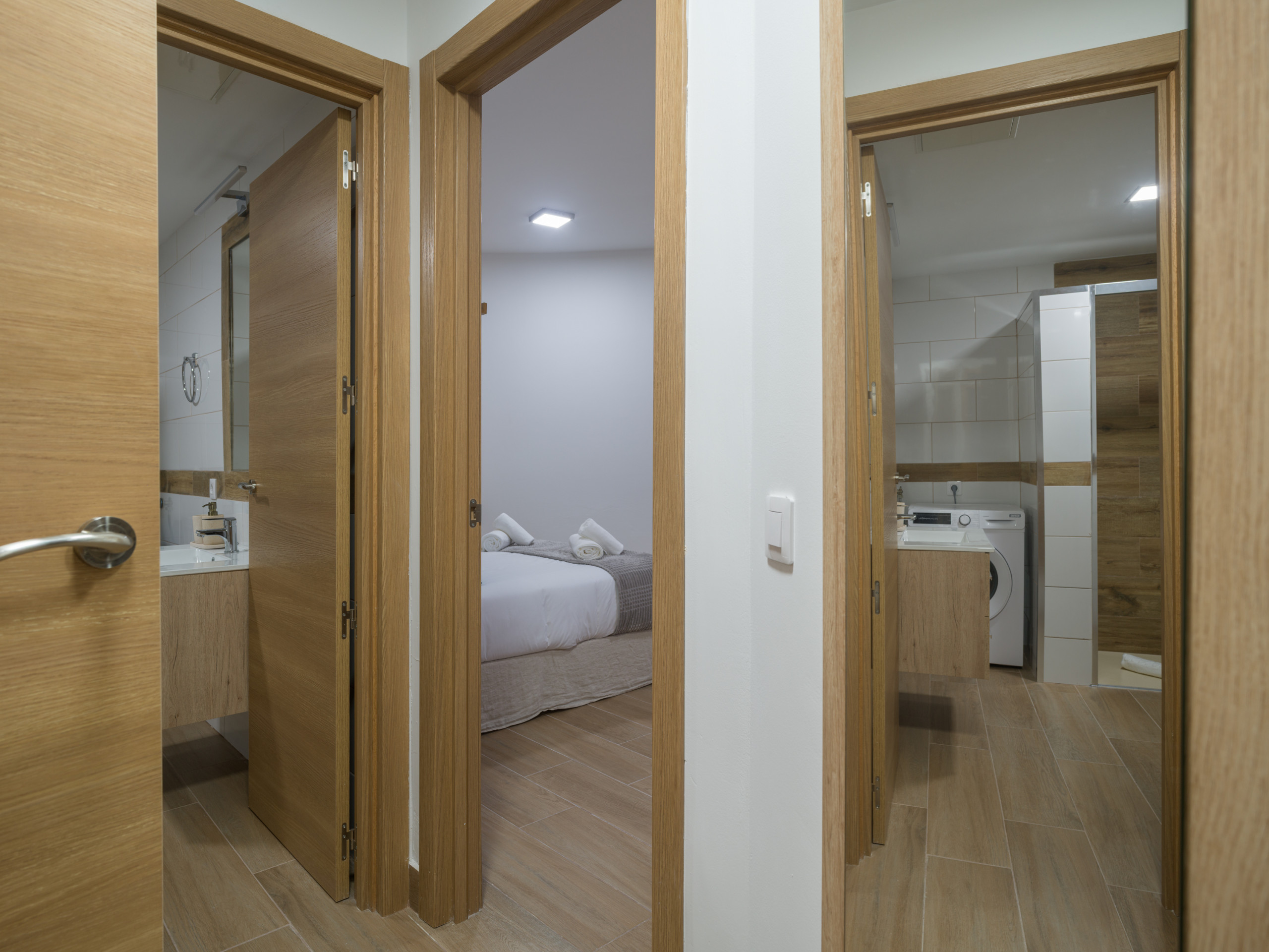 Die Unterkunft verfügt über zwei Schlafzimmer, eines mit Doppelbett und das andere mit Einzelbett, was sie ideal für kleine Familien oder kleine Gruppen macht. Ihr modernes und lichtdurchflutetes Design schafft eine angenehme und komfortable Atmosphäre, die darauf ausgelegt ist, dass Sie sich von Anfang an wie zu Hause fühlen.