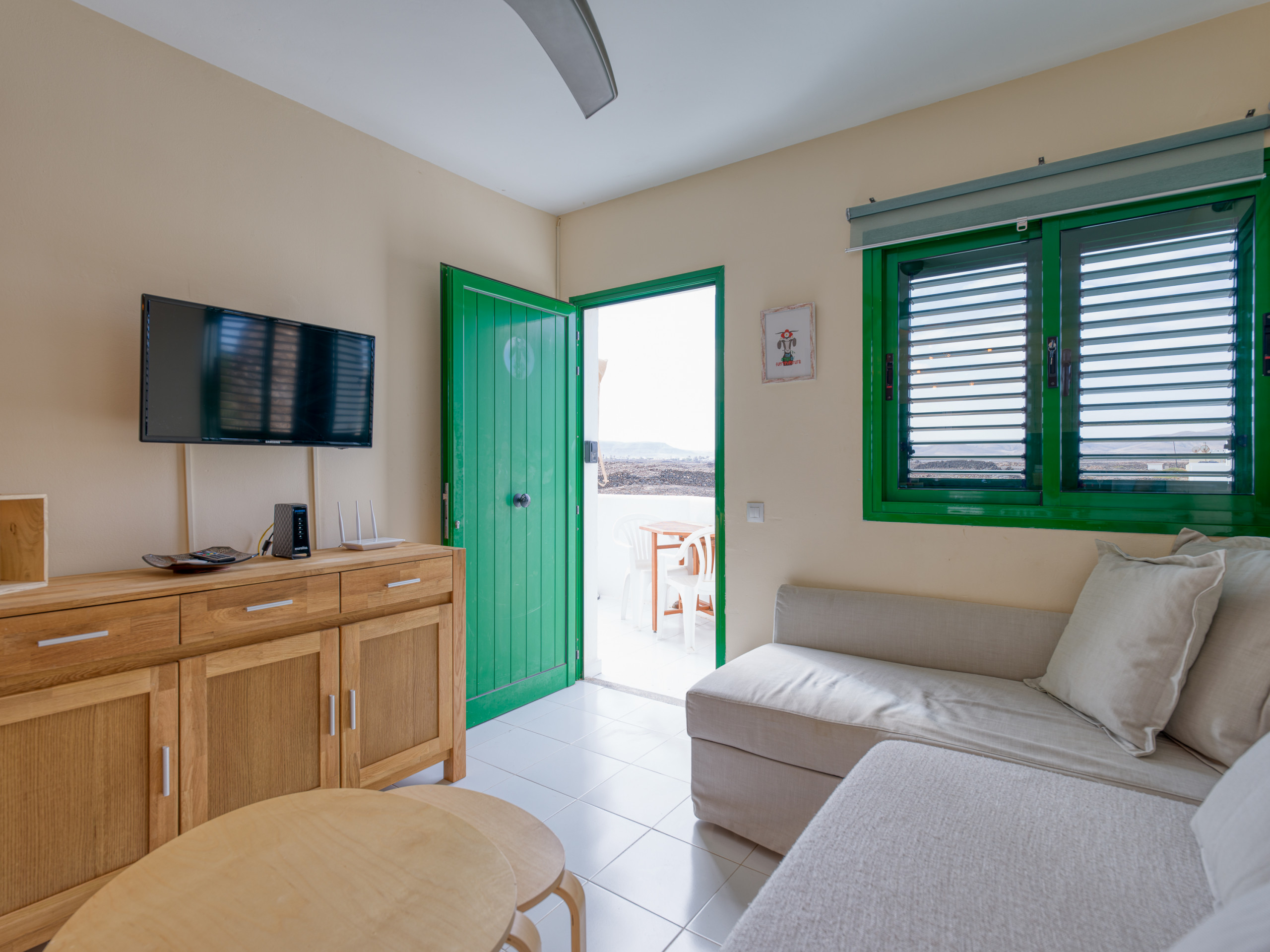 Es liegt in einer ruhigen Gegend, direkt am Strand von Los Lagos, und bietet die Möglichkeit, von der Terrasse aus den Blick auf vulkanische und menschenleere Gebiete sowie vom Fenster aus auf das Meer zu genießen.