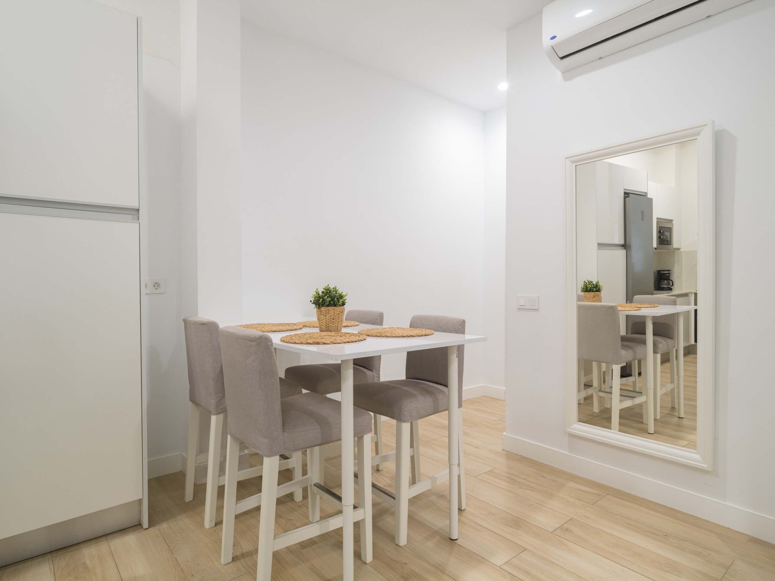 Es verfügt über ein Schlafzimmer mit Doppelbett, einen ausgestatteten Raum für Telearbeit, ein Badezimmer mit Dusche, ein gemütliches Wohnzimmer mit Esstisch und eine voll ausgestattete Küche mit Keramikkochfeld, Kühlschrank, Mikrowelle, Gefrierschrank, Waschmaschine, Geschirr, Besteck, Küchenutensilien, Kaffeemaschine, Toaster, Wasserkocher, Saftpresse usw. Darüber hinaus verfügt es über zwei Fernseher, ein Bügeleisen, einen Trockner und eine unbegrenzte Wi-Fi-Verbindung.
