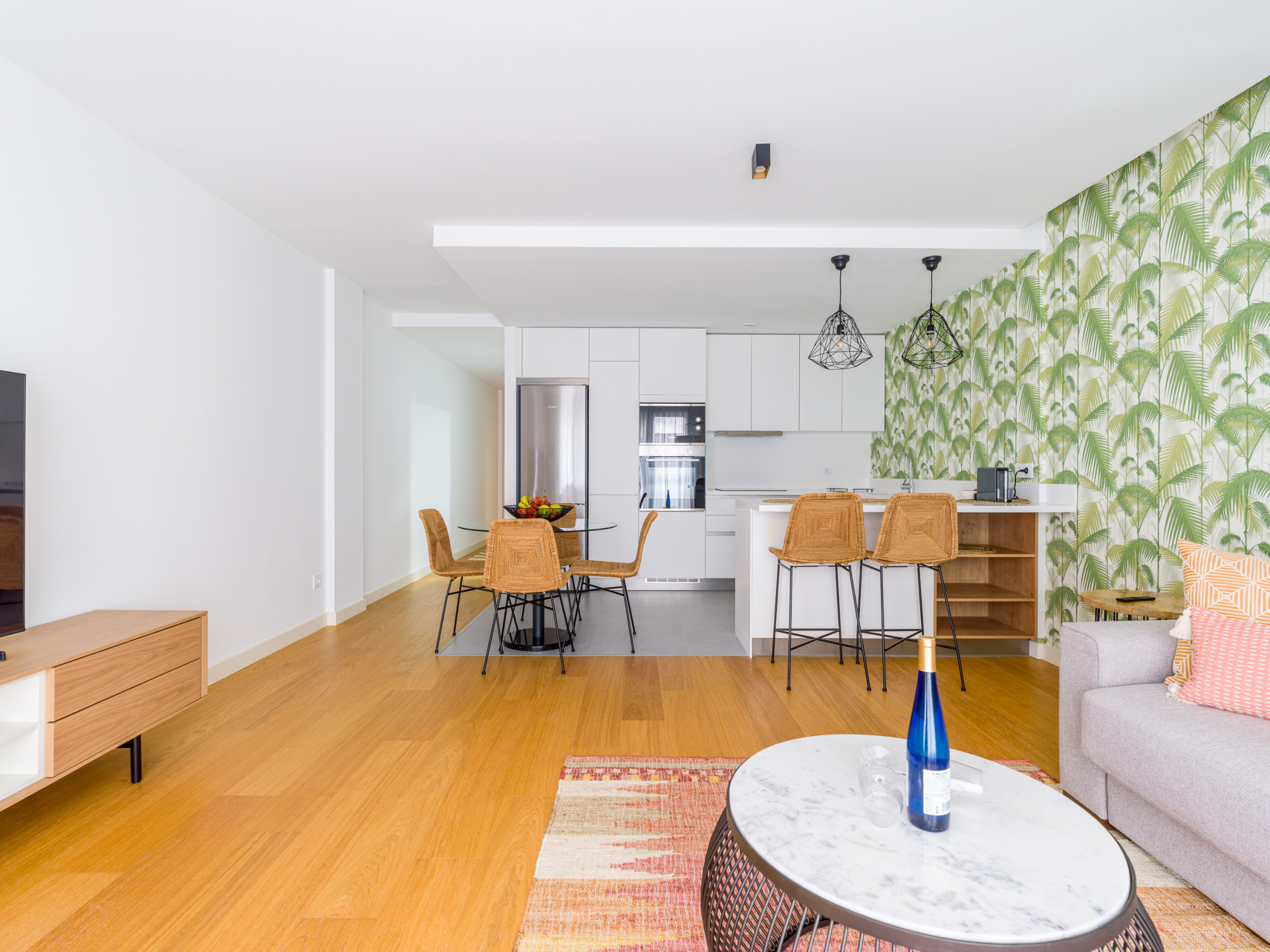Die Unterkunft ist mit einer modernen und gemütlichen Note für eine Saison gestaltet, bei der alles, was Sie benötigen, nur wenige Schritte entfernt ist. Wir verfügen über Smart-TV und WLAN mit einer Geschwindigkeit von bis zu 1 GB für Personen, die Telearbeit leisten müssen oder einfach nur mit dem Internet verbunden sein möchten. Wir haben auch eine voll ausgestattete Küche mit Ofen, Kühlschrank, Geschirrspüler, Kaffeemaschine, Waschmaschine, Trockner, Geschirr und Besteck. Insgesamt hat sie 69 Quadratmeter, die sich in Wohnzimmer-Küche, zwei Badezimmer, ein Doppelzimmer und ein weiteres Zimmer mit zwei Einzelbetten, eines davon ein Ausziehbett, aufteilen.