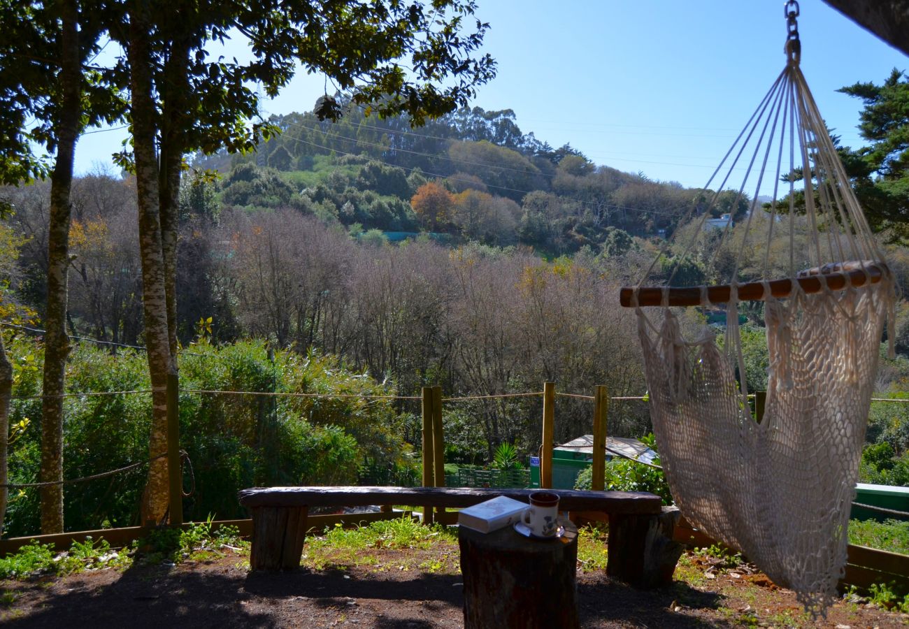Angebaute Holzhütte mit einem Bett von 1,4 Metern Breite und Toilette. (Zusätzliche Kosten)