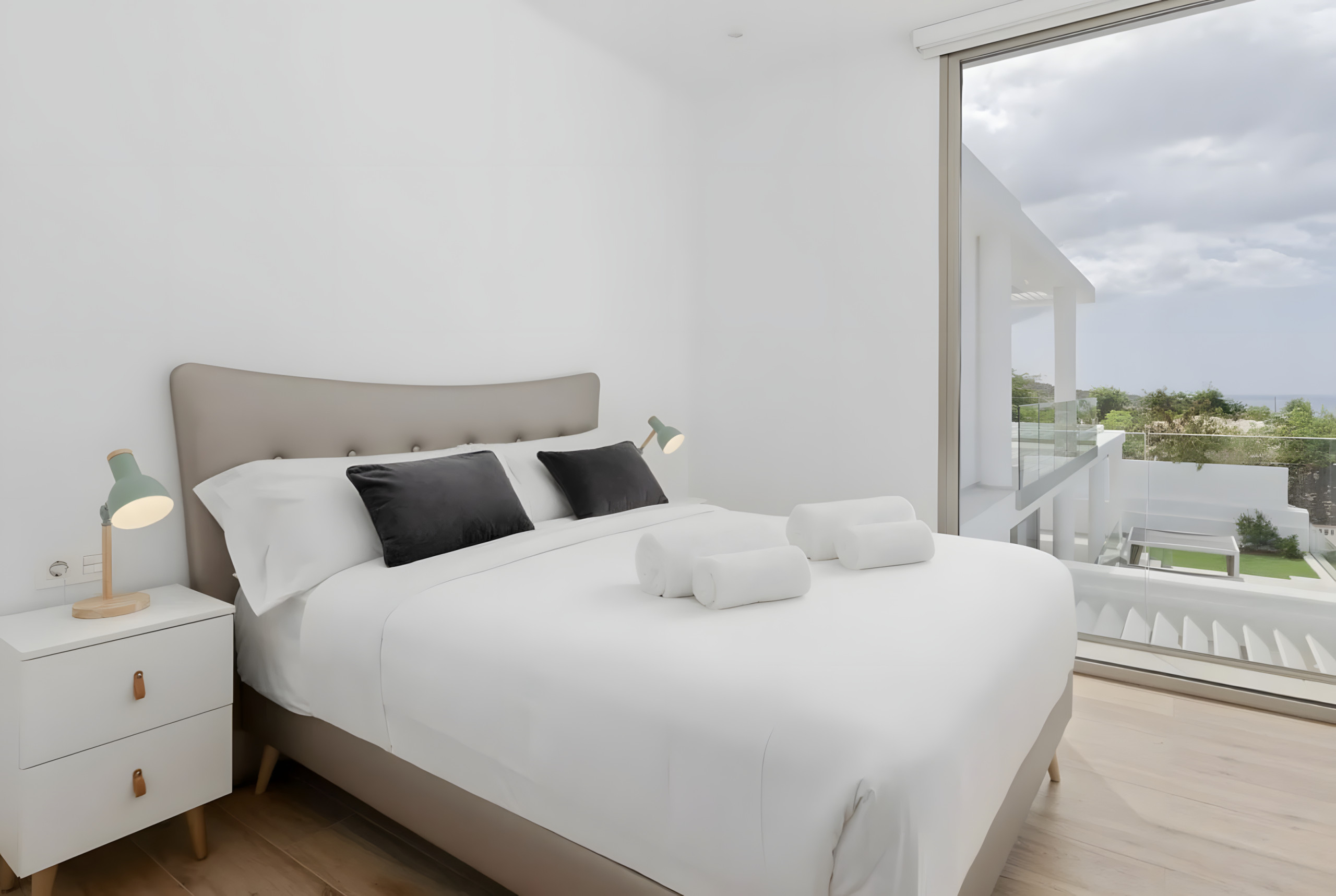 Steige hinauf und entdecke eine private Oase: drei Zimmer voller Ruhe und Eleganz, zwei davon en suite. Das Hauptschlafzimmer beschenkt dich mit einem Ankleidezimmer wie aus einem Film und einer Terrasse mit Whirlpool, ideal um zu beobachten, wie die Sonne hinter dem Meer versinkt, Drink in der Hand.