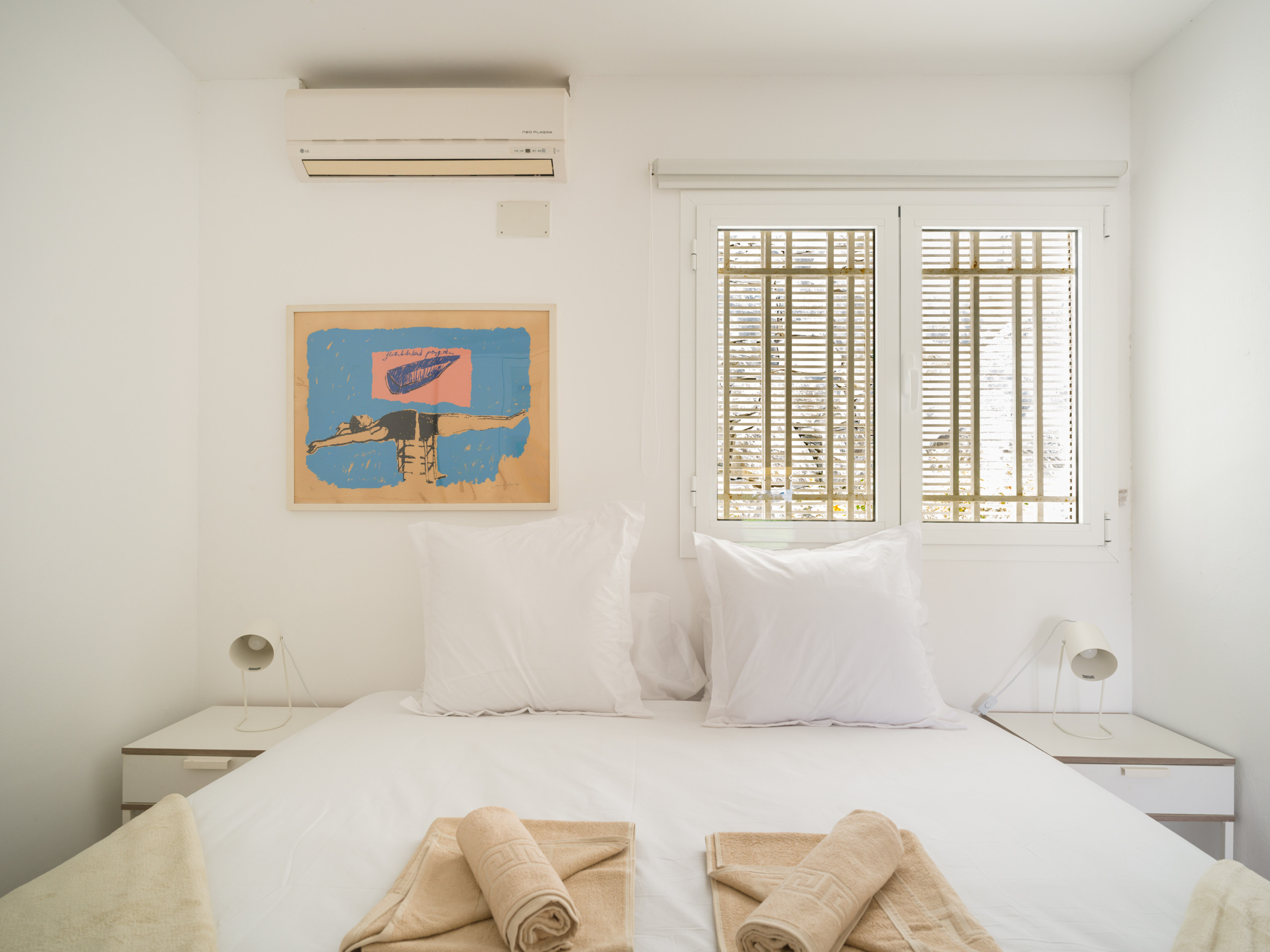 Este luminoso alojamiento de 54 metros cuadrados ofrece un ambiente cálido y funcional con capacidad para 4 personas. Cuenta con dos dormitorios: uno con cama queen size y otro con dos camas individuales, garantizando un descanso confortable para todos los huéspedes.