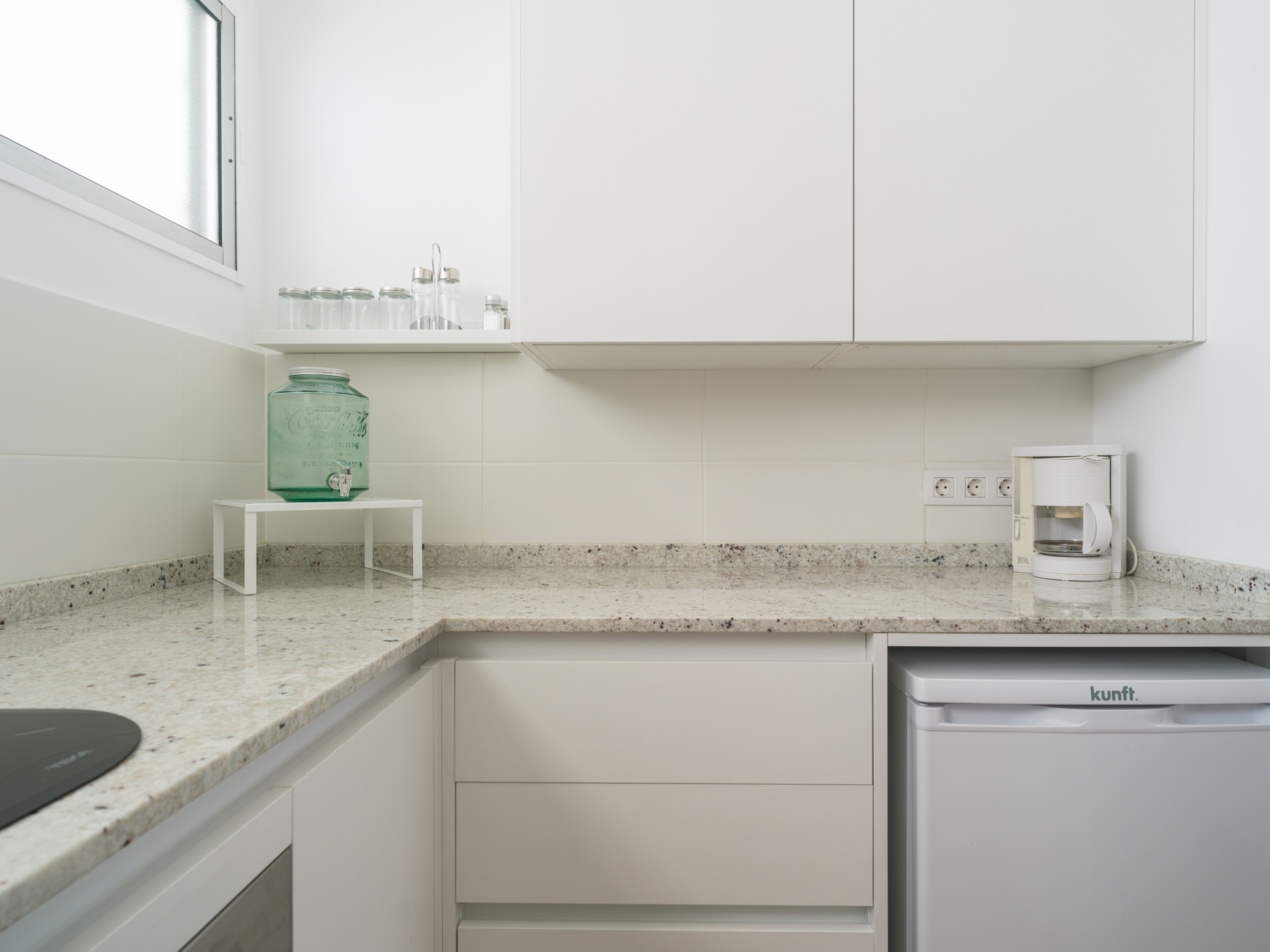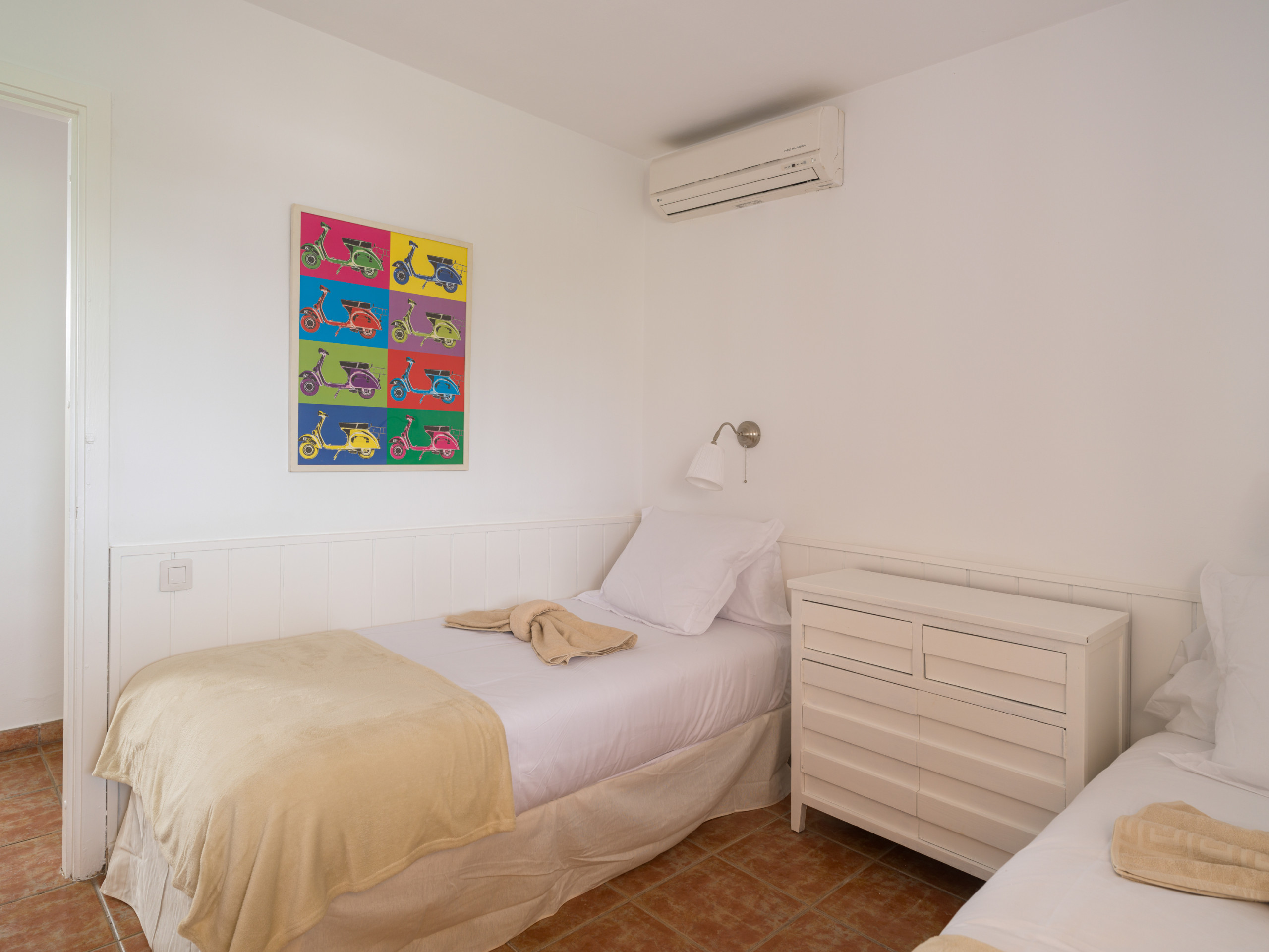 Cuenta con un dormitorio con cama de matrimonio y ventilador en techo. Salón-comedor con sofa cama para 2 personas (medidas 2.04m x 1.40m), cocina integrada totalmente equipada con lavavajillas, lavadora, utensilios de cocina.... Wifi de alta velocidad e ilimitado en toda la casa y smart Tv con canales internacionales. También cuenta con aire acondicionado en el salón y ventilador de techo en el dormitorio. Las amplias ventanas hacen que el interior sea muy luminoso durante todas las horas del día. Además hay un baño con ducha.
