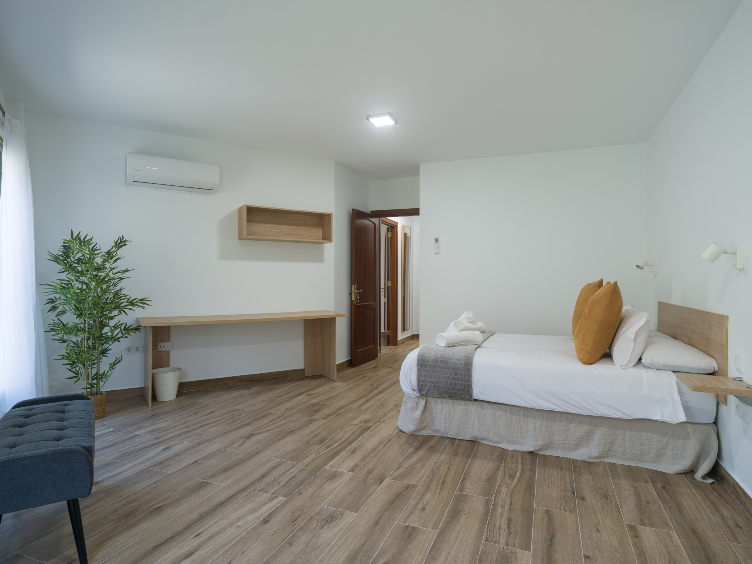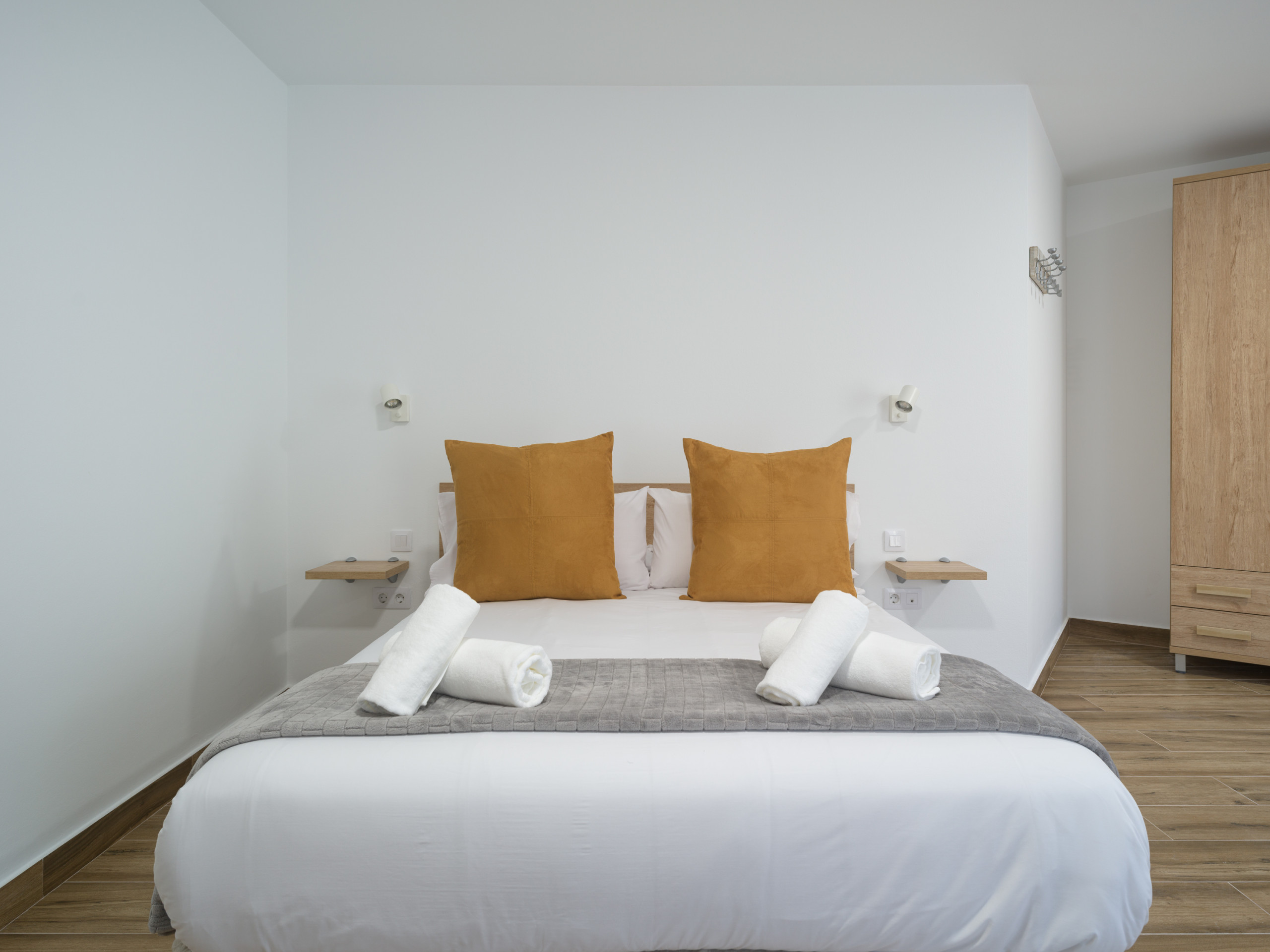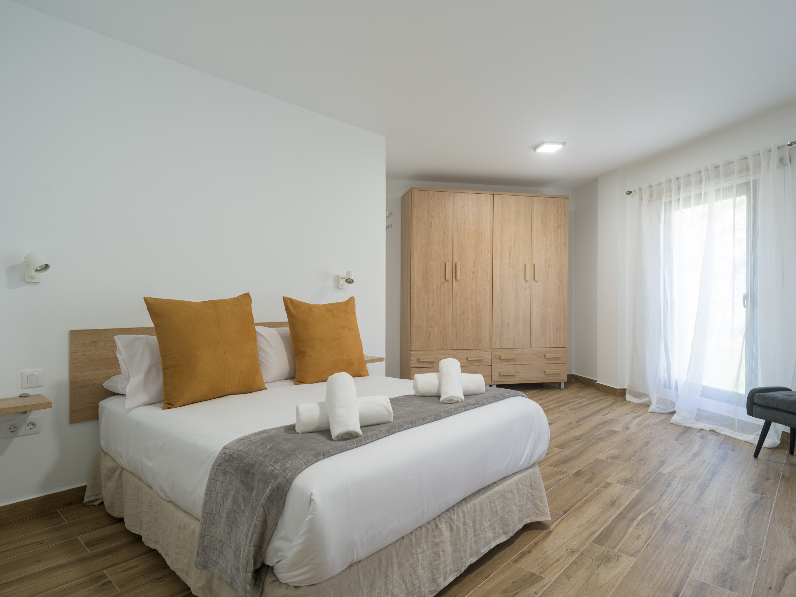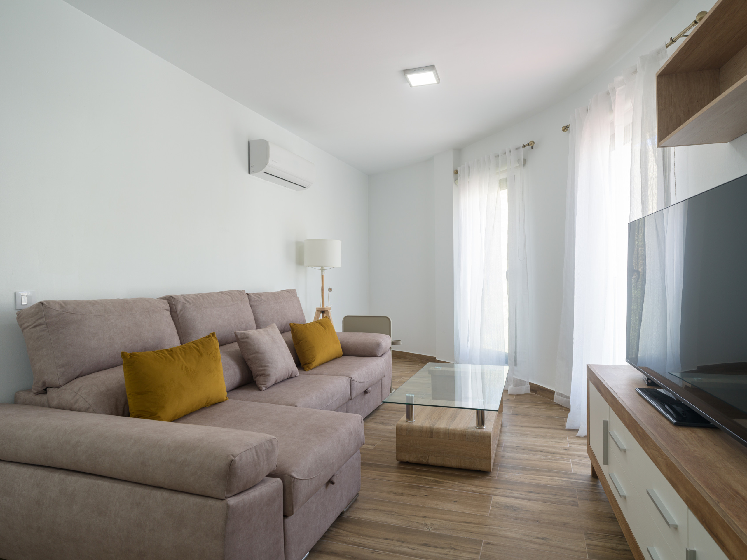 Este apartamento de dos dormitorios ofrece un ambiente cálido, luminoso y funcional, pensado para el descanso y la comodidad. Dispone de aire acondicionado en toda la vivienda y una distribución perfecta para hasta 4 personas, con un dormitorio con cama doble y otro con cama individual.