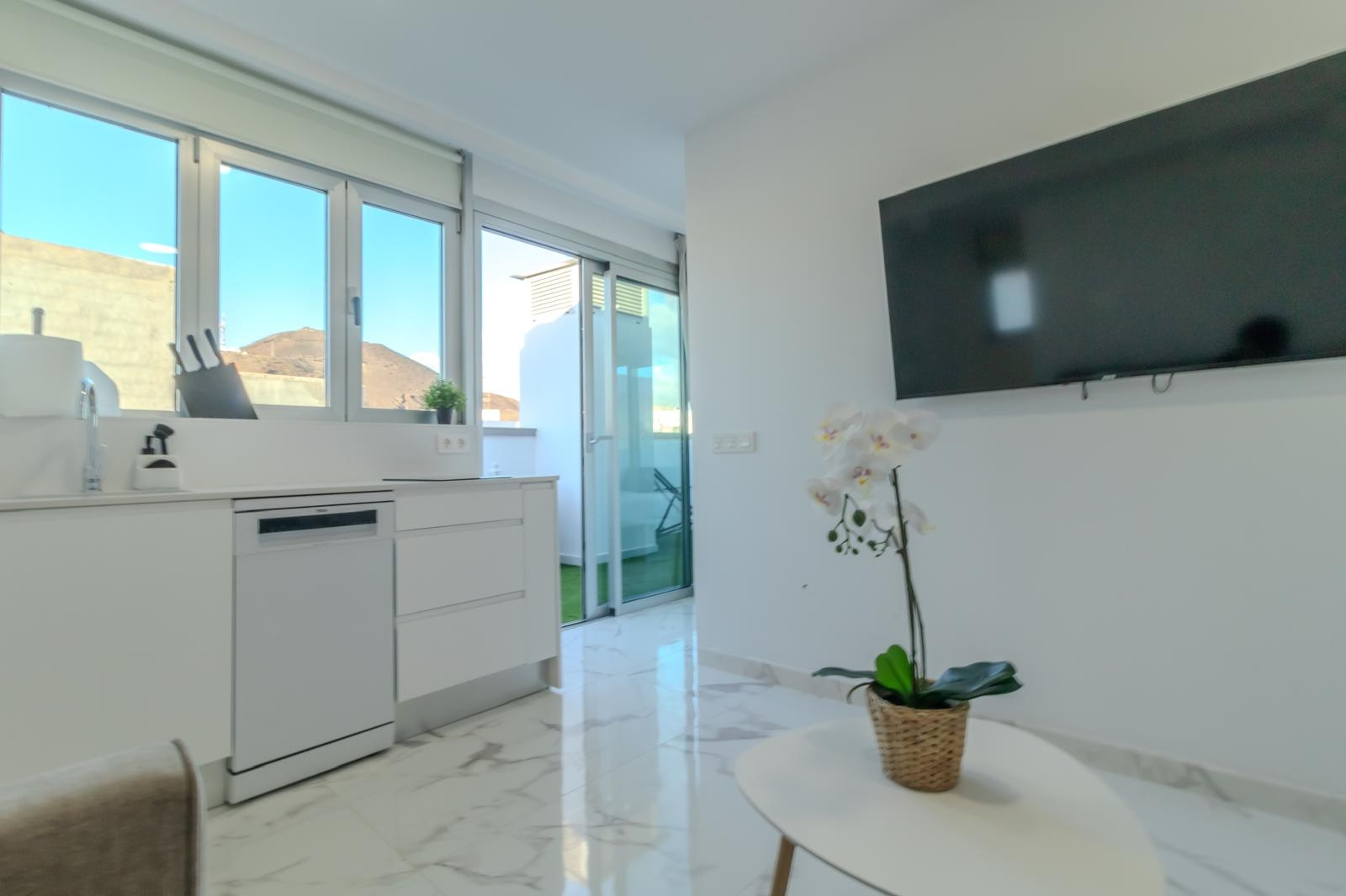 Los amantes de la terraza encontrarán un espacio exterior con muebles de jardín donde podrán relajarse y disfrutar de las vistas. Aunque no se permiten mascotas, el apartamento sí admite fumadores y ofrece un ambiente perfecto para parejas o viajeros individuales que buscan una experiencia auténtica en Gran Canaria.