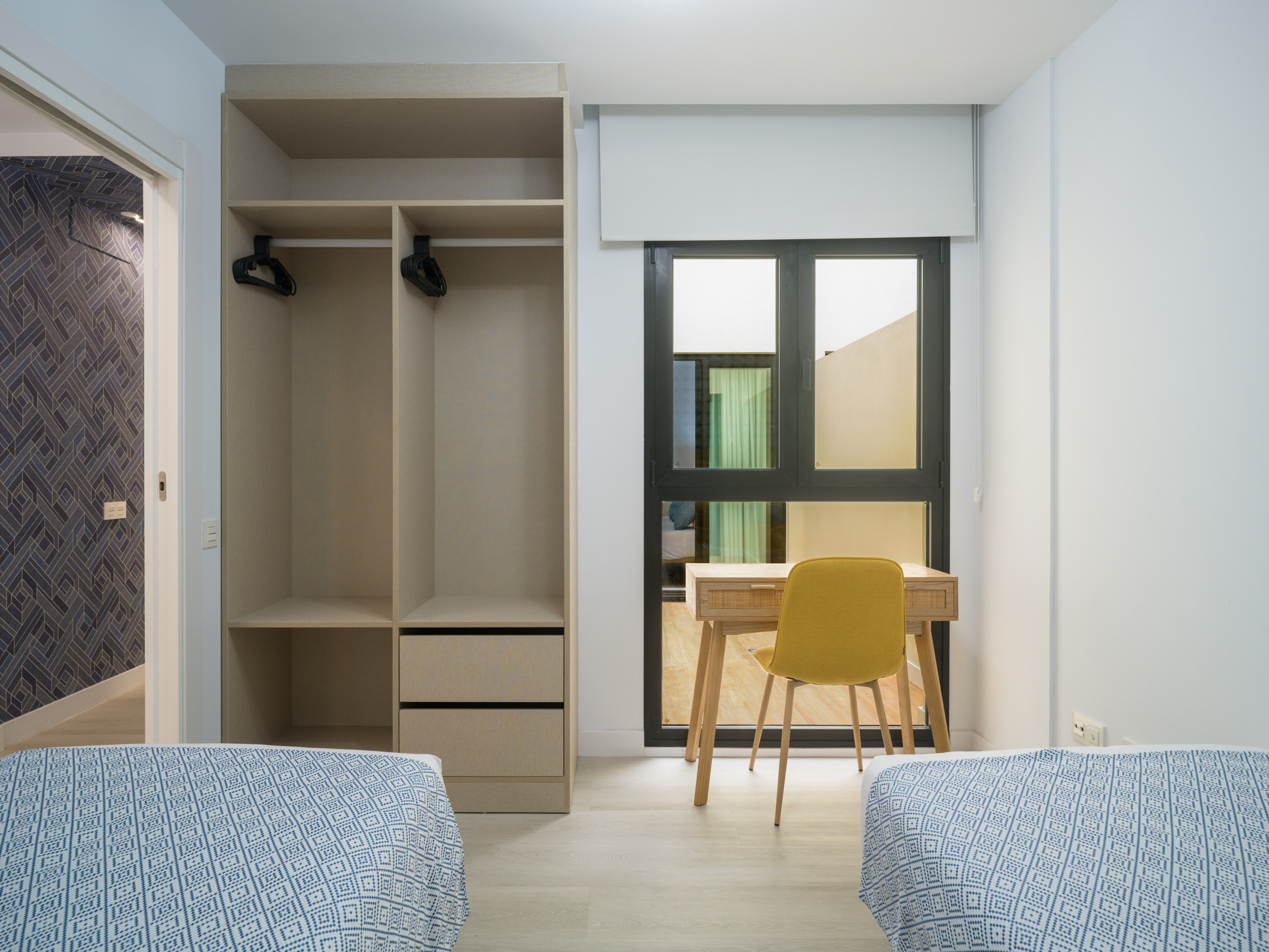 Cada habitación está diseñada pensando en su comodidad, con camas acogedoras y amplio espacio de almacenamiento para que se sienta como en casa.