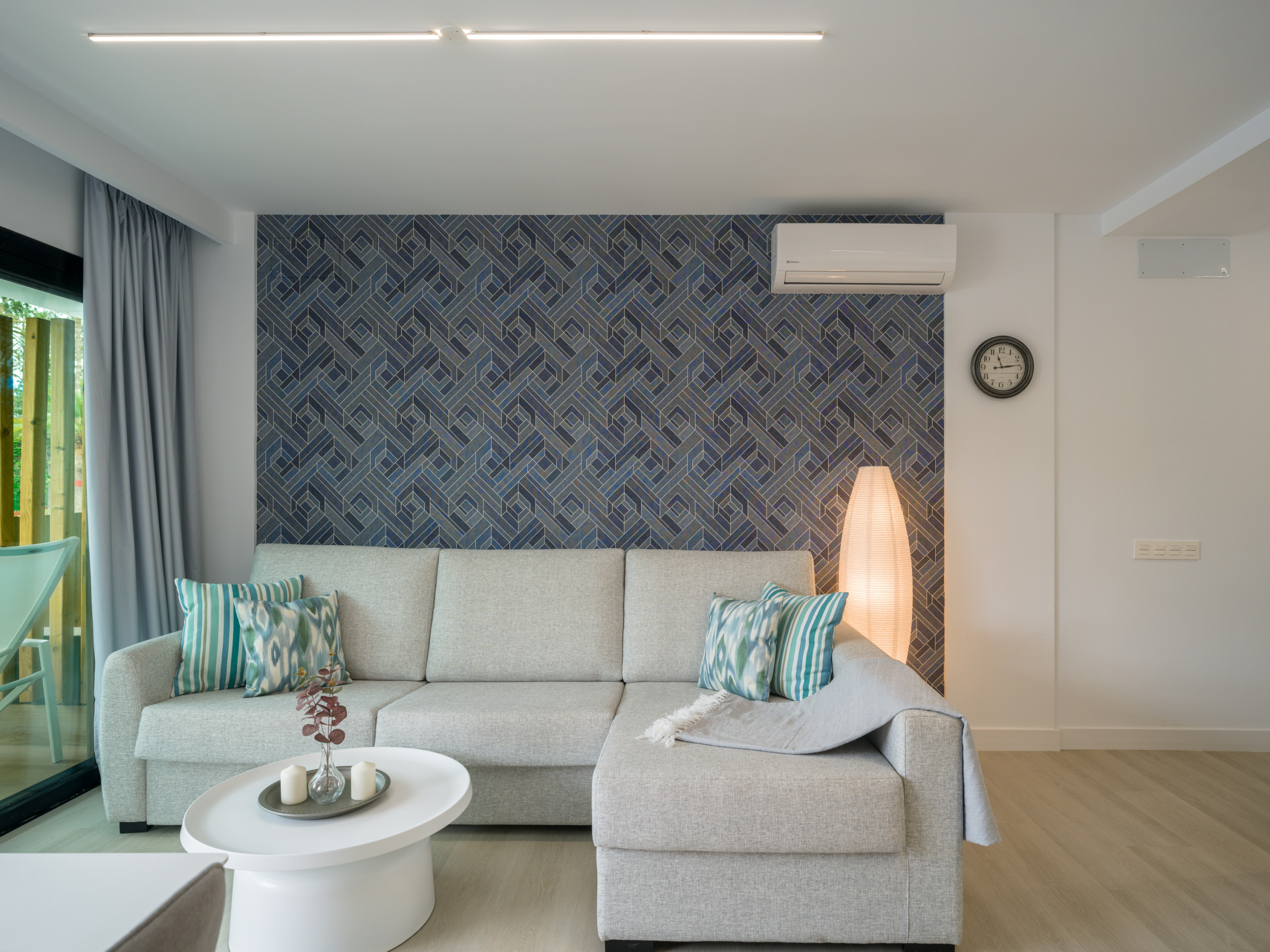 Con capacidad para 4 personas, el alojamiento cuenta con dos dormitorios que garantizan un descanso reparador. Uno de ellos incluye una cama king size, mientras que el otro dispone de dos camas individuales, ideal para familias o grupos de amigos. El alojamiento está equipado con aire acondicionado para mantener una temperatura perfecta durante tu estancia.