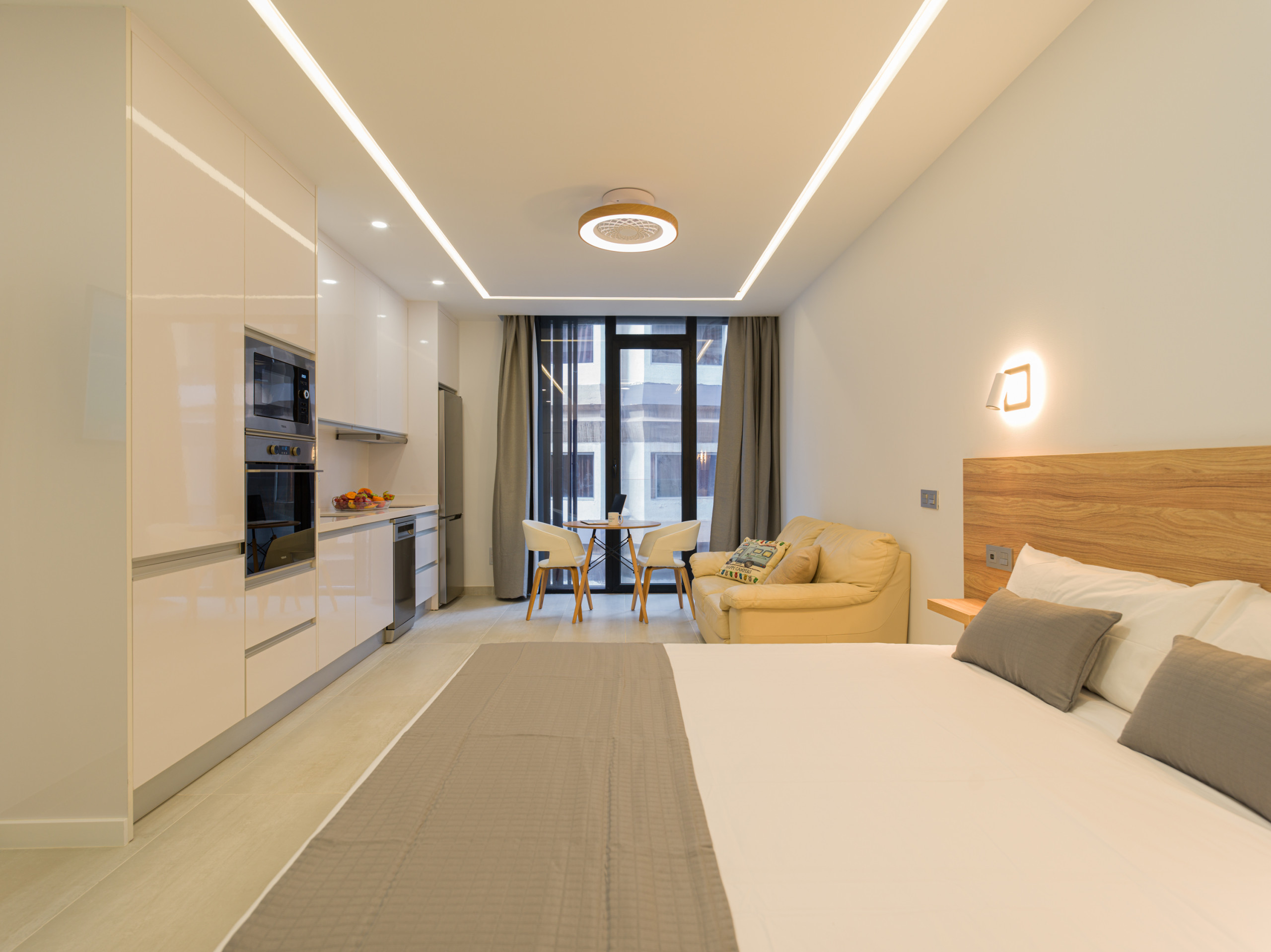 Coqueto y cómodo alojamiento tipo estudio en Las Palmas de Gran Canaria a dos pasos de la Playa de Las Canteras y con vistas laterales al mar.