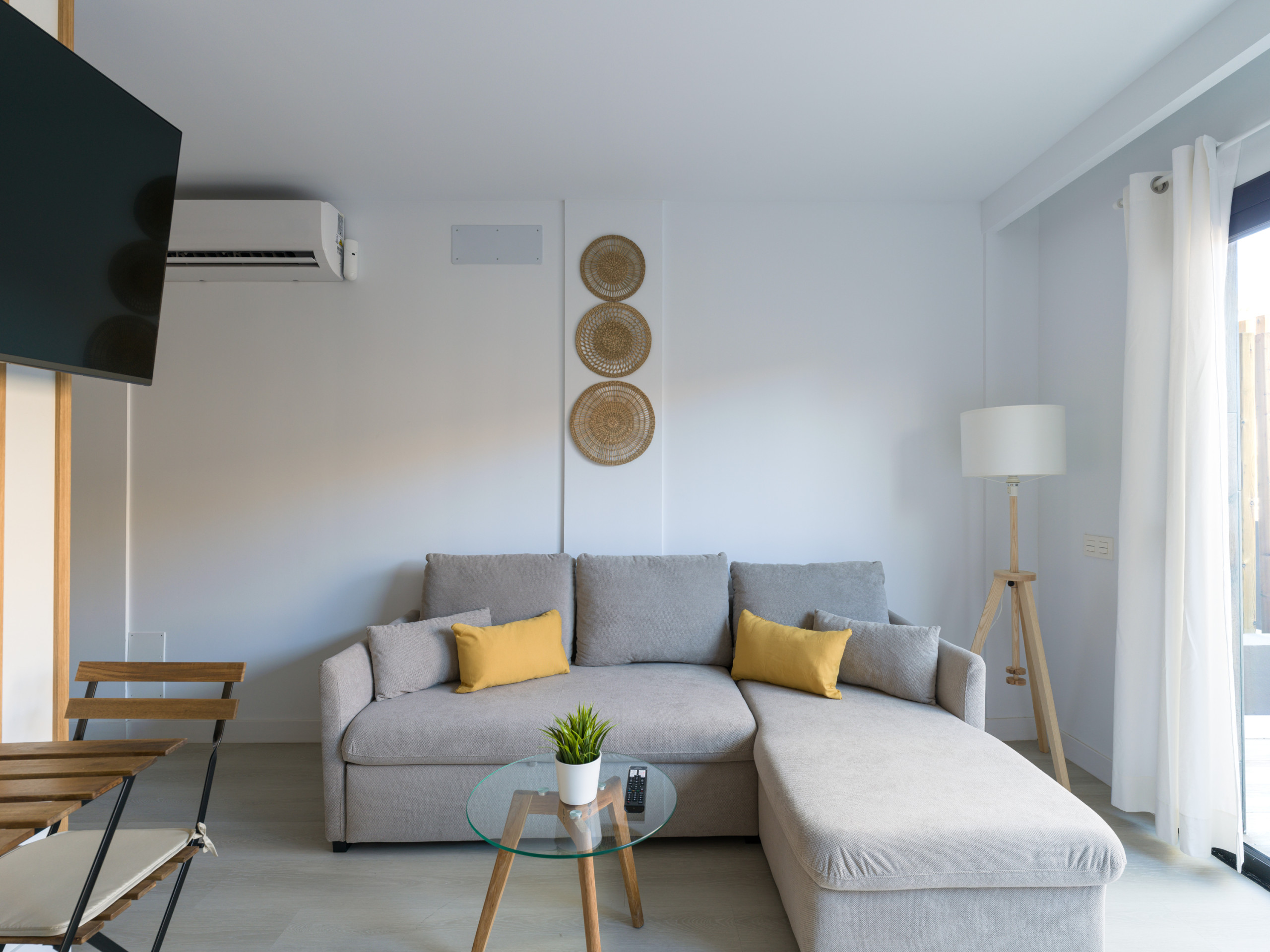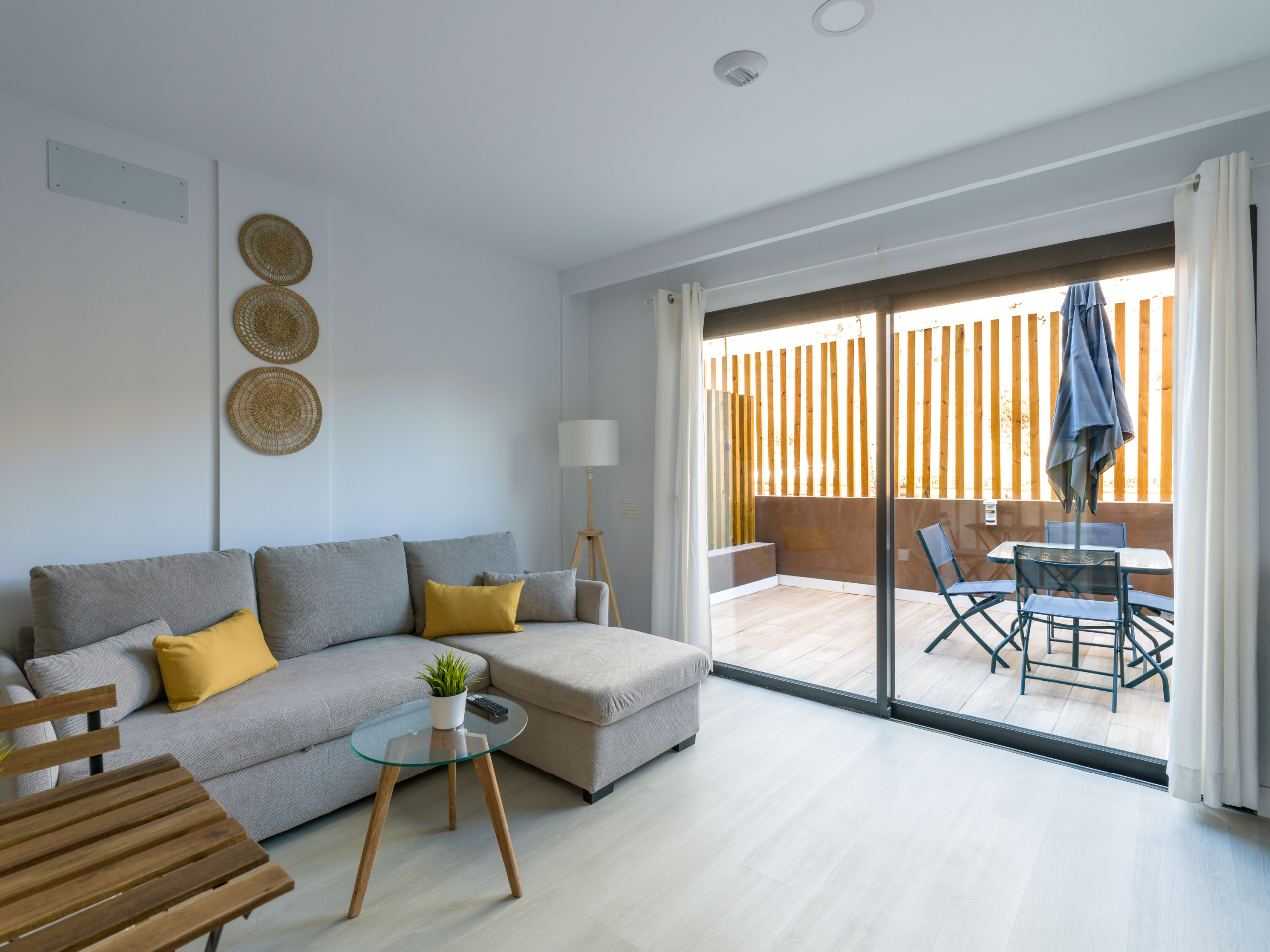 Además, el complejo donde se encuentra el alojamiento dispone de zonas comunes ideales para el descanso, incluyendo jacuzzi, solárium y gimnasio, para que puedas complementar tu estancia con momentos de bienestar y desconexión.