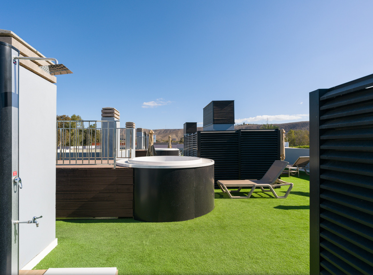Además, el complejo donde se encuentra el alojamiento dispone de zonas comunes ideales para el descanso, incluyendo jacuzzi, solárium y gimnasio, para que puedas complementar tu estancia con momentos de bienestar y desconexión.