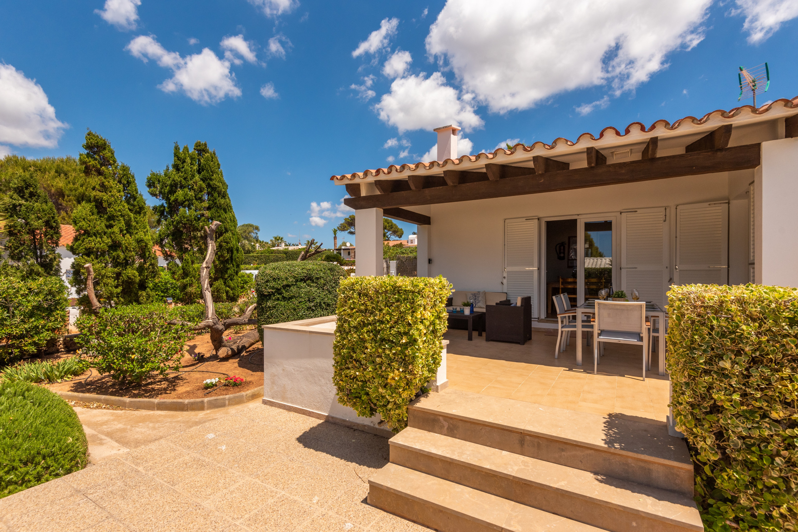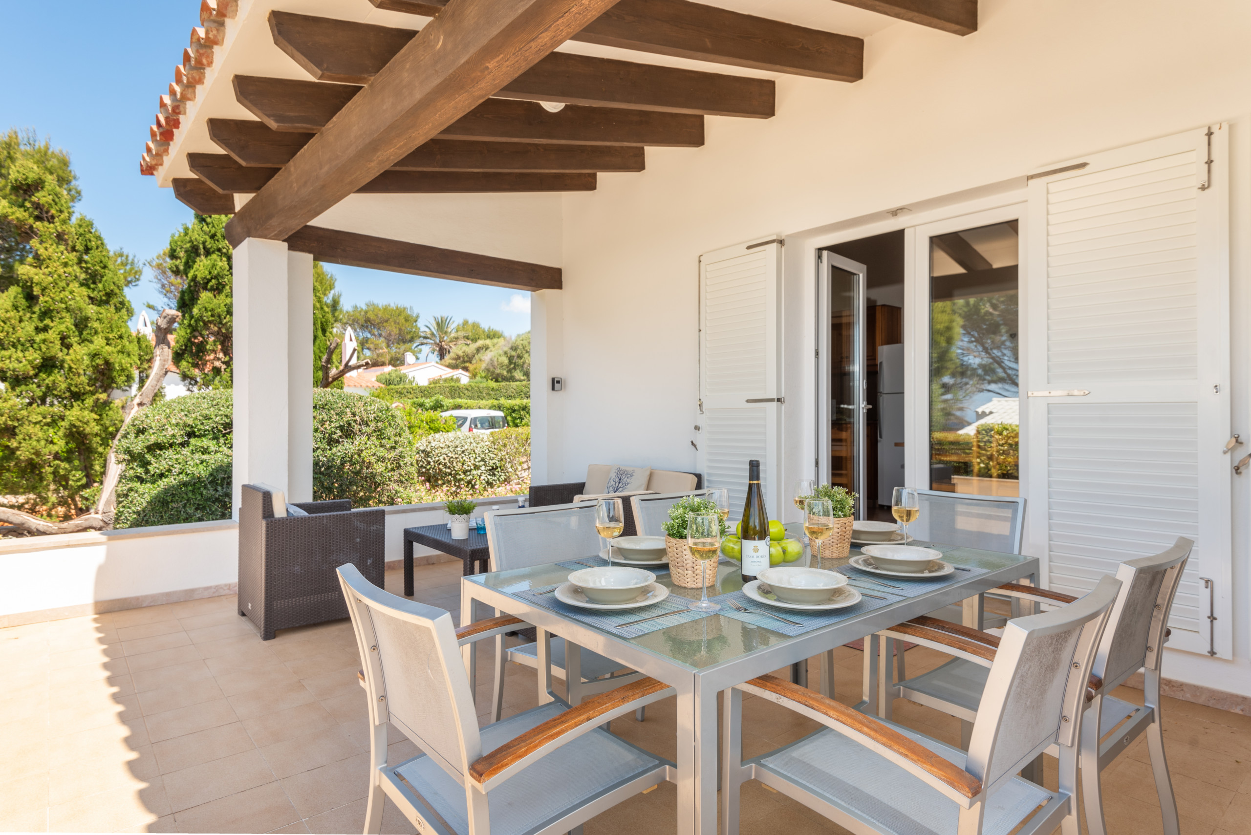 Bonita villa situada en la tranquila urbanización de Binisafuller, en la costa sur de Menorca, en el municipio de Sant Lluis. A tan solo cinco minutos de la Cala Binisafuller y de gran variedad de pequeños bares y restaurantes con vistas al mar donde sirven deliciosos platos.