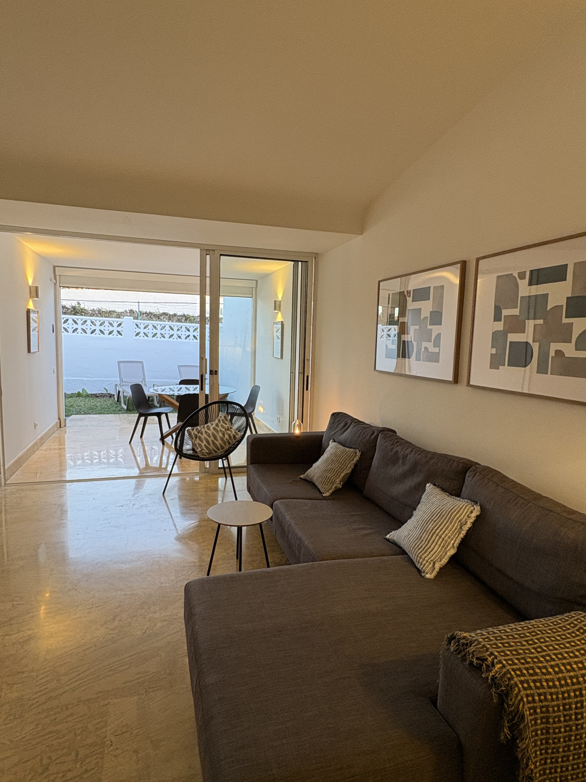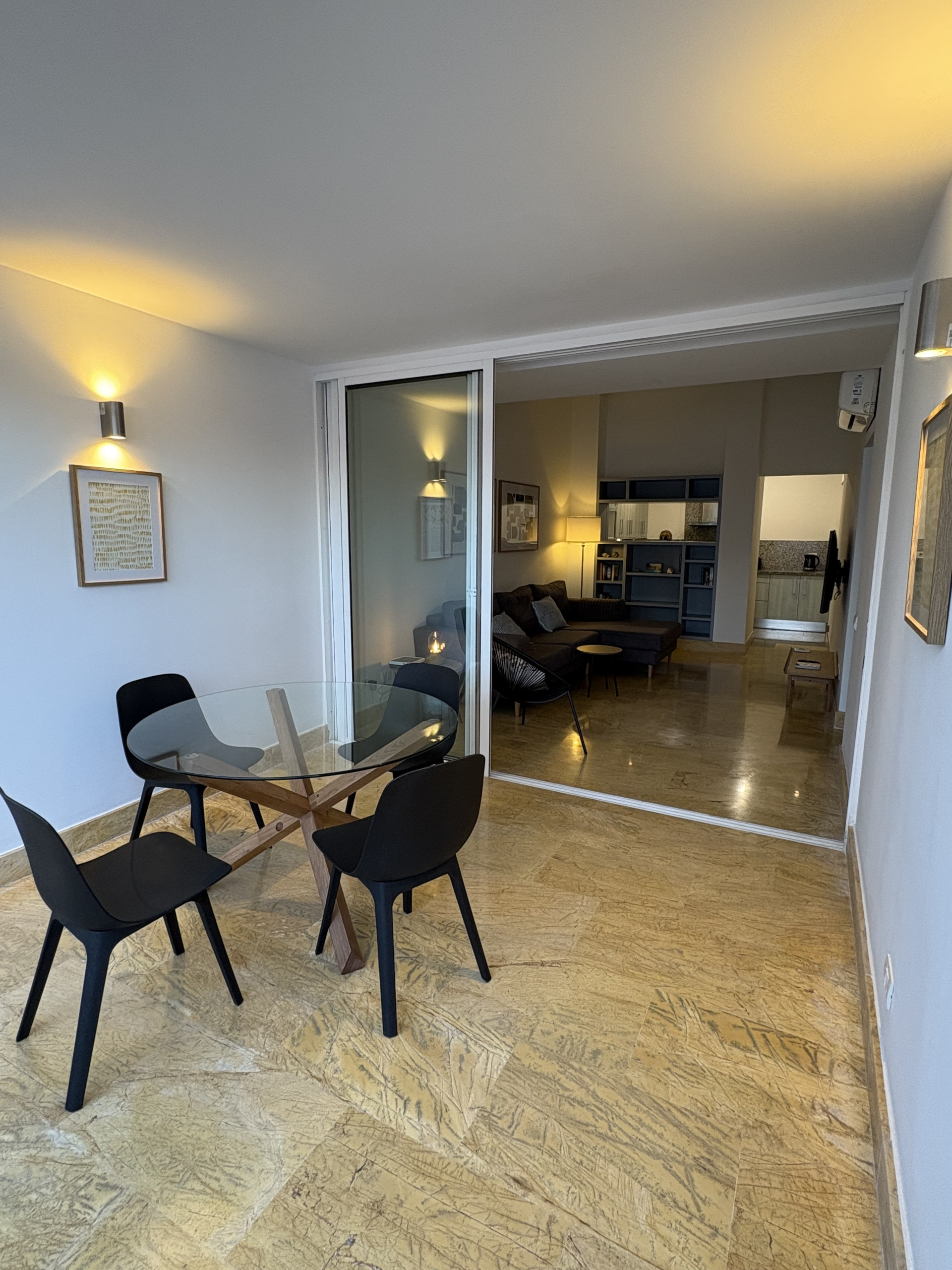 Ce logement se distingue par ses finitions de haute qualité, comprenant des sols élégants et une salle de bain en marbre.