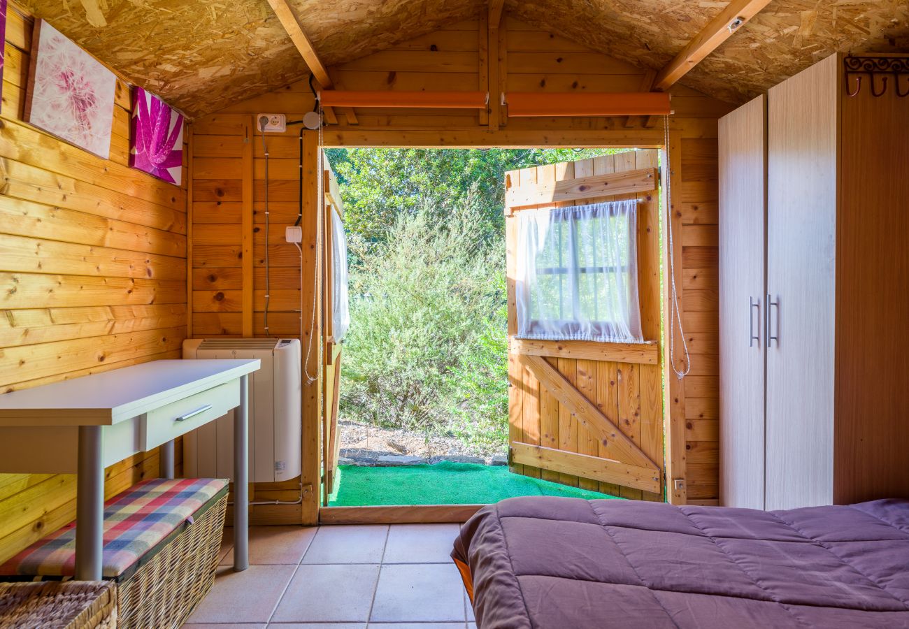 Cabane en bois annexe avec un lit de 1,4 mètres de large et toilettes. (Coût supplémentaire)