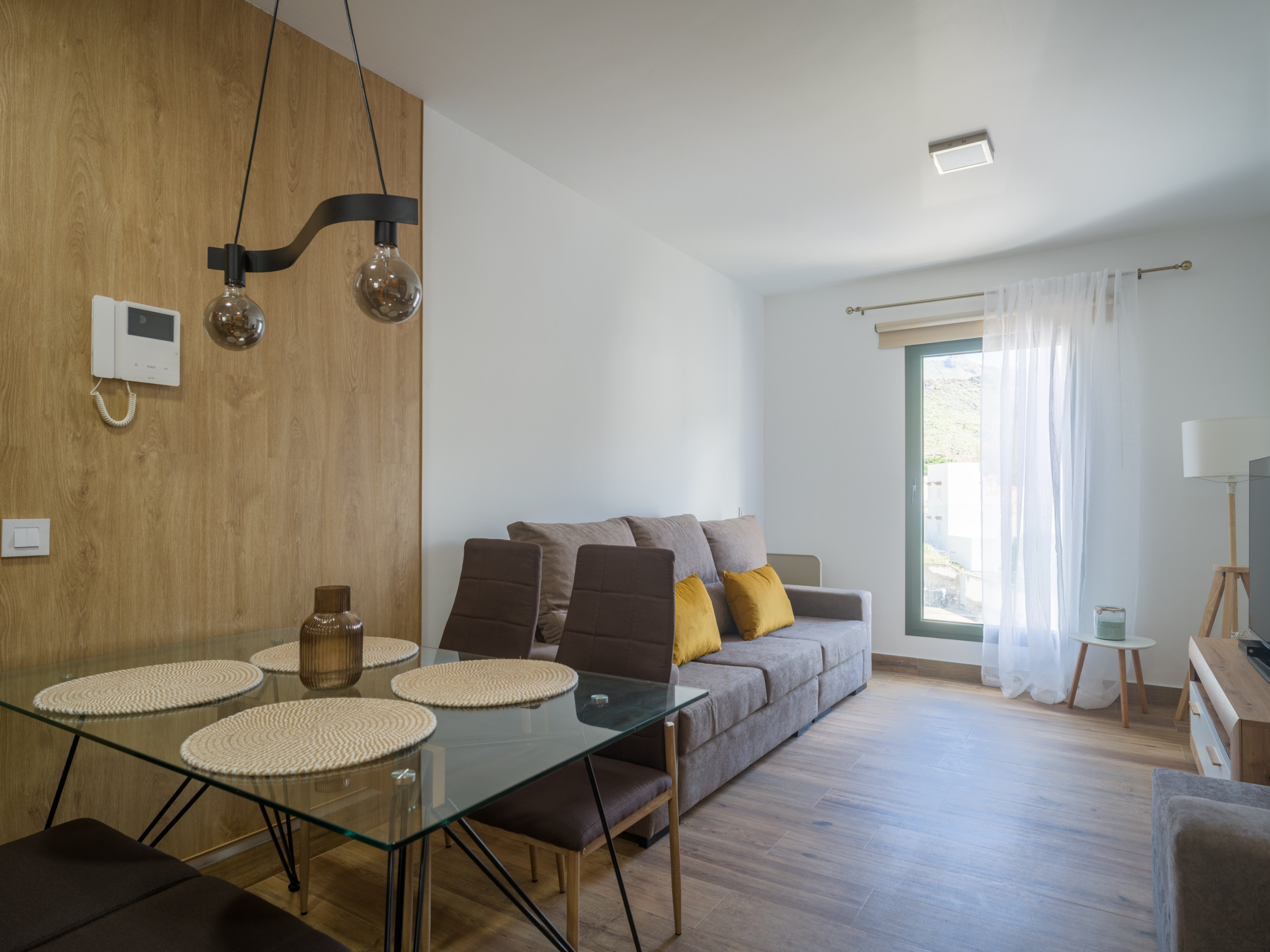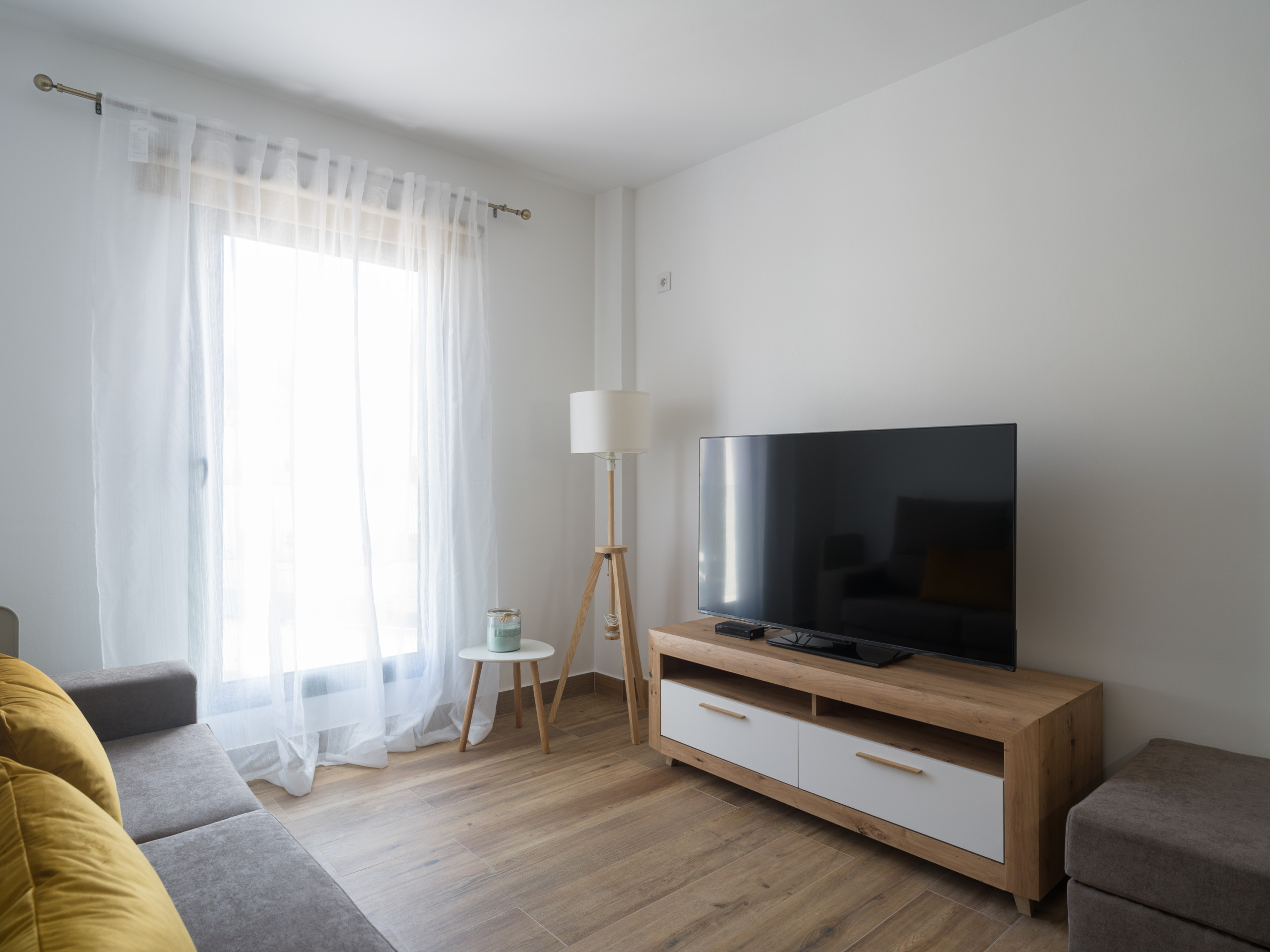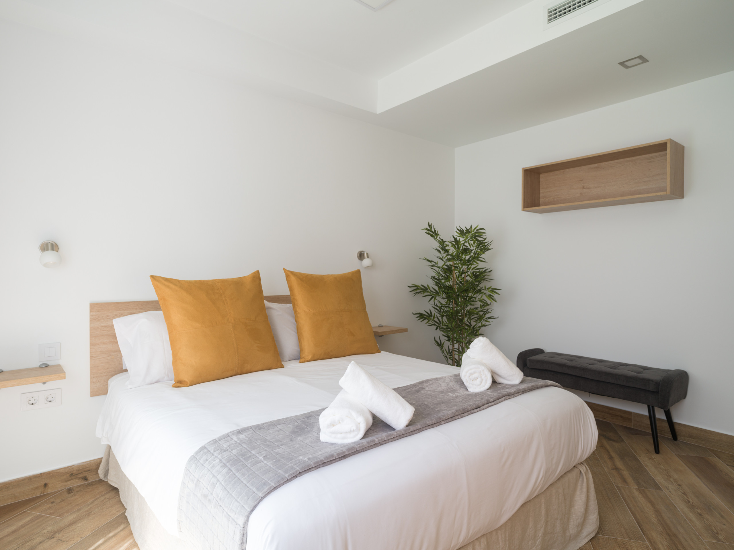 Cet appartement de deux chambres offre une ambiance chaleureuse, lumineuse et fonctionnelle, conçu pour le repos et le confort. Il dispose de la climatisation dans tout le logement et d'une distribution parfaite pour jusqu'à 4 personnes, avec une chambre avec un lit double et une autre avec un lit individuel.