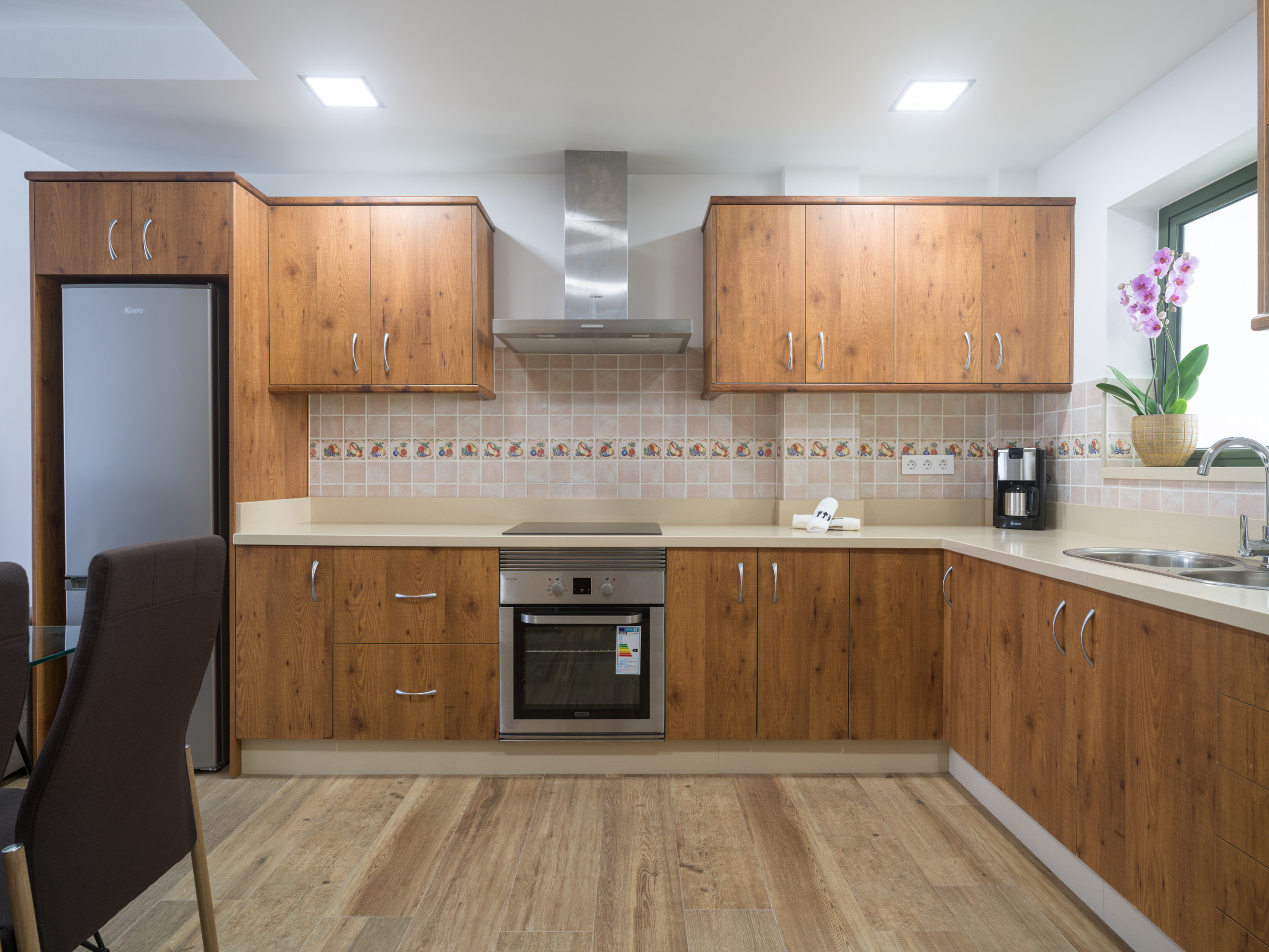 La cuisine américaine entièrement équipée est le cœur du foyer, parfaite pour préparer et partager des moments spéciaux. Elle comprend un four, un micro-ondes, un lave-vaisselle, une cafetière, un grille-pain et un réfrigérateur avec congélateur, ainsi que tous les ustensiles nécessaires pour un séjour sans souci.