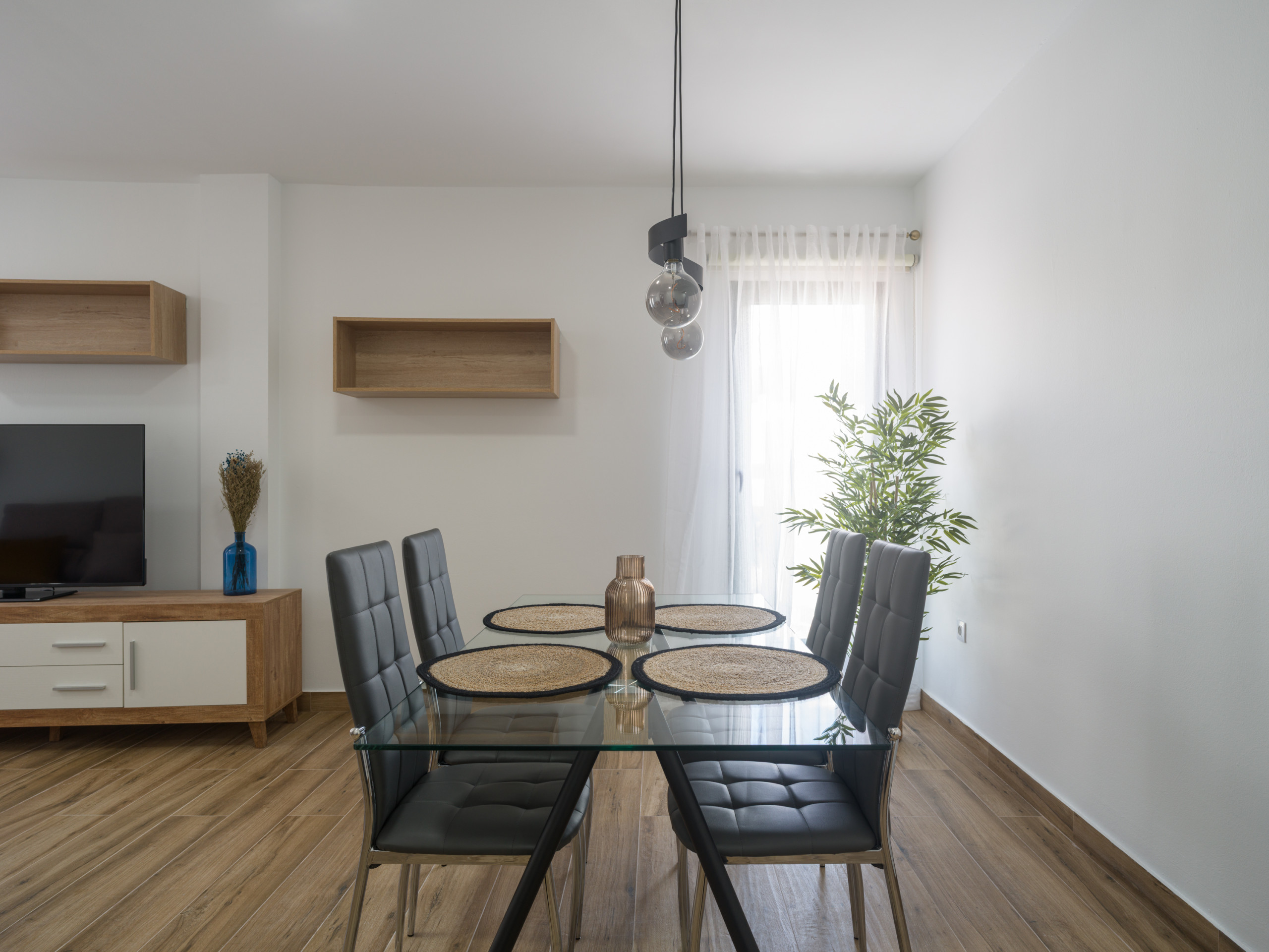 Cet appartement de deux chambres offre une ambiance chaleureuse, lumineuse et fonctionnelle, conçu pour le repos et le confort. Il dispose de la climatisation dans tout le logement et d'une distribution parfaite pour jusqu'à 4 personnes, avec une chambre avec un lit double et une autre avec un lit individuel.