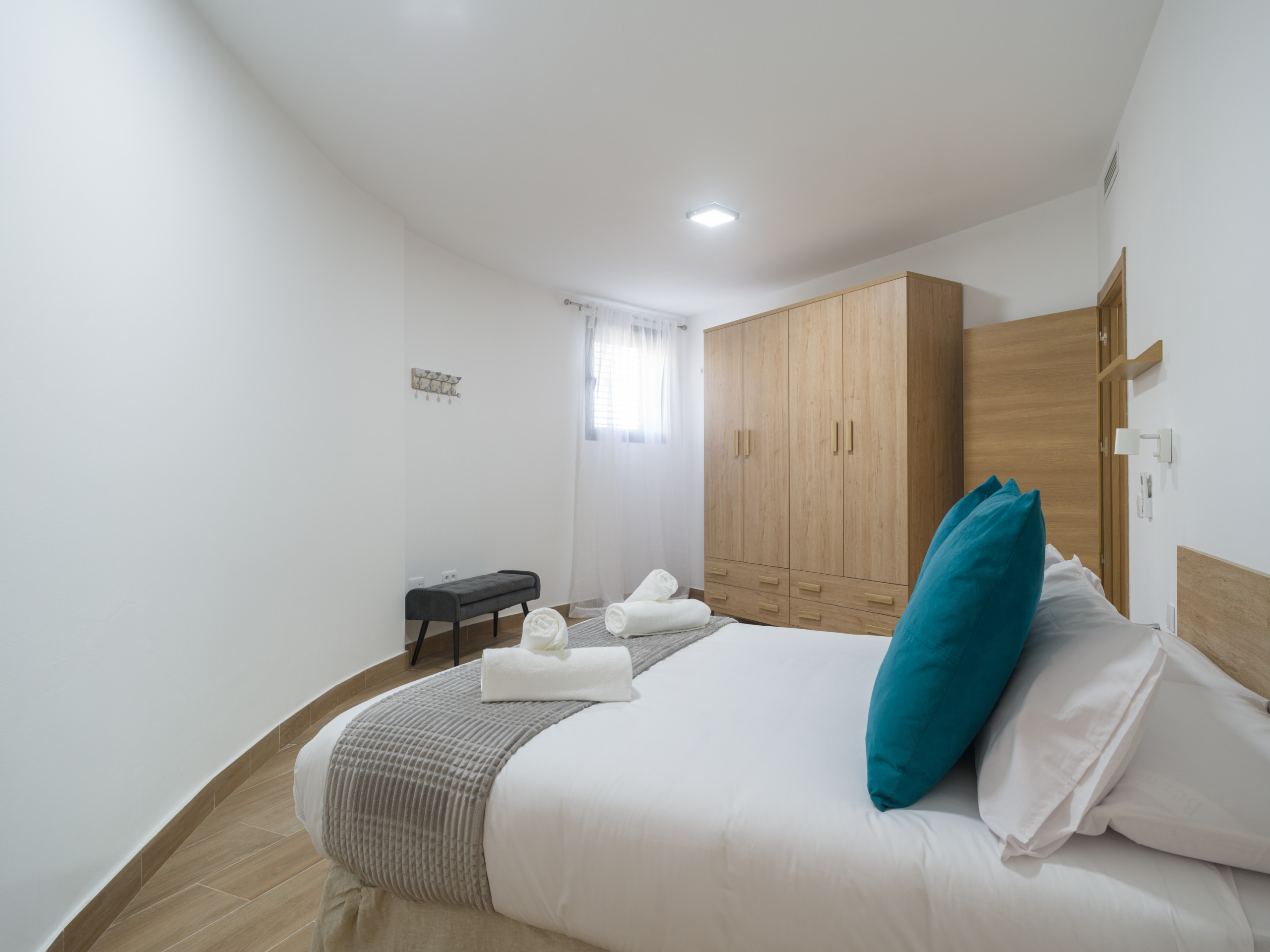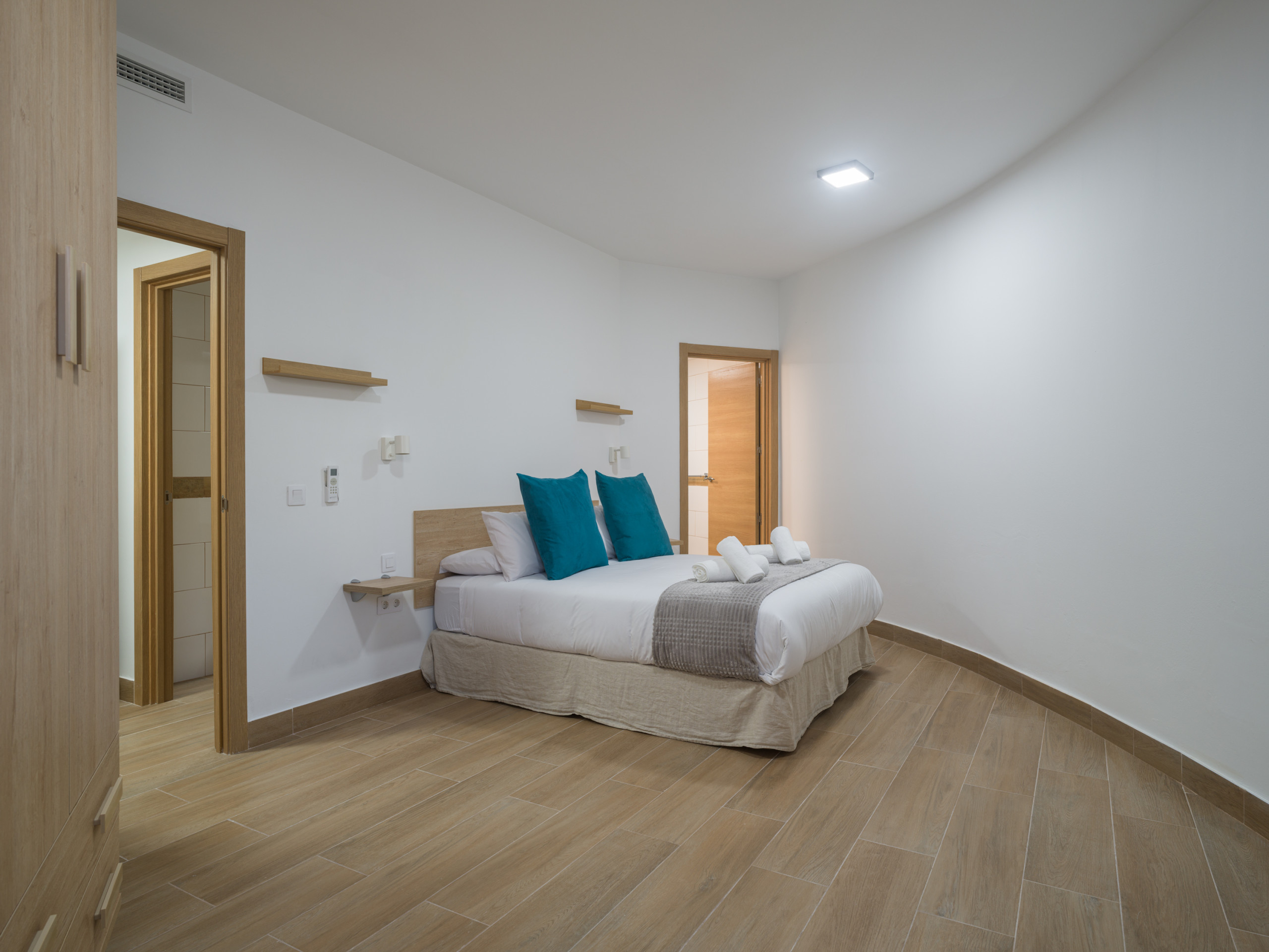 Cet appartement de deux chambres offre une ambiance chaleureuse, lumineuse et fonctionnelle, conçu pour le repos et le confort. Il dispose de la climatisation dans tout le logement et d'une distribution parfaite pour jusqu'à 4 personnes, avec une chambre avec un lit double et une autre avec un lit individuel.