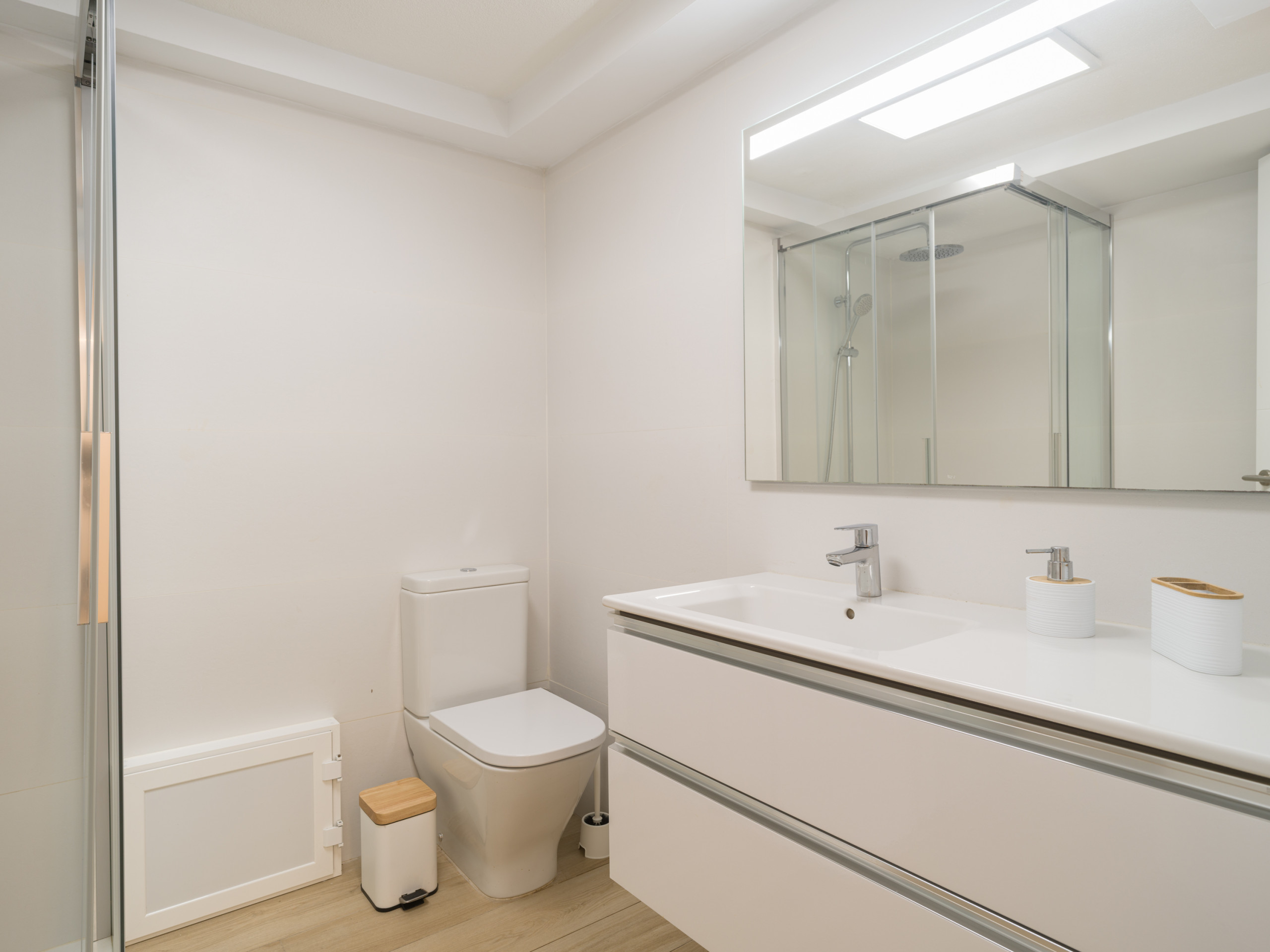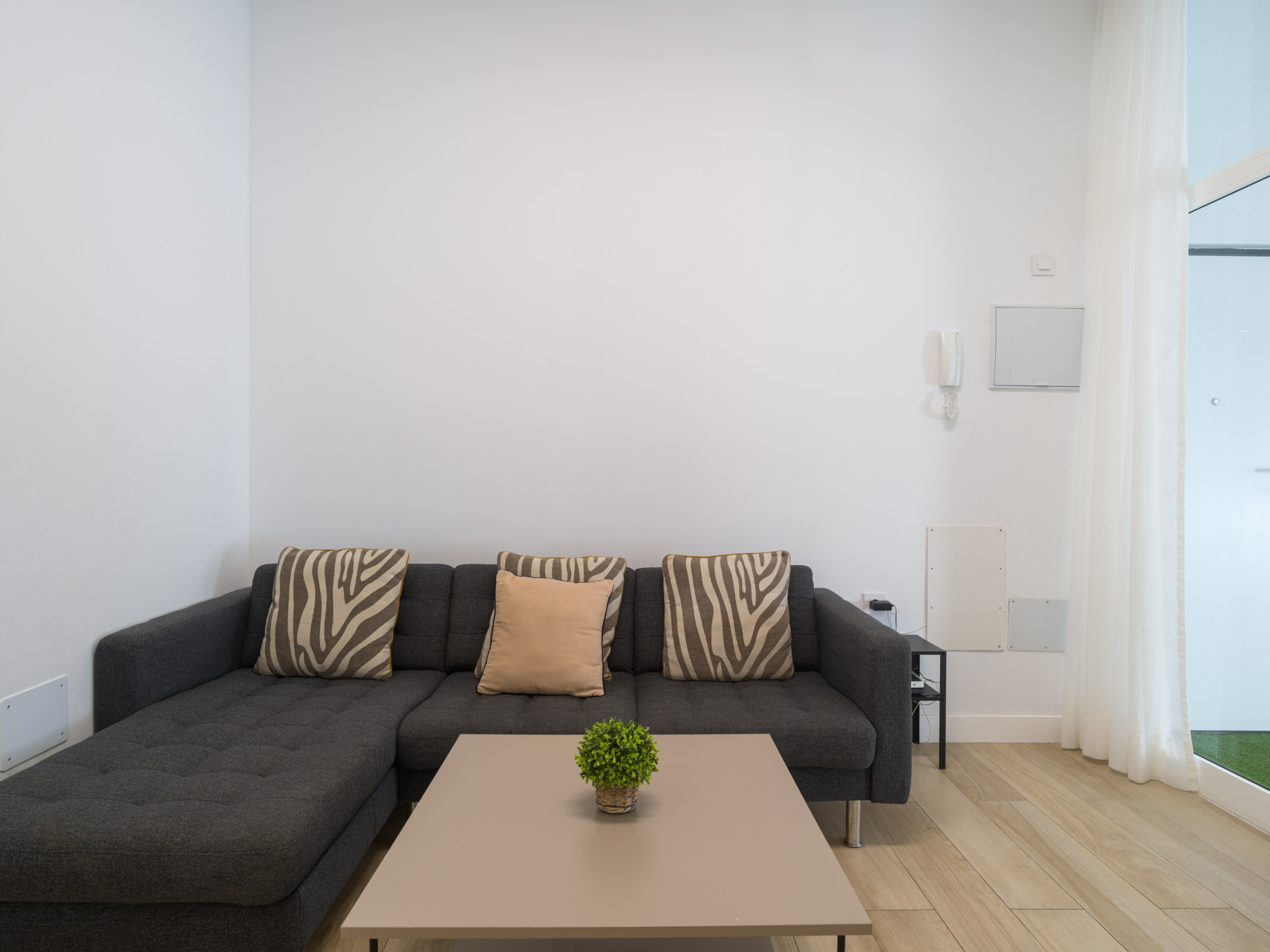Il dispose d'une chambre double, d'un espace équipé pour le télétravail, d'une salle de bains avec douche, d'un salon confortable avec table à manger et d'une cuisine entièrement équipée, avec plaque vitrocéramique, réfrigérateur, micro-ondes, congélateur, lave-linge, vaisselle, couverts, ustensiles de cuisine, cafetière, grille-pain, bouilloire, presse-agrumes, etc. En outre, il dispose de deux télévisions, d'un fer à repasser, d'un sèche-linge et d'une connexion Wi-Fi illimitée.