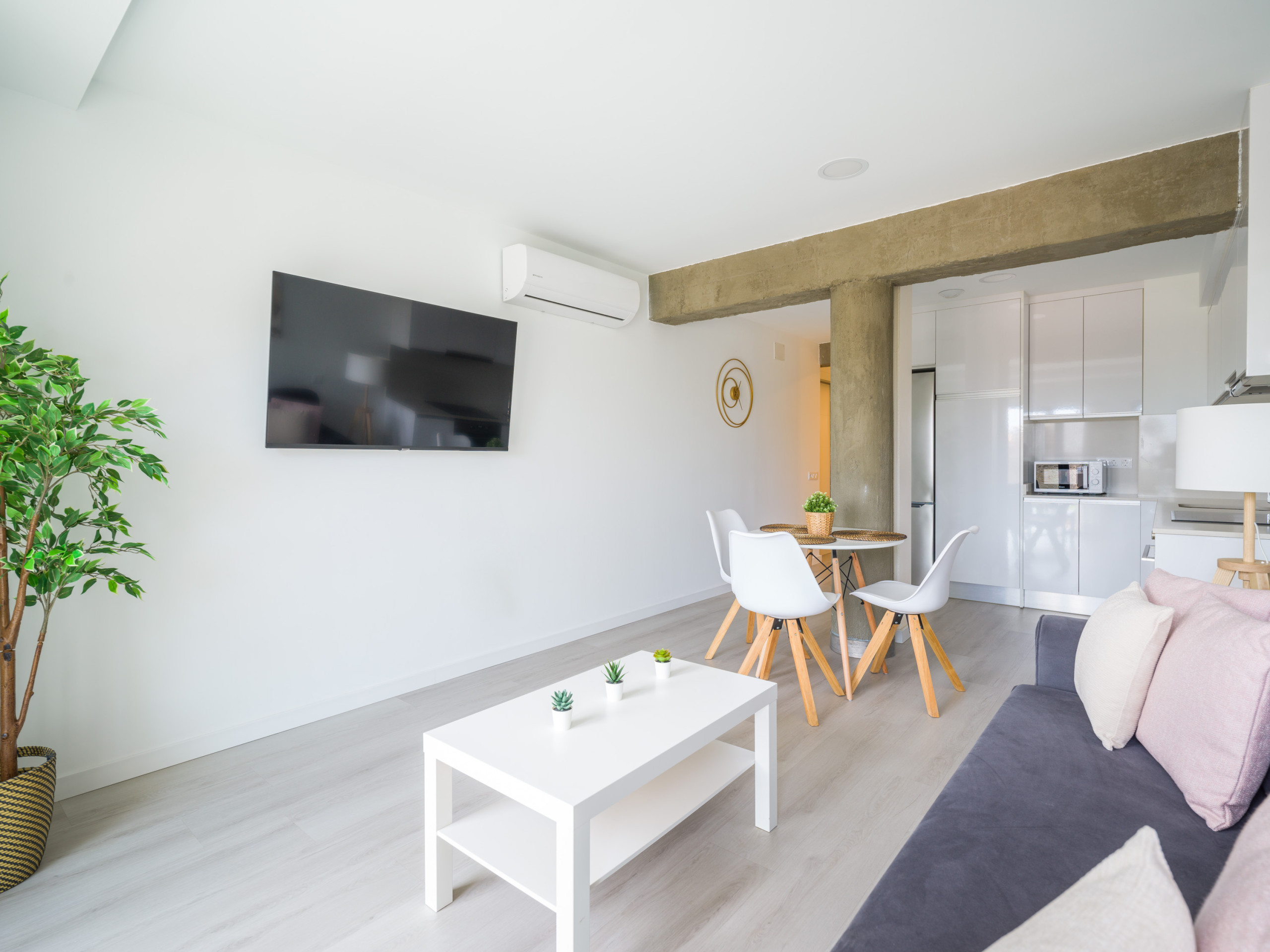 La cuisine est entièrement équipée avec plaque vitrocéramique, réfrigérateur, micro-ondes, four, congélateur, lave-linge, lave-vaisselle, vaisselle, couverts, ustensiles de cuisine, cafetière, grille-pain et bouilloire. Tous conçus pour que vous vous sentiez chez vous. De plus, le logement dispose de la climatisation, d'une connexion Wi-Fi rapide et d'une Smart-TV.