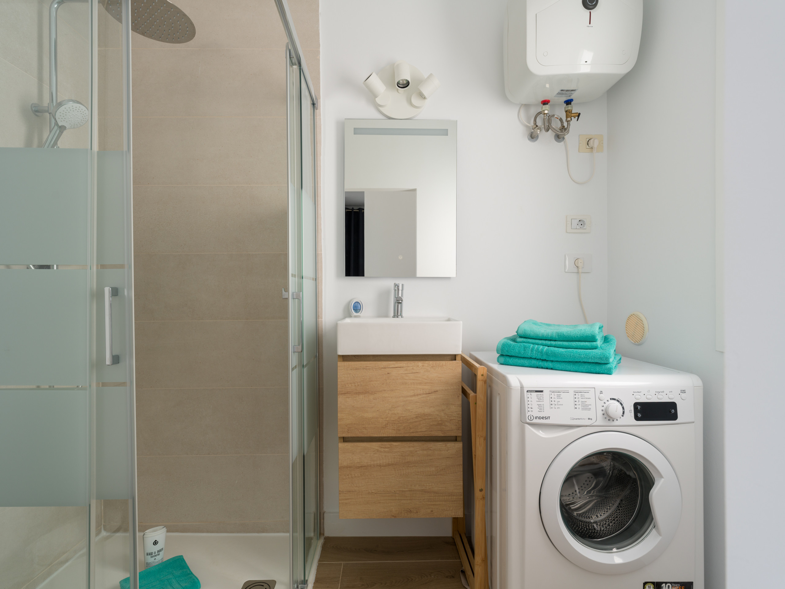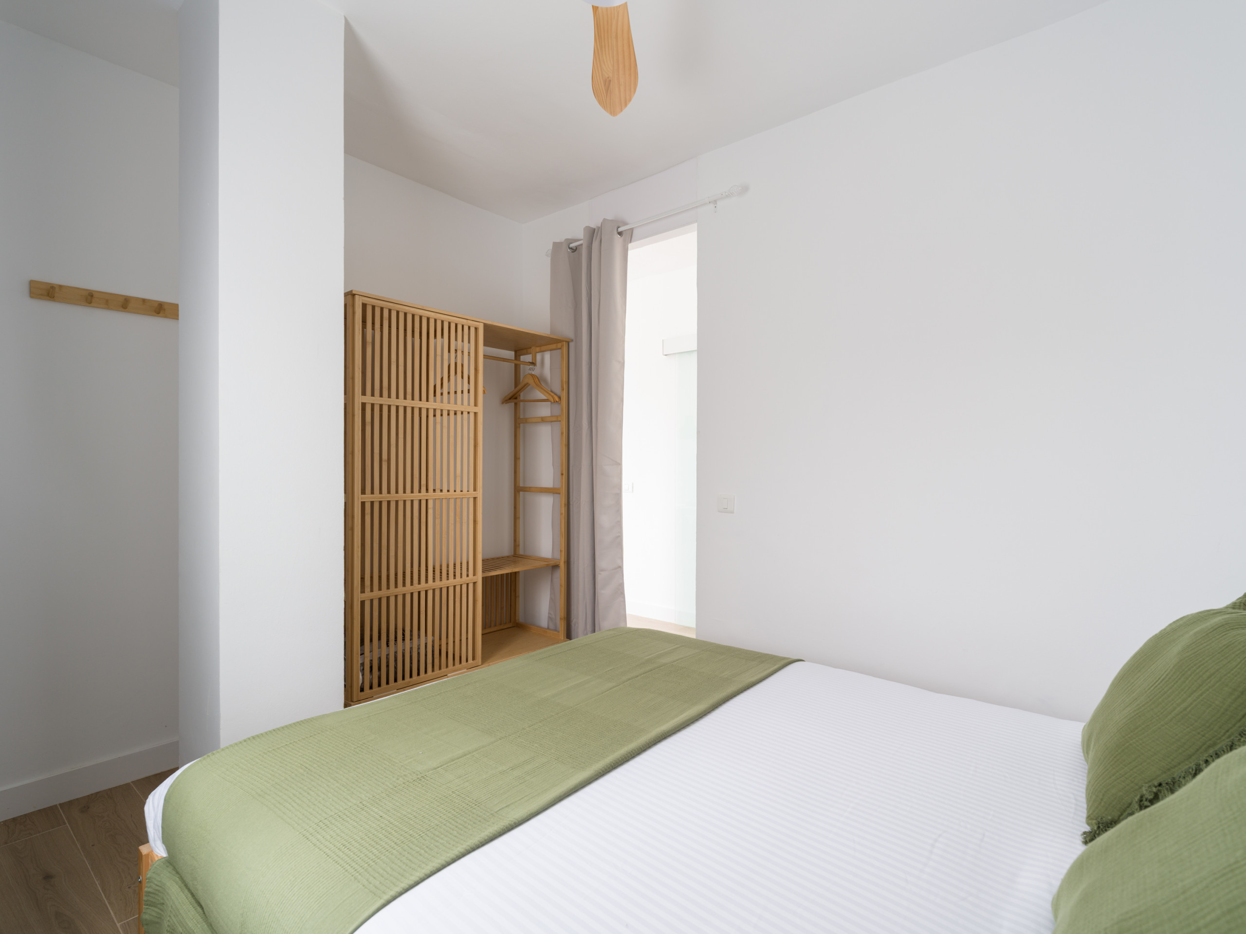 Le logement dispose d'1 chambre avec lit double à matelas viscoélastique et capacité jusqu'à 2 personnes. Il dispose d'1 salle de bain complète avec douche accessible, pommeau de douche avec poignée et accès sans marches, parfait pour garantir votre confort. L'espace est conçu en pensant à l'accessibilité, avec des portes larges dans la chambre, chemin éclairé vers l'entrée.