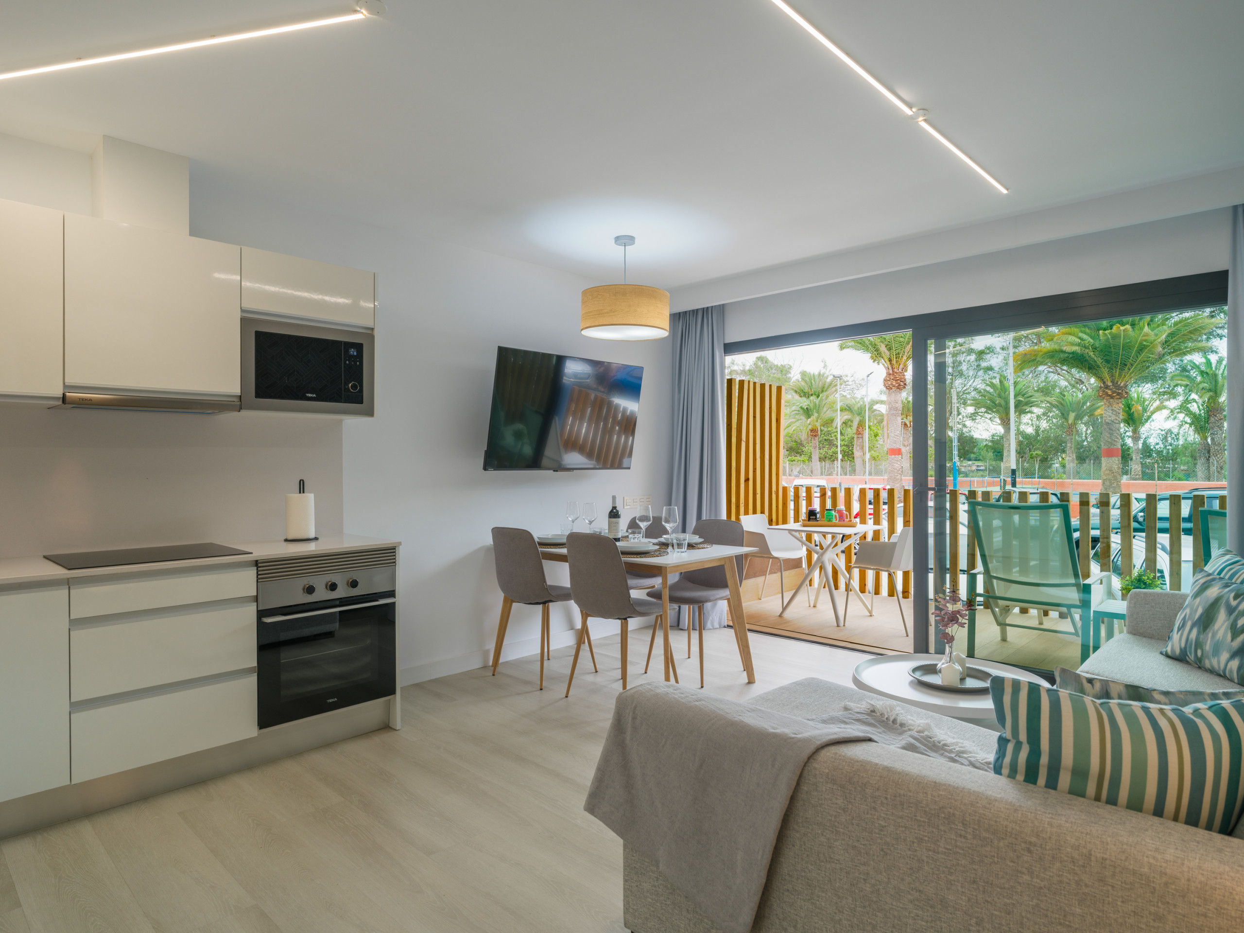 Les zones communes du complexe sont conçues pour votre bien-être et votre détente. Vous pourrez profiter d'un magnifique solarium, d'un jacuzzi idéal pour se déconnecter et d'une salle de sport entièrement équipée pour rester en forme pendant vos vacances.