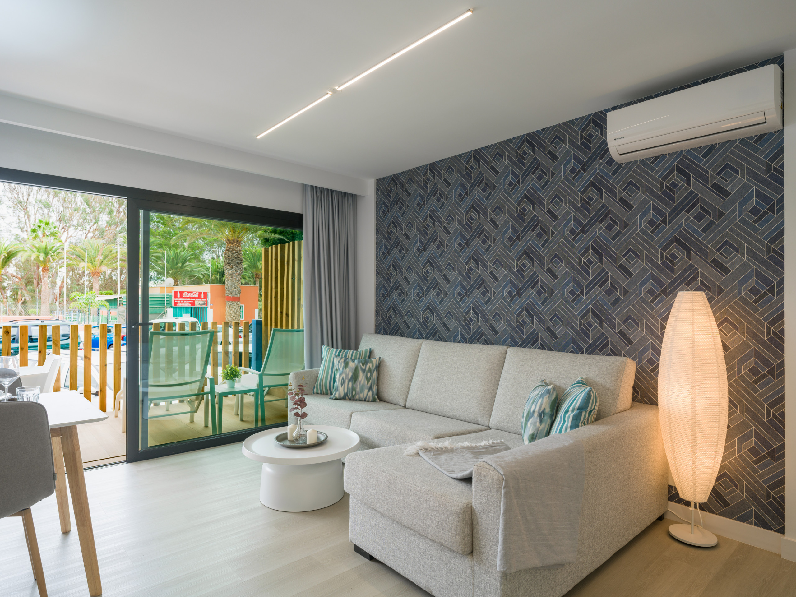 Avec une capacité de 4 personnes, le logement dispose de deux chambres qui garantissent un repos réparateur. L'une d'entre elles comprend un lit king size, tandis que l'autre dispose de deux lits individuels, idéal pour les familles ou les groupes d'amis. Le logement est équipé de la climatisation pour maintenir une température parfaite pendant votre séjour.