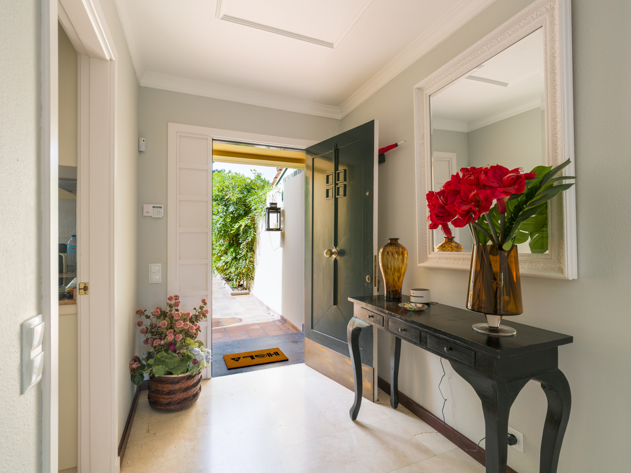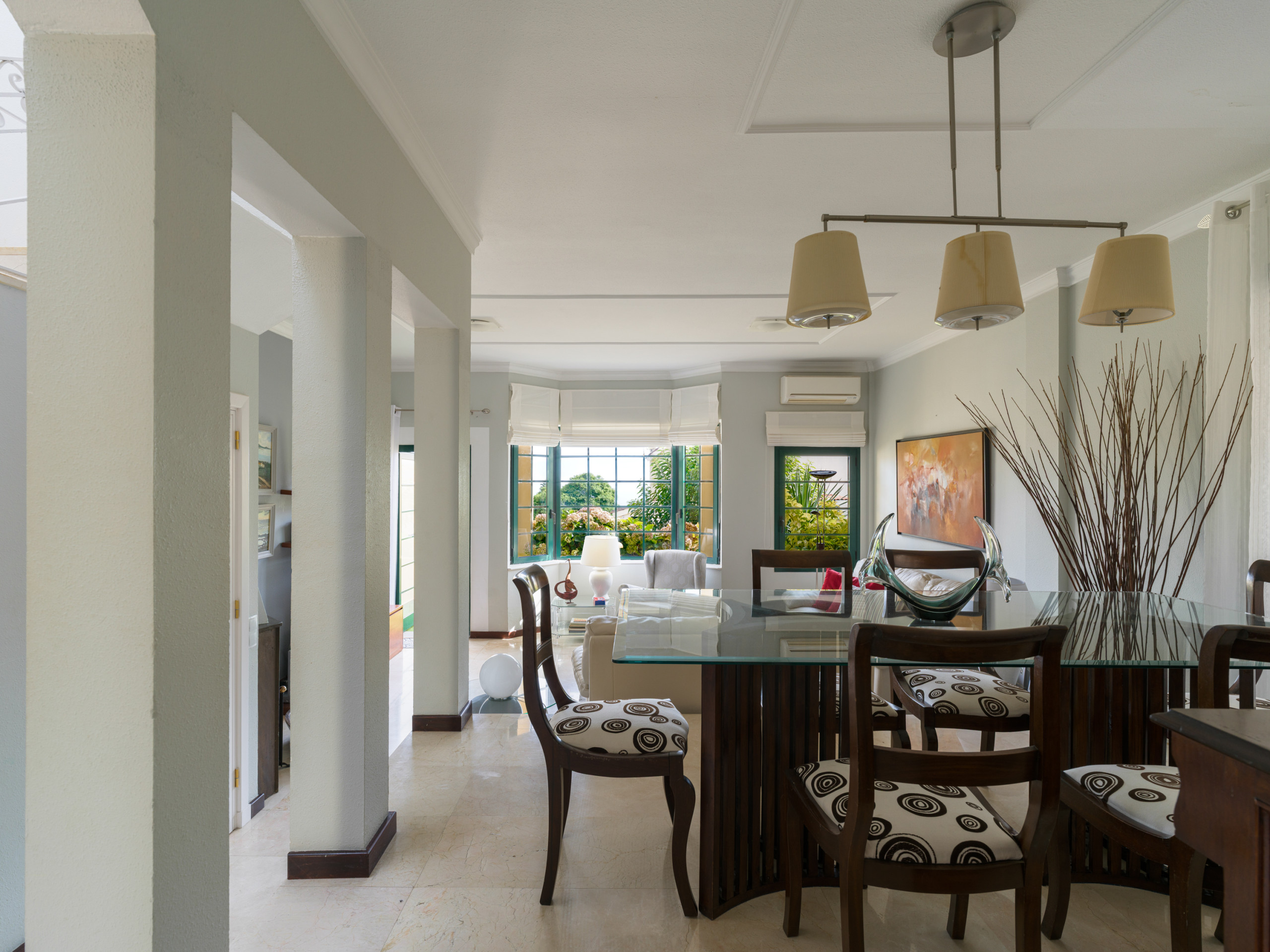 Parmi ses caractéristiques, on peut citer le sol en marbre, la climatisation individuelle dans le salon et certaines chambres, le chauffage par pompe à chaleur, la connexion WiFi et la cheminée pour les soirées plus fraîches.