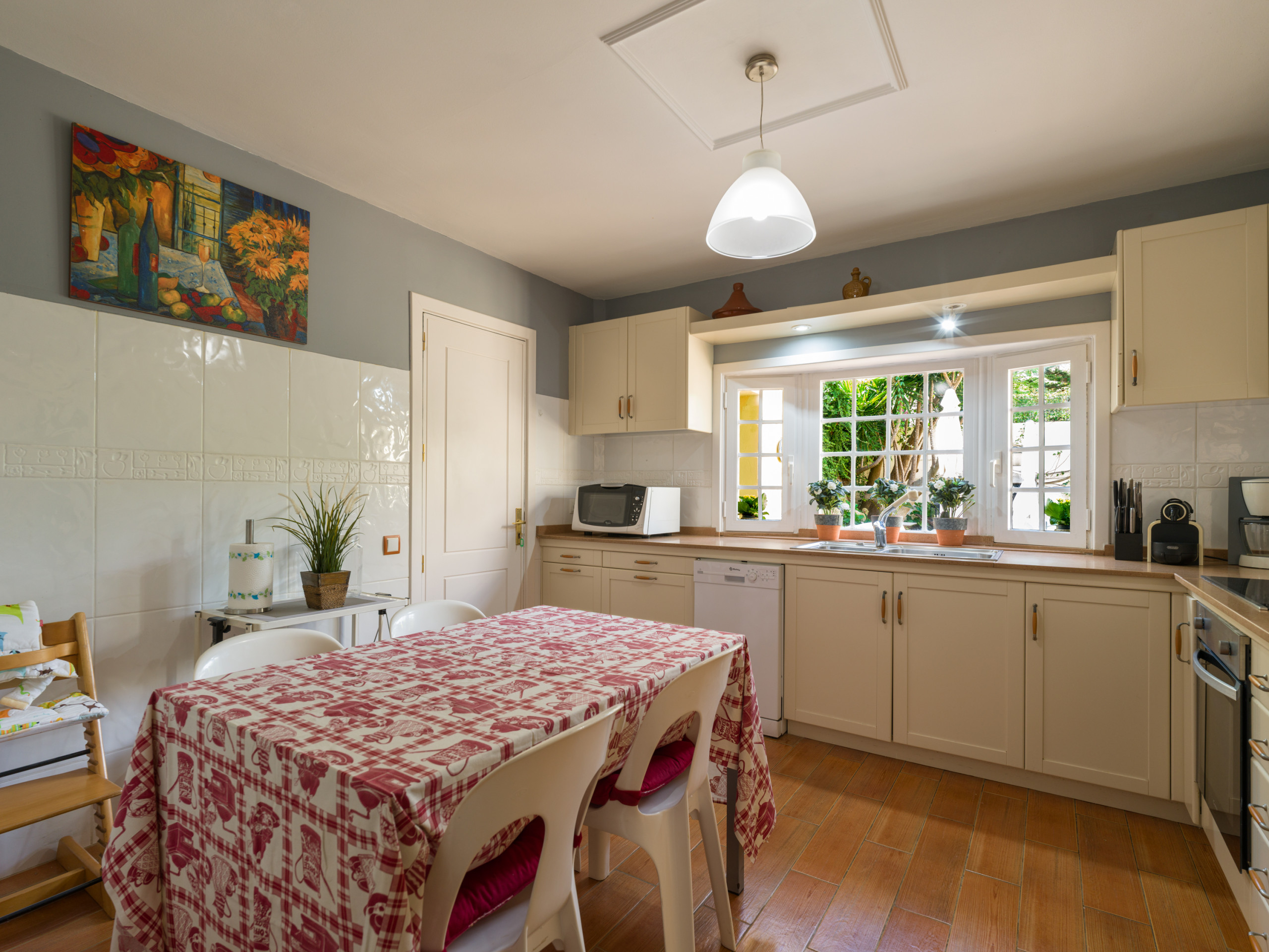 La cuisine, entièrement équipée et indépendante, comprend des appareils électroménagers dernier cri tels que lave-linge, sèche-linge, lave-vaisselle, four, micro-ondes, cafetière, grille-pain et bouilloire. Elle dispose d'une zone de cuisson en vitrocéramique et de tous les ustensiles nécessaires pour préparer des repas délicieux.