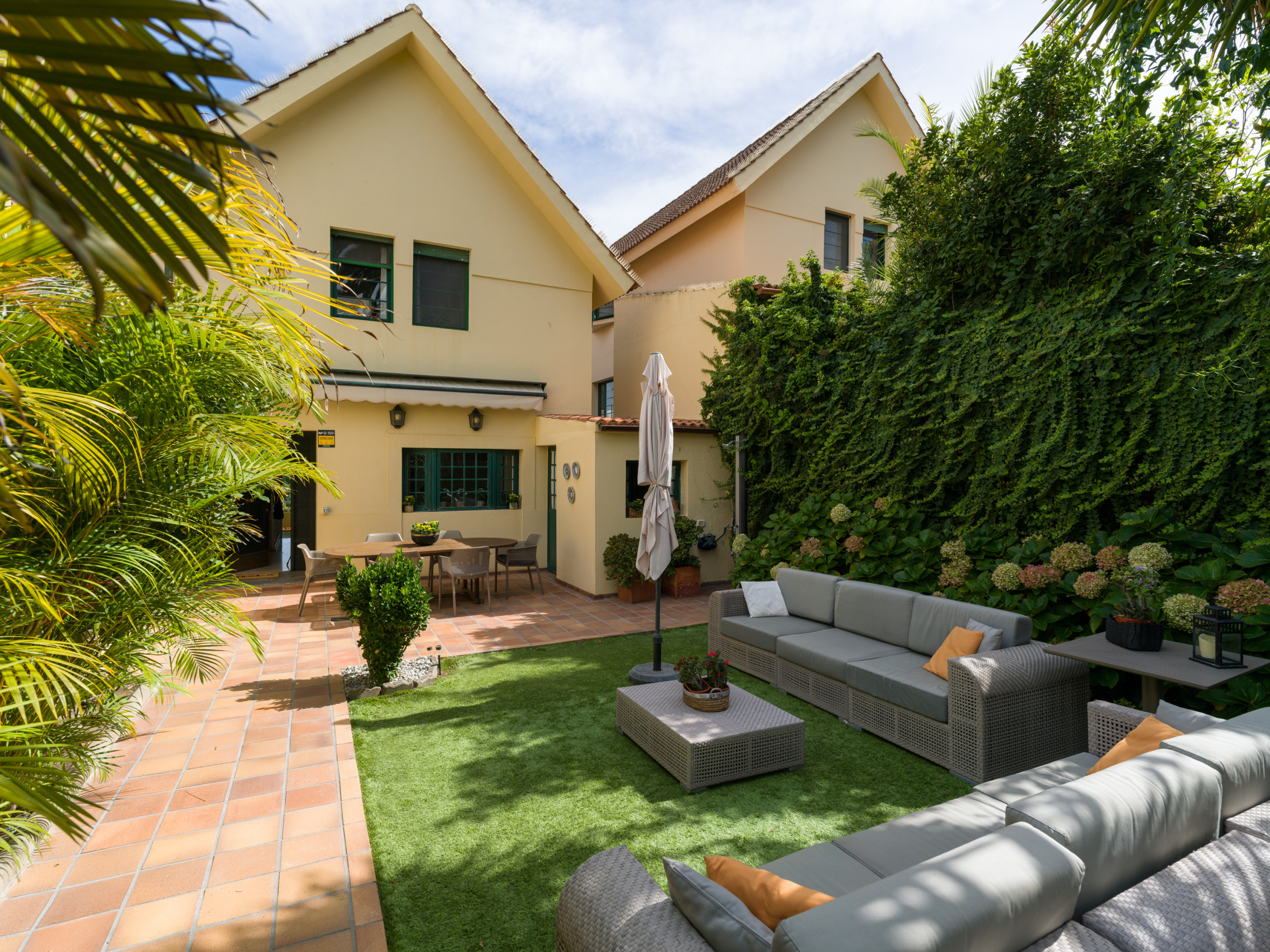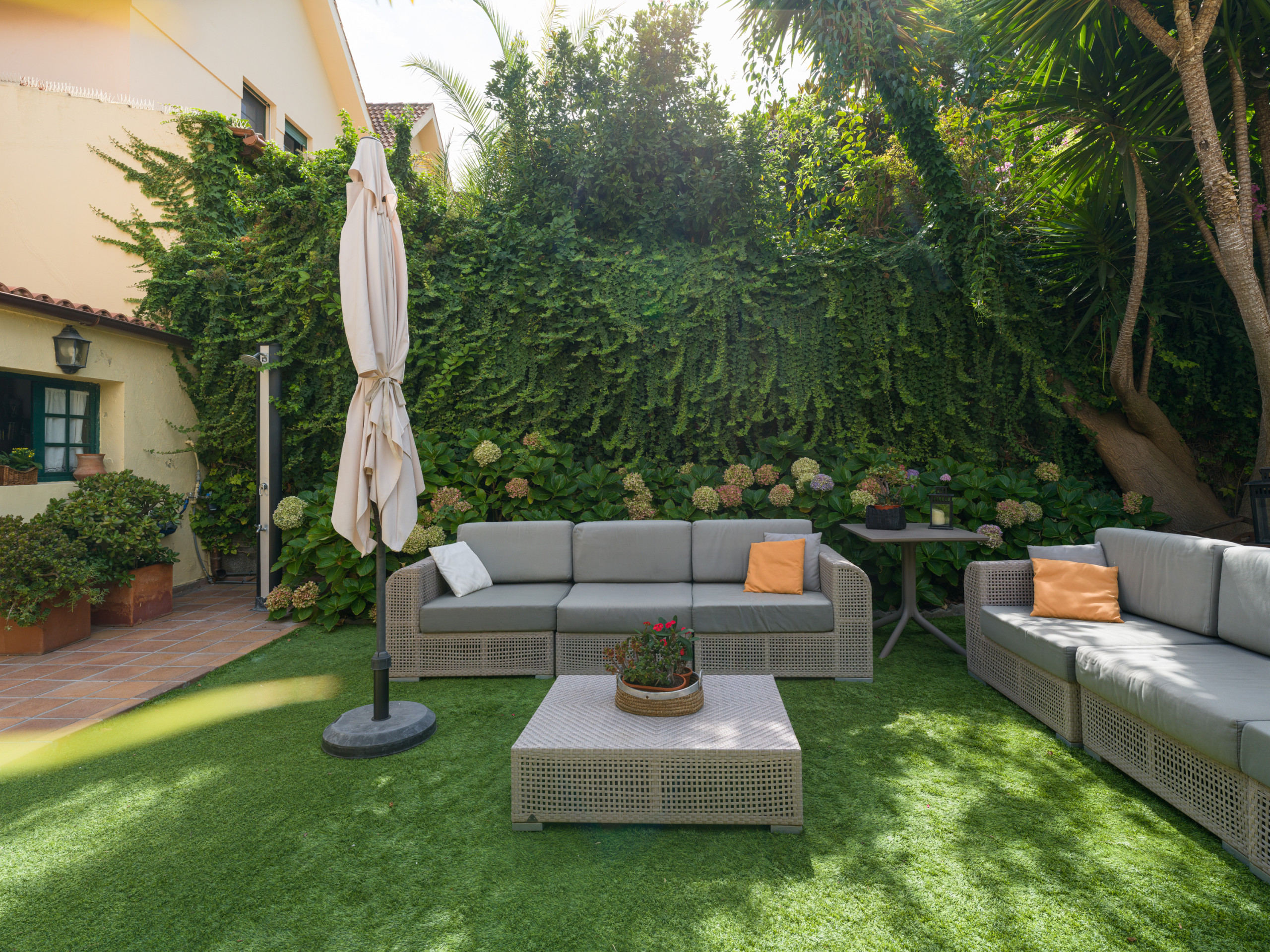 Les espaces extérieurs sont l'un des points forts de cette propriété. Elle dispose d'un jardin clôturé, d'une terrasse de 50 mètres carrés, d'une zone de barbecue, de meubles de jardin et d'un balcon, parfait pour profiter des vues sur la mer, la montagne et le jardin.