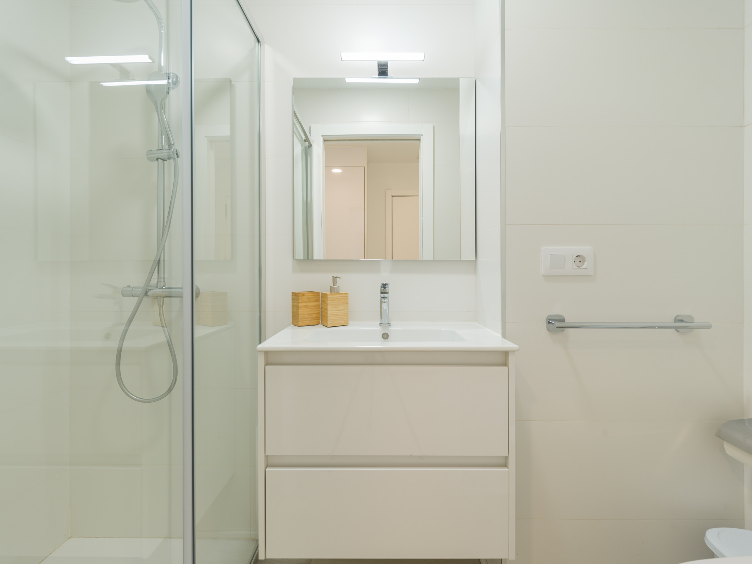 La cuisine est entièrement équipée avec plaque vitrocéramique, réfrigérateur, micro-ondes, four, congélateur, lave-linge, lave-vaisselle, vaisselle, couverts, ustensiles de cuisine, cafetière, grille-pain et bouilloire. Tous conçus pour que vous vous sentiez chez vous. De plus, le logement dispose de la climatisation, d'une connexion Wi-Fi rapide et d'une Smart-TV.