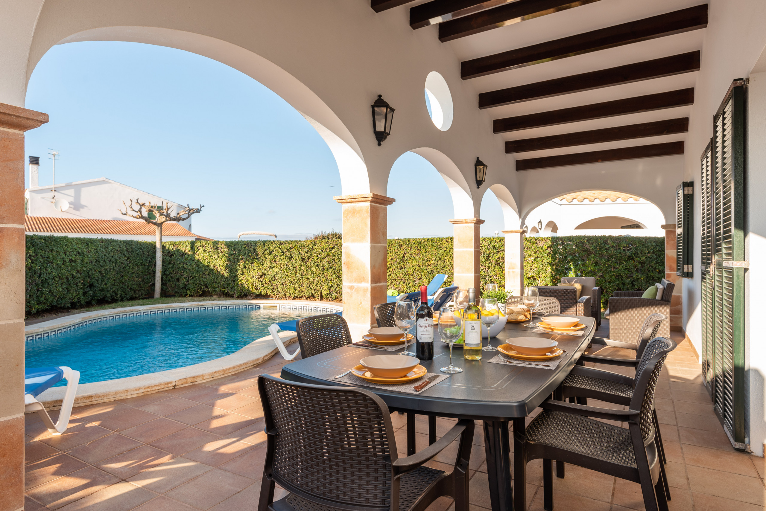 La villa est située dans un endroit superbe et calme, à deux pas du port de plaisance animé de Calan Bosch, avec ses nombreux bars et restaurants et ses deux plages de sable blanc.