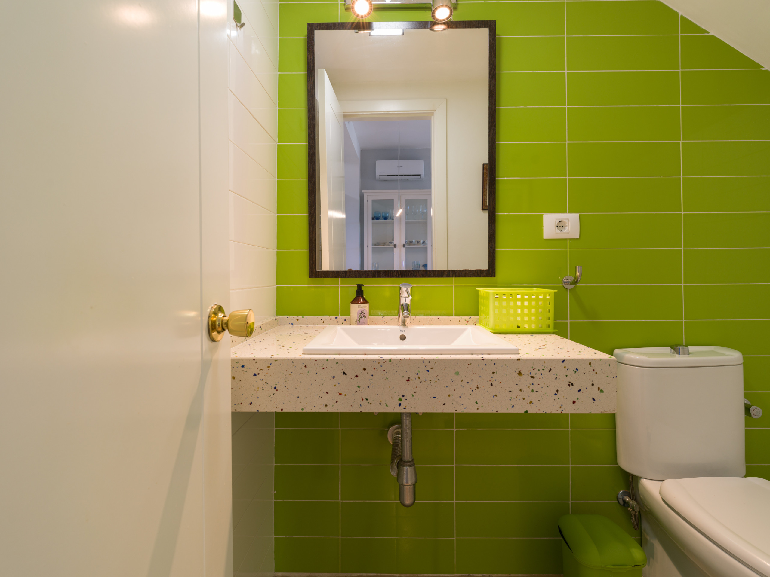 Al primo piano c'è un bel bagno, e due camere doppie, una con un letto matrimoniale e l'altra con due letti singoli. La camera da letto principale ha un bel balcone con vista sul mare.