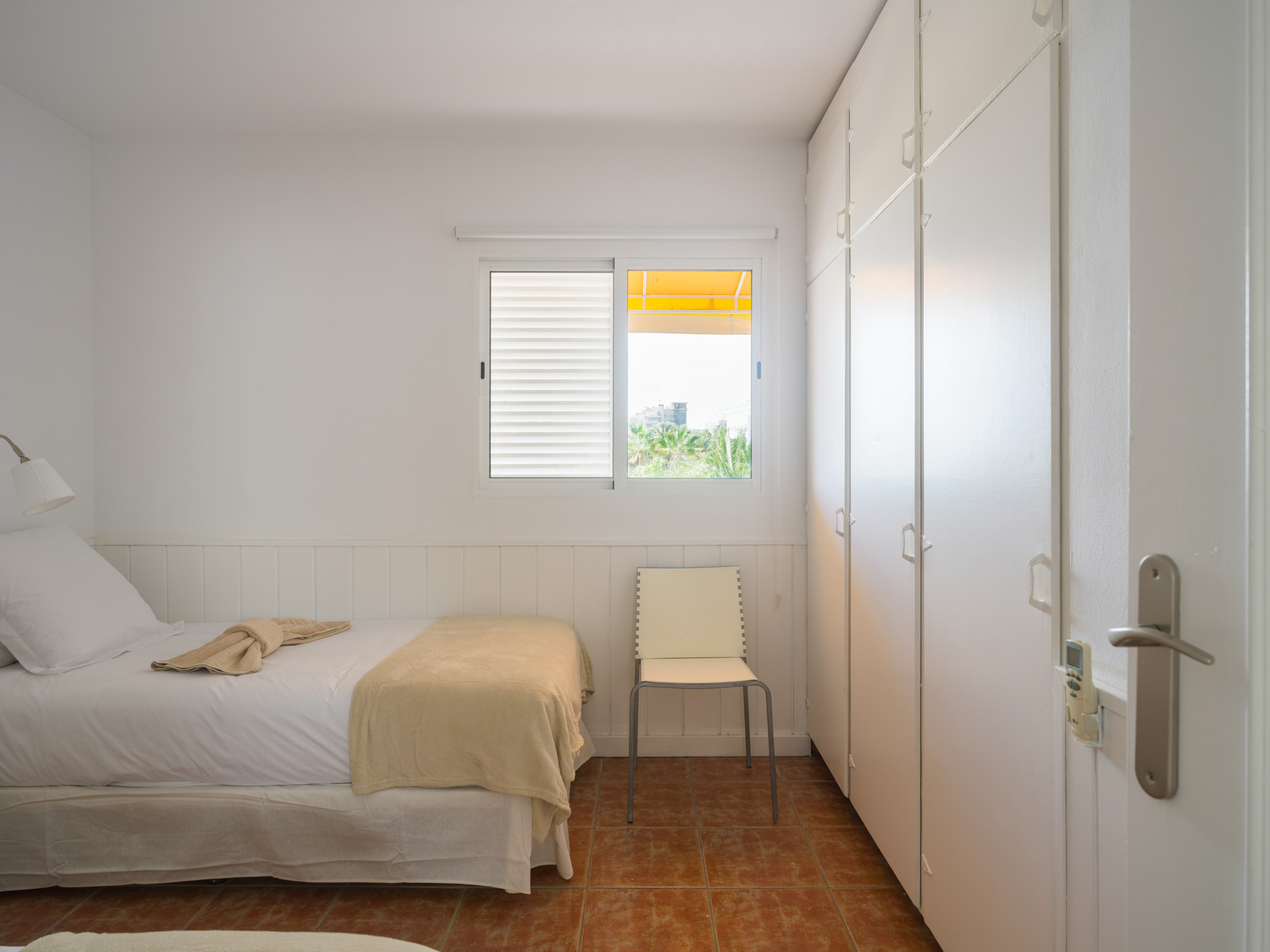 Un grande attrattivo è la sua terrazza di 9 metri quadrati con vista sul giardino e sul mare, perfetta per godersi momenti di tranquillità. L'abitazione include anche un posto auto privato all'aperto.