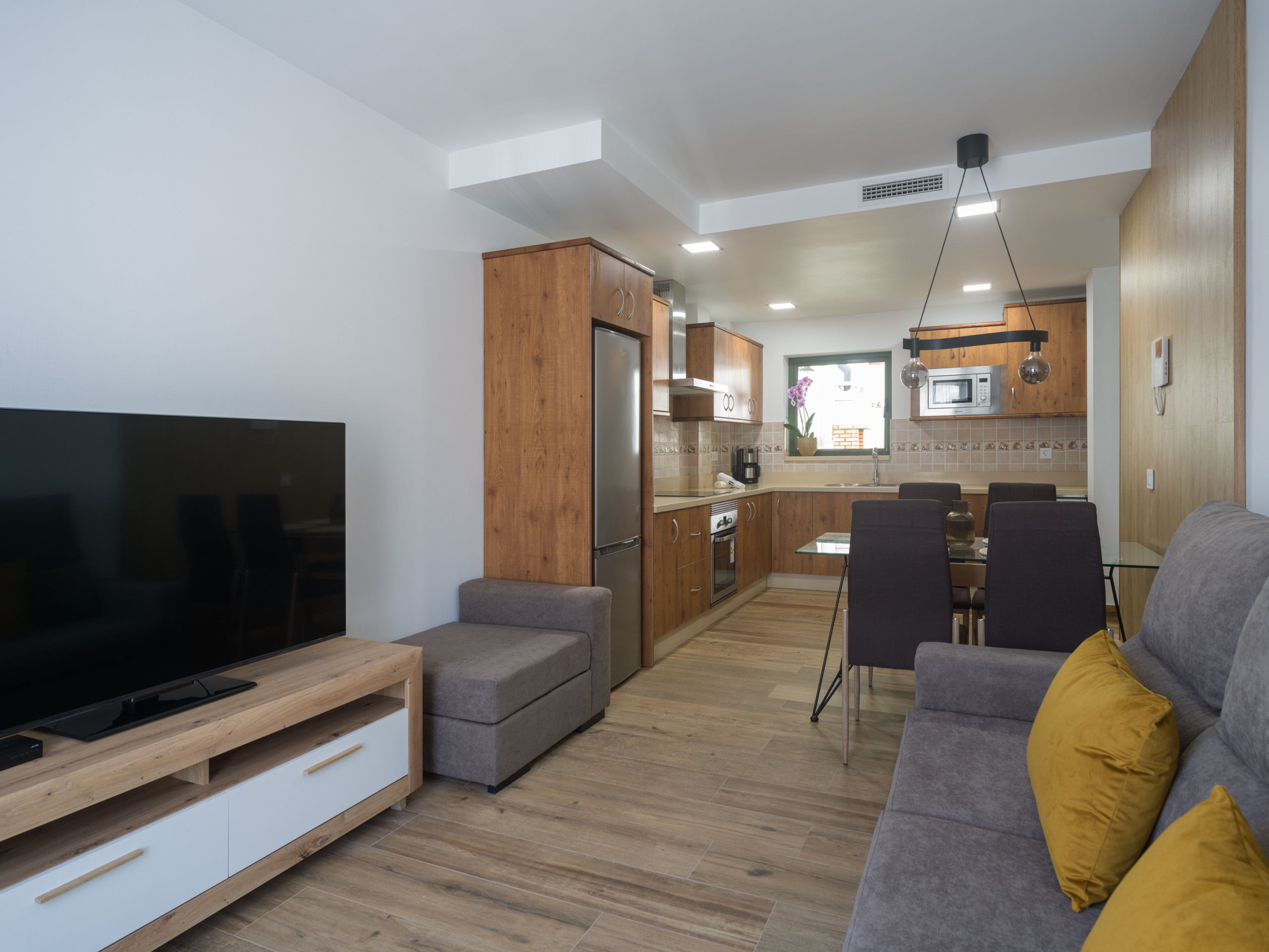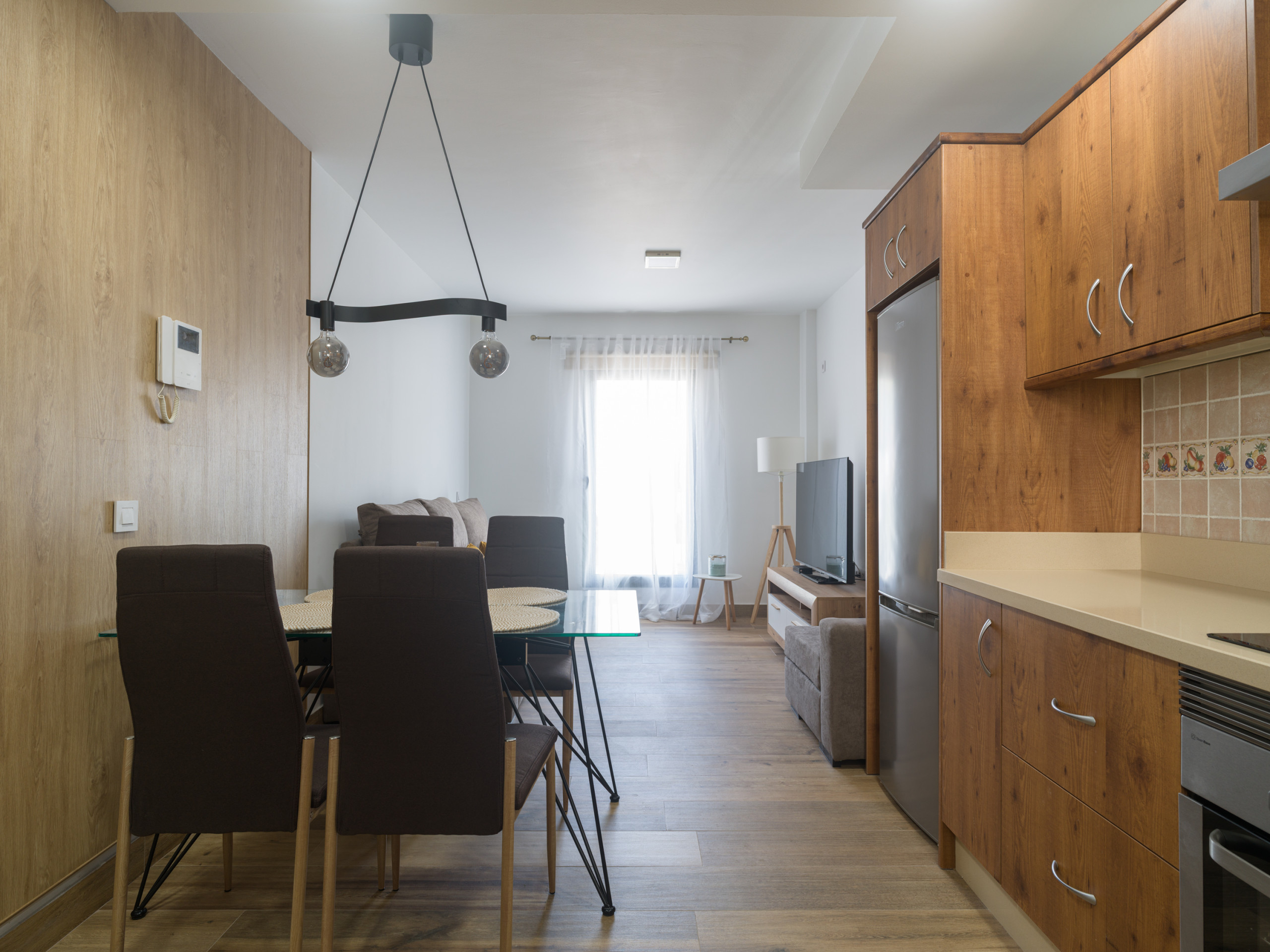 Questo appartamento di due camere da letto offre un ambiente caldo, luminoso e funzionale, pensato per il riposo e il comfort. Dispone di aria condizionata in tutta l'abitazione e una distribuzione perfetta per fino a 4 persone, con una camera da letto con letto matrimoniale e un'altra con letto singolo.