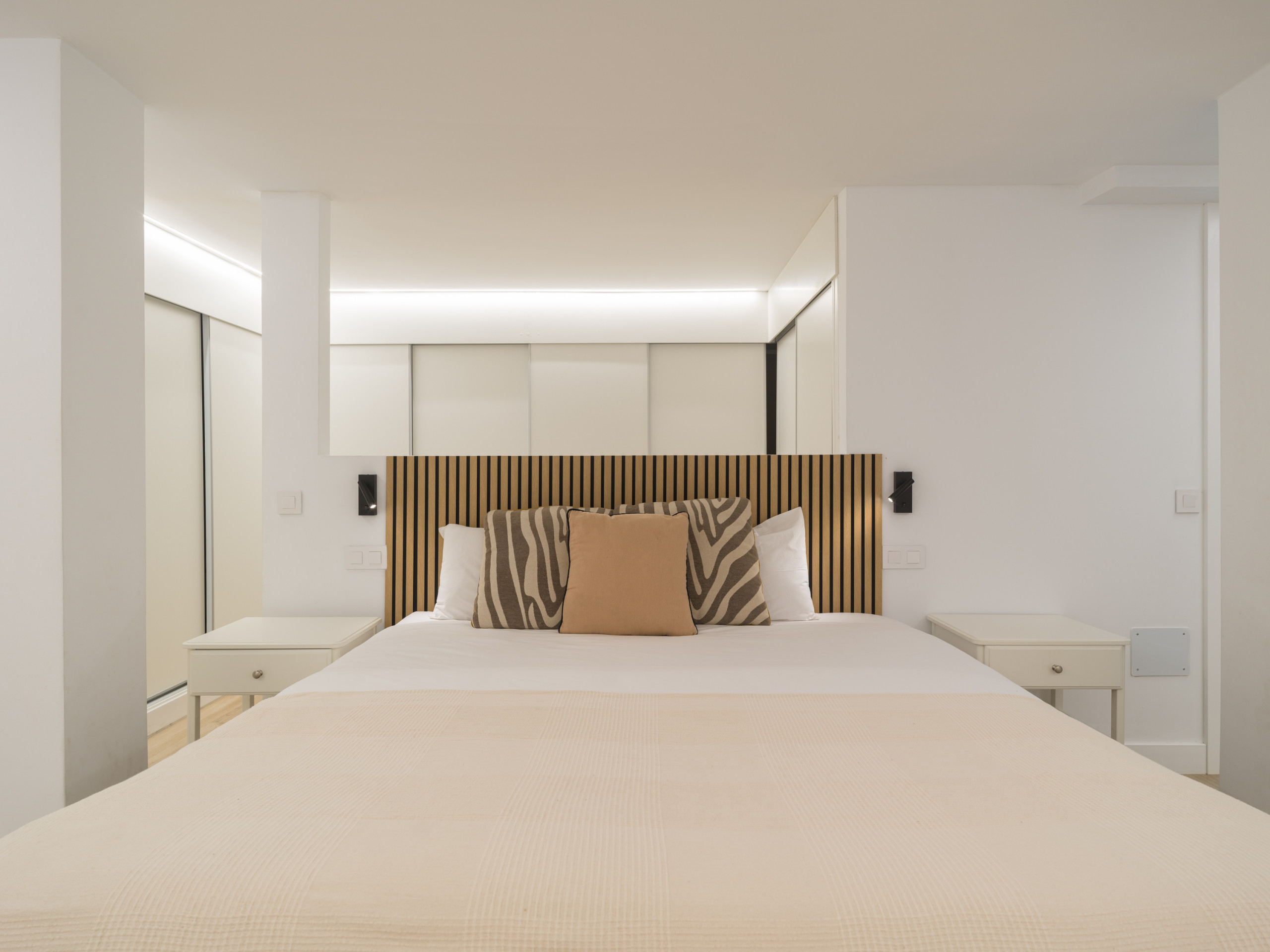 L'alloggio dispone di due camere da letto, la prima con un letto queen size, in fondo alla casa, per raggiungerla è necessario scendere due gradini, con un grande spogliatoio, smart tv e bagno e l'altra con due letti singoli, che offrono flessibilità per diverse configurazioni di ospiti. I due bagni con doccia garantiscono comfort e privacy durante il soggiorno, un bagno è nella suite e l'altro nelle aree comuni.
