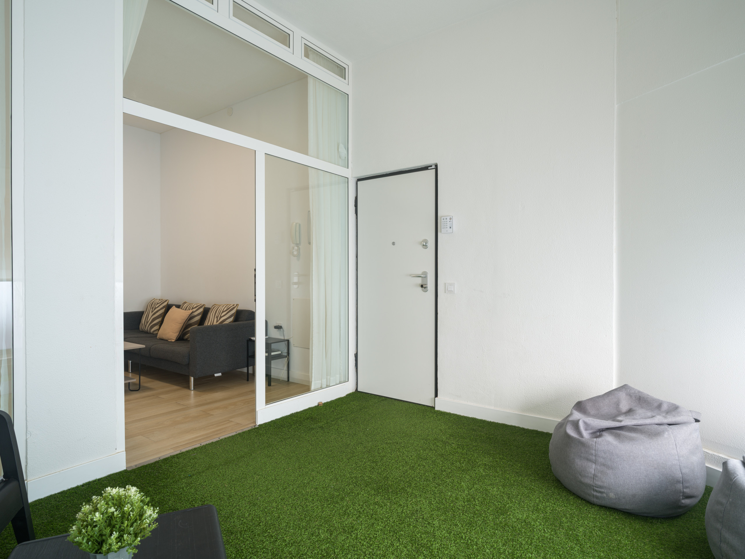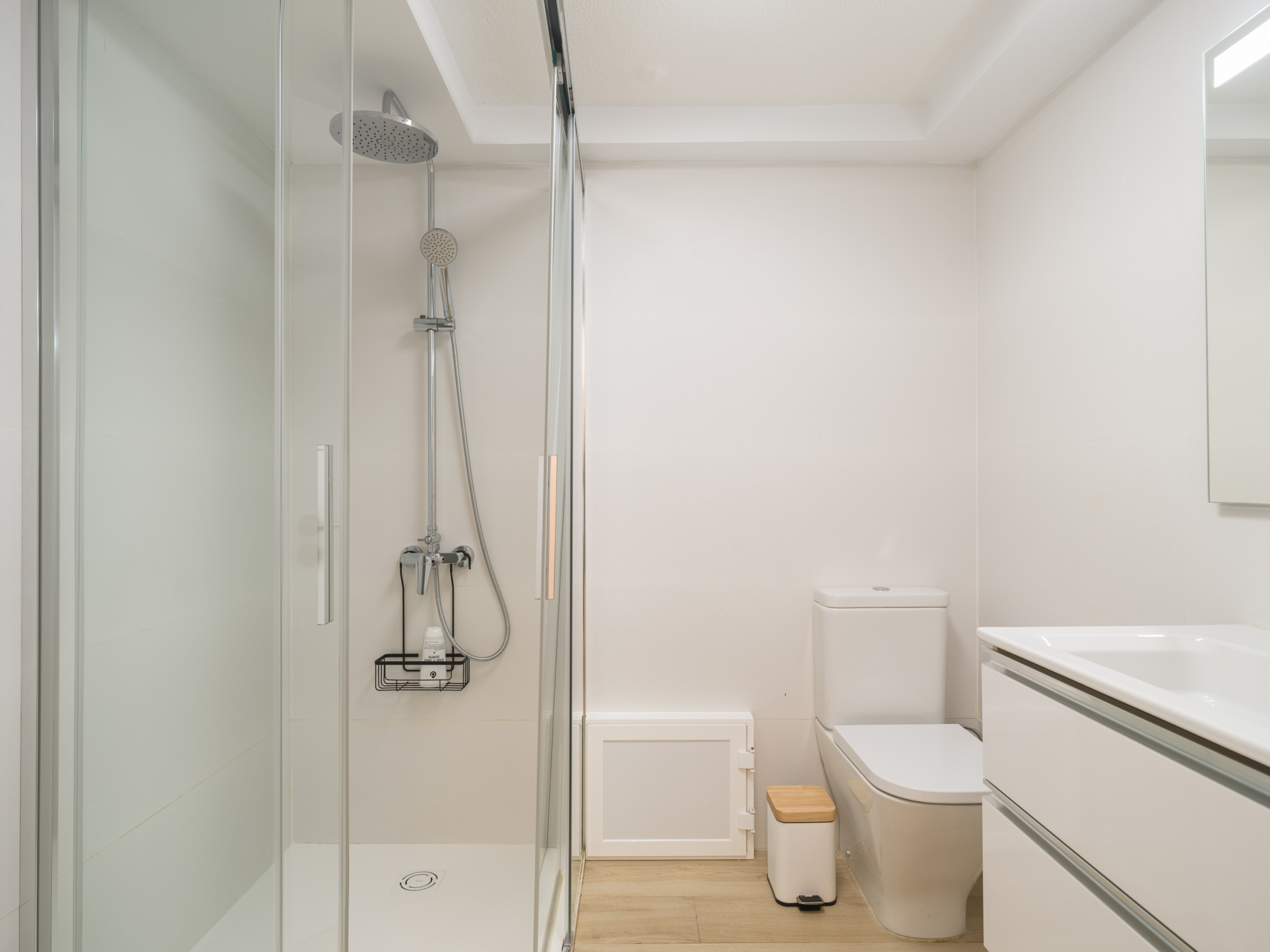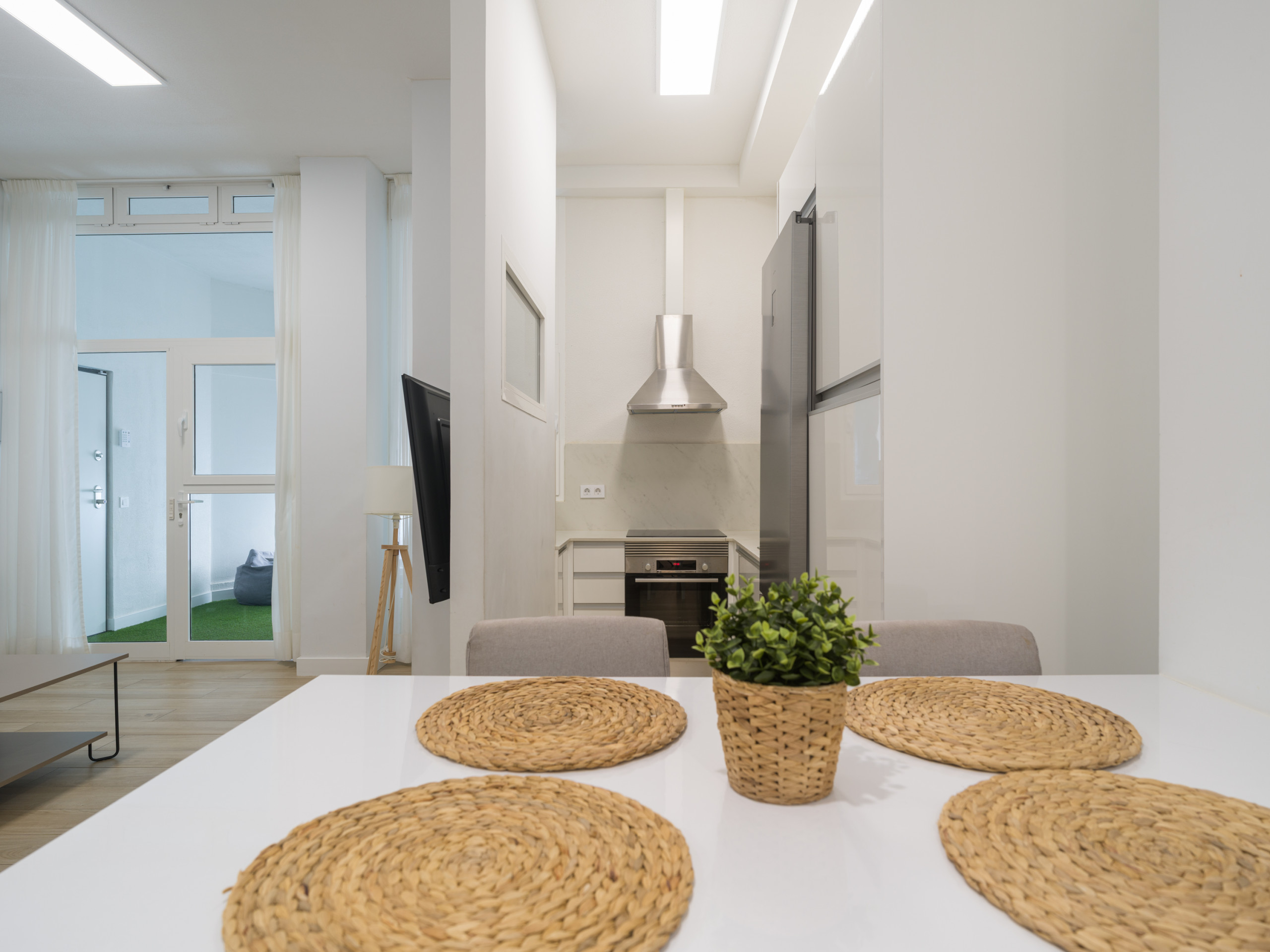 Dispone di una camera matrimoniale, spazio attrezzato per il telelavoro, bagno con doccia, accogliente soggiorno con tavolo da pranzo e cucina completamente attrezzata, con piano cottura in vetroceramica, frigorifero, microonde, congelatore, lavatrice, piatti, posate, utensili da cucina, caffettiera, tostapane, bollitore, spremiagrumi, ecc. Inoltre, dispone di due TV, ferro da stiro, asciugatrice e connessione Wi-Fi illimitata.
