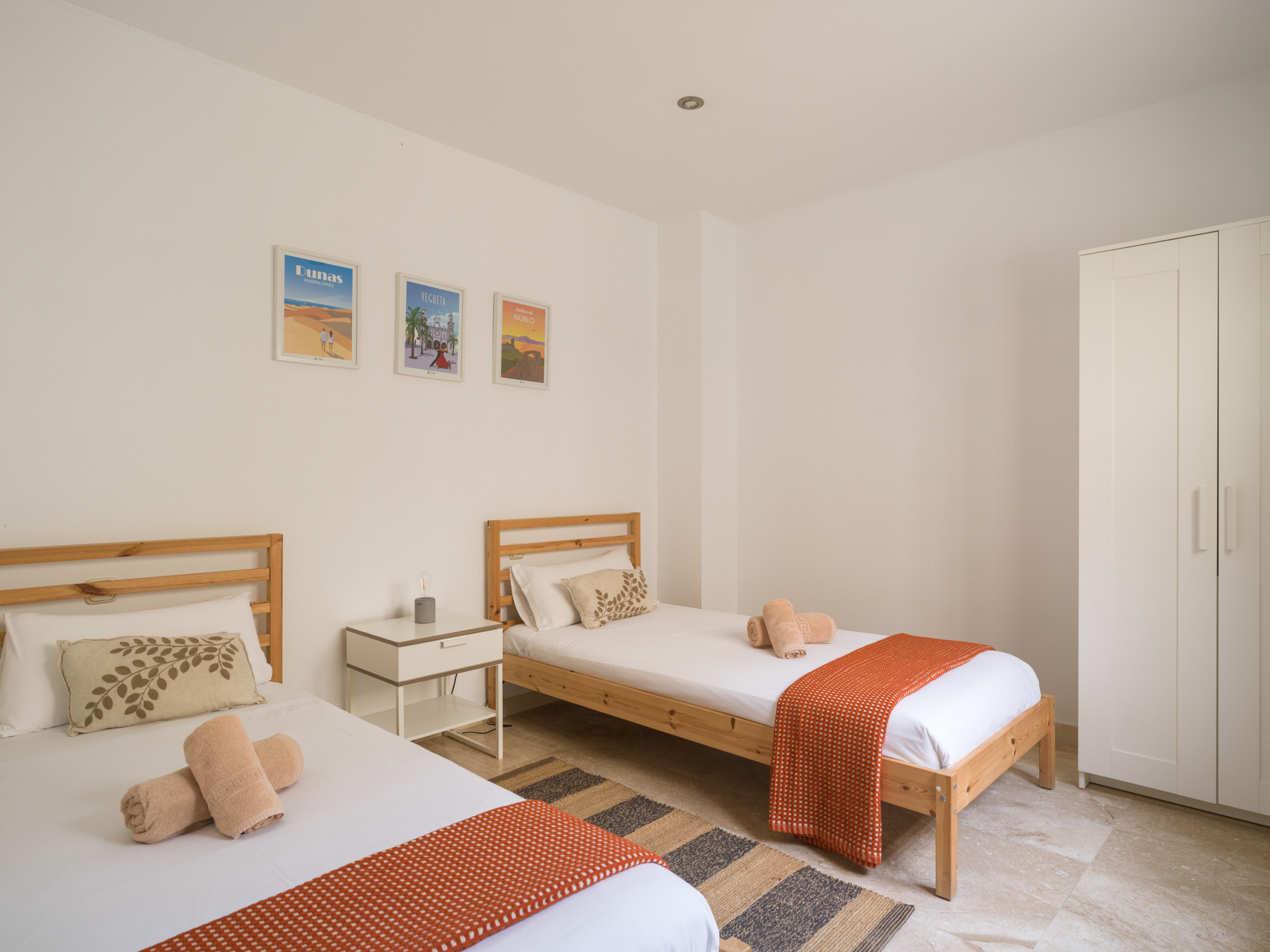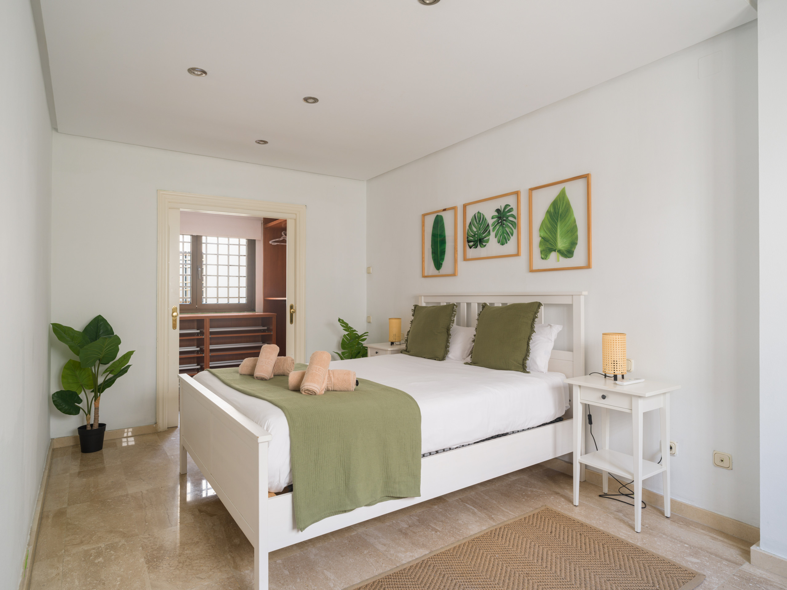 La proprietà dispone di due camere da letto con aria condizionata, entrambe presentate in uno stile moderno e confortevole. Le camere sono arredate una suite con letto matrimoniale (1,60 metri di larghezza), spogliatoio e bagno e l'altra con due letti singoli (0,9 metri di larghezza ciascuno) con biancheria da letto di qualità, che assicurano agli ospiti un sonno riposante. Inoltre, ci sono armadi a muro che offrono un ampio spazio di archiviazione.