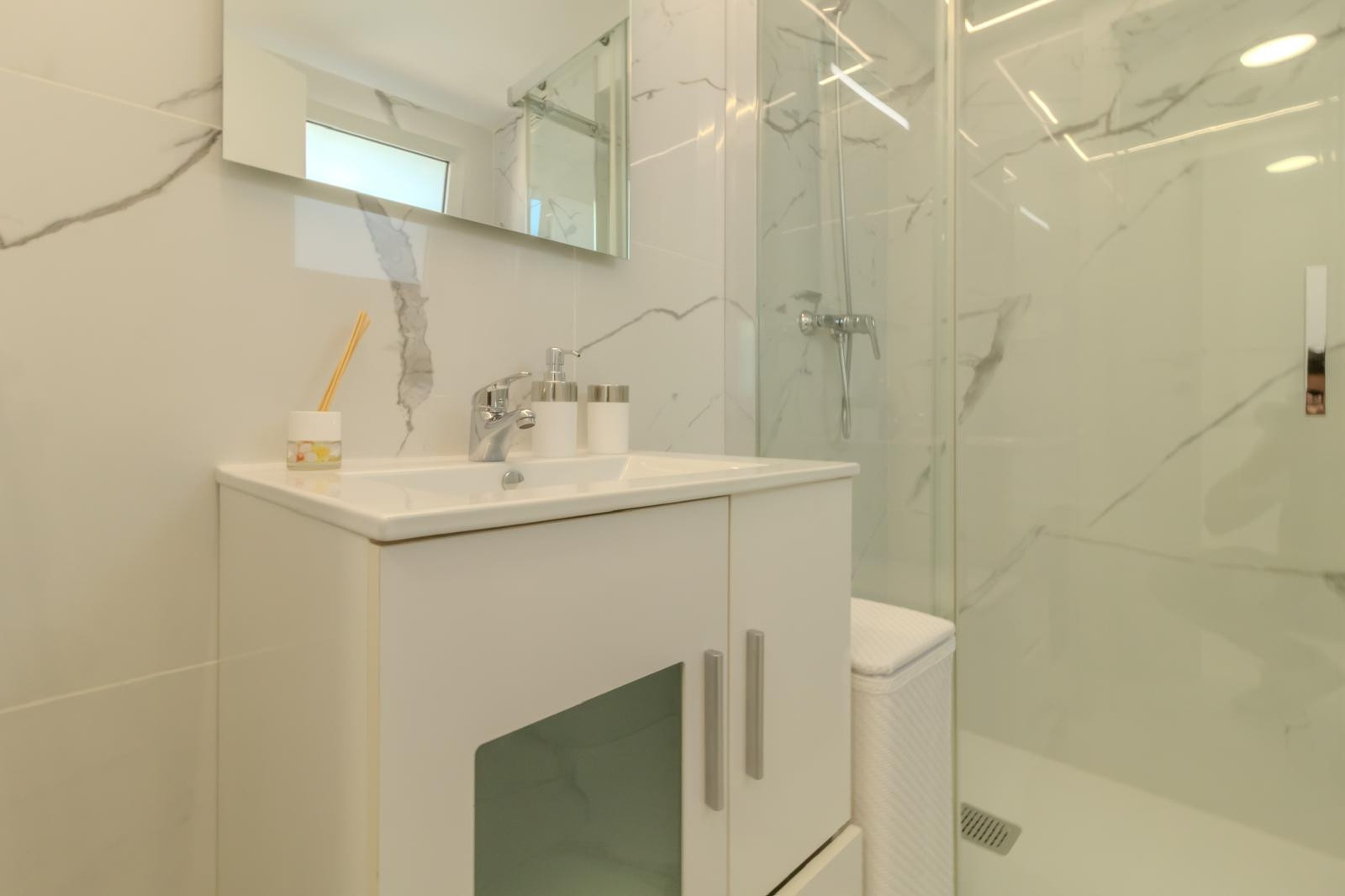 Il bagno è dotato di una doccia moderna e accessibile, progettata per garantire il comfort di tutti gli ospiti. L'alloggio dispone di aria condizionata individuale e una pompa di calore per mantenere una temperatura perfetta in qualsiasi periodo dell'anno.