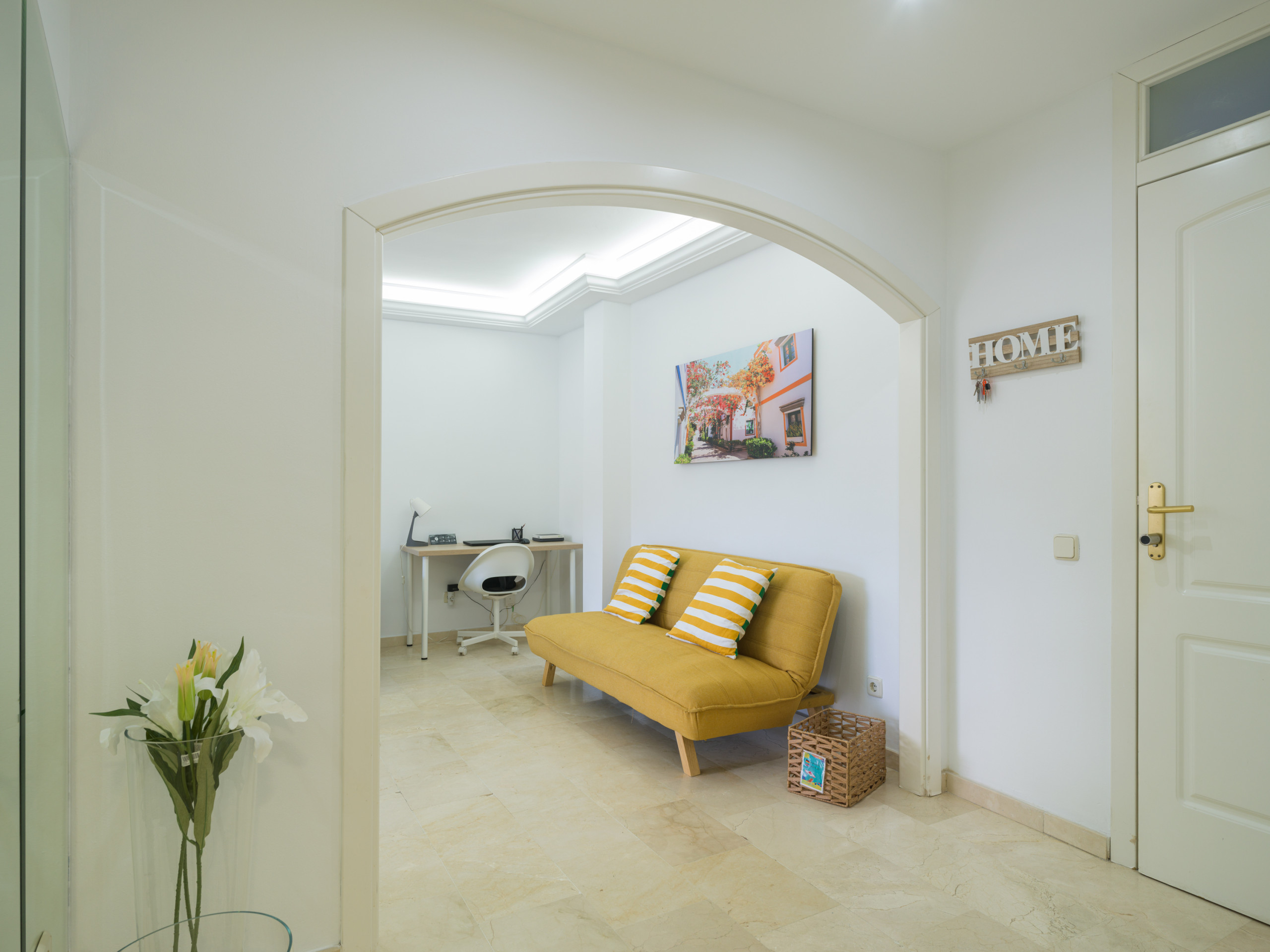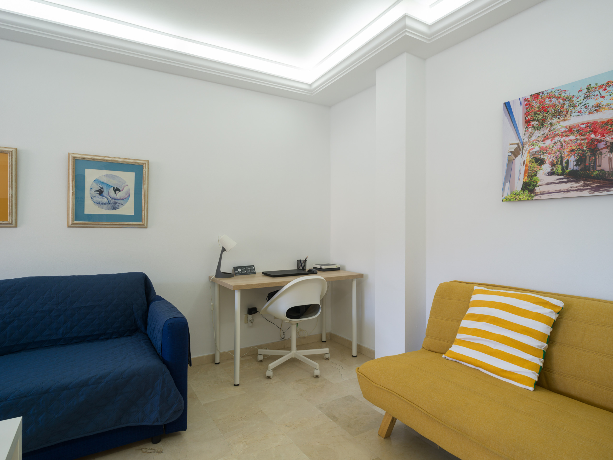 L'alloggio, esterno e molto luminoso, è progettato pensando al tuo comfort, con dettagli come aria condizionata individuale in ogni camera, WiFi, ferro da stiro e asse da stiro, e una pratica scrivania con presa di corrente. Inoltre, dispone di caratteristiche ecologiche come illuminazione LED efficiente e rubinetti a basso consumo idrico. Offre inoltre l'opzione di un posto auto nel medesimo edificio su richiesta con un costo aggiuntivo.