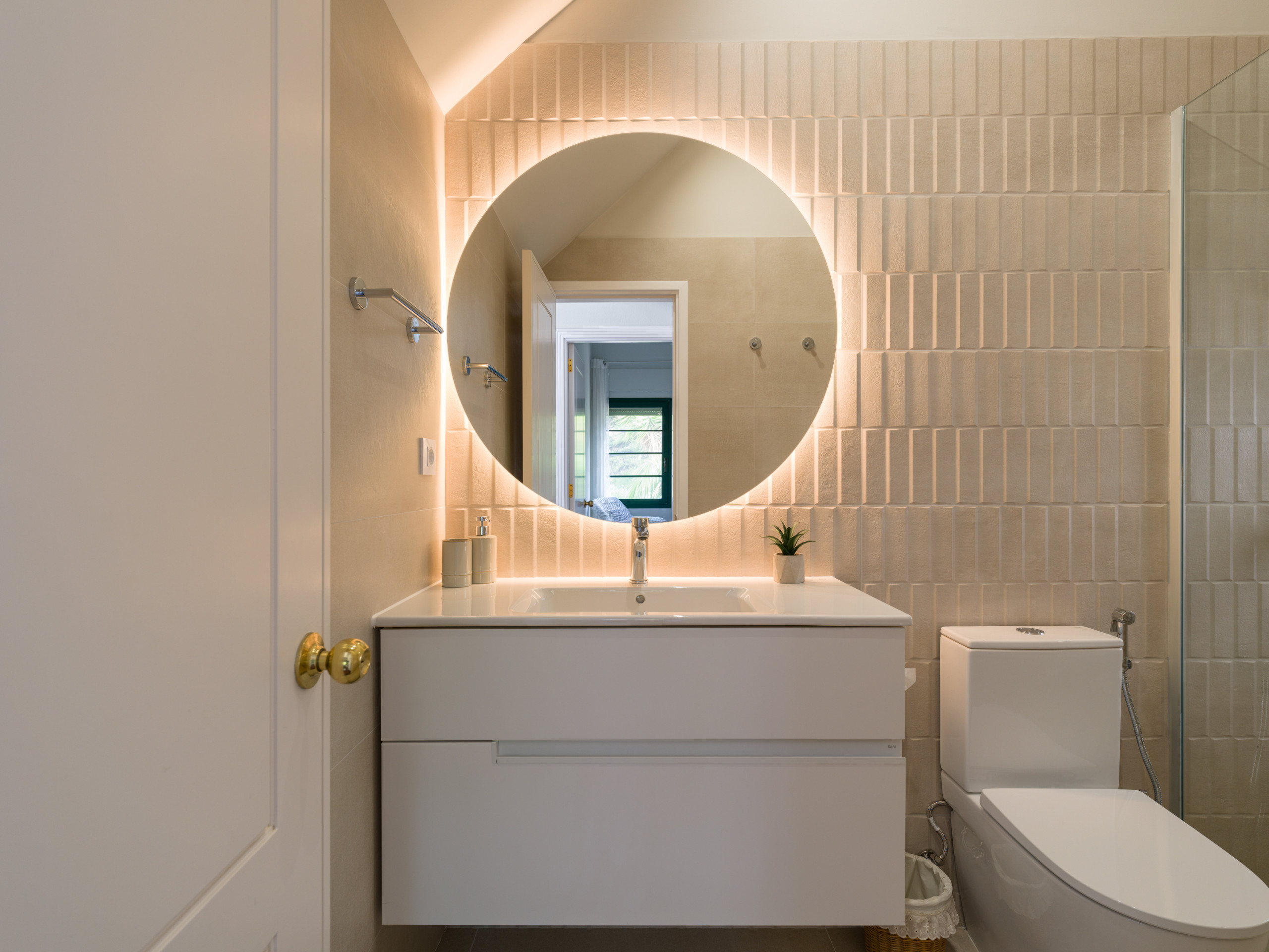 Tra le sue caratteristiche spiccano il pavimento in marmo, l'aria condizionata individuale in soggiorno e in alcune camere da letto, il riscaldamento a pompa di calore, la connessione WiFi e il camino per le serate più fresche.