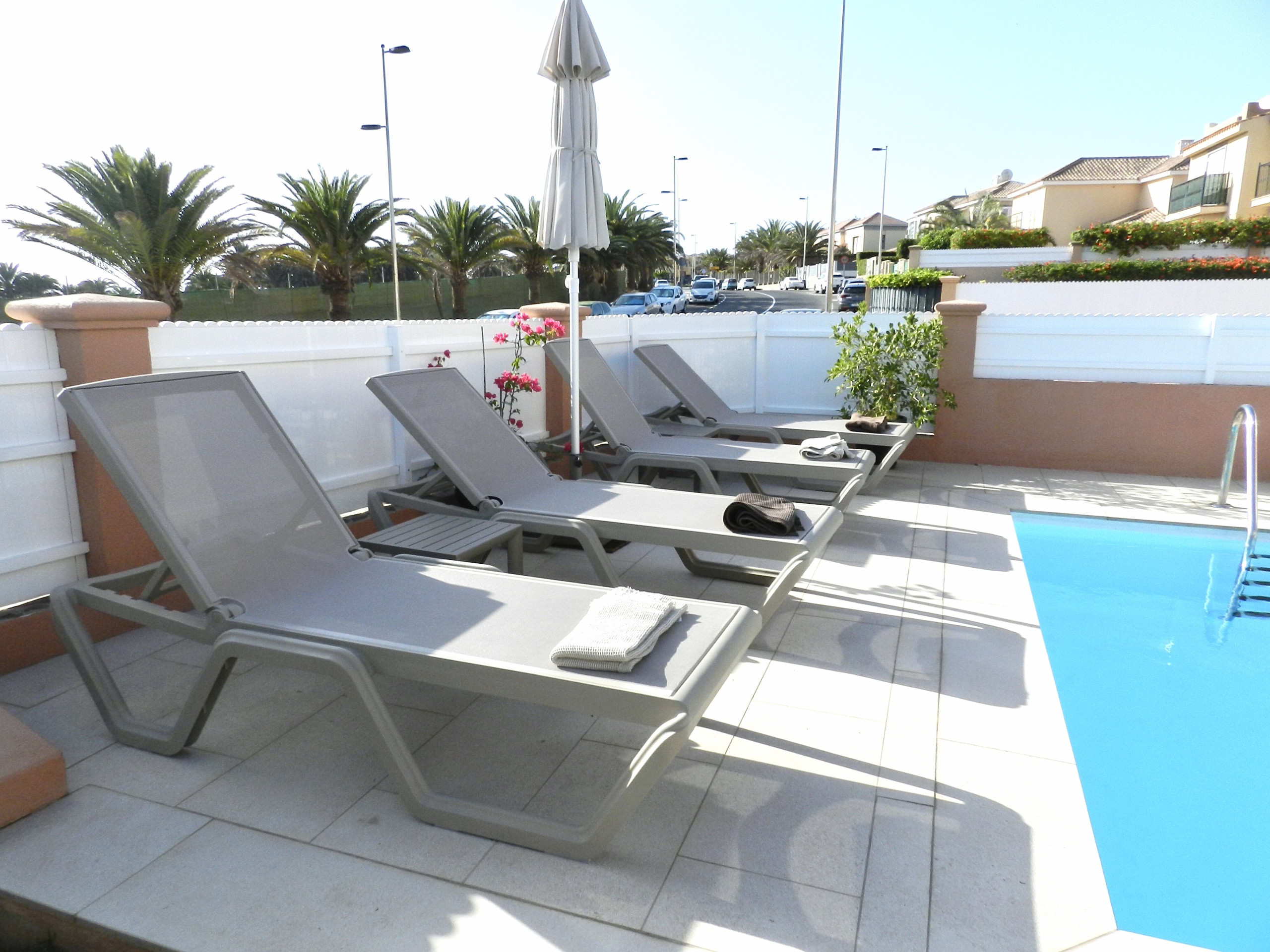 Splendida casa vacanze su due piani a Meloneras con un maestoso giardino con comodo portico e piscina privata con zona lettini. Possibilità di riscaldare la piscina con un extra.