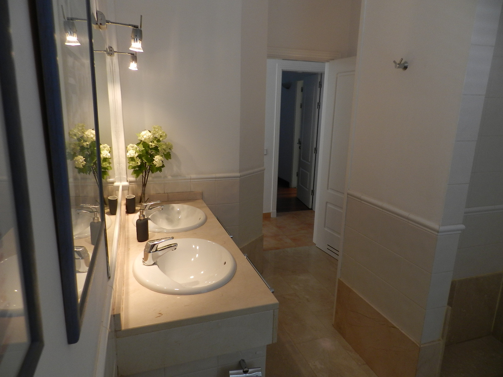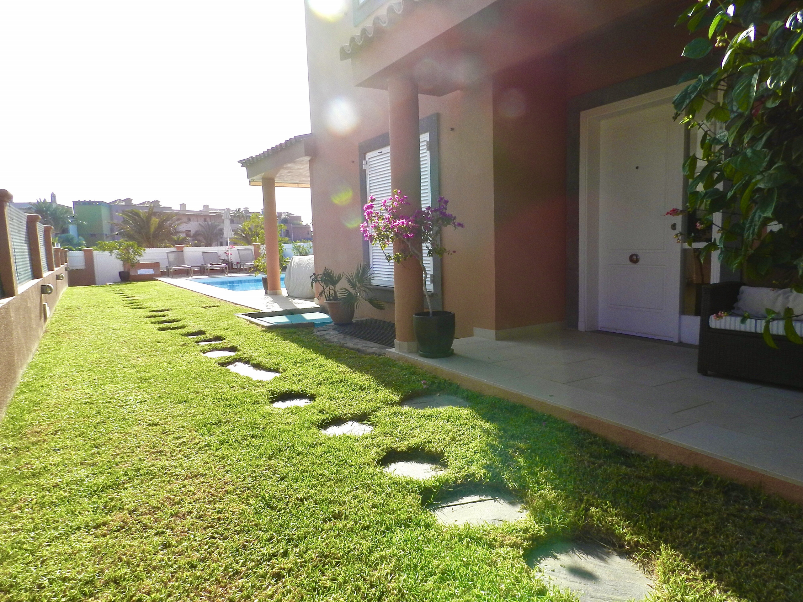 The property has 250m2 built above ground level on a plot of 380m2. It consists of 3 double bedrooms on the upper floor, one of them en suite with balcony overlooking the garden and pool and bathroom inside, the other with two single beds and views of the garden and the third one with double bed and views of the rear garden.