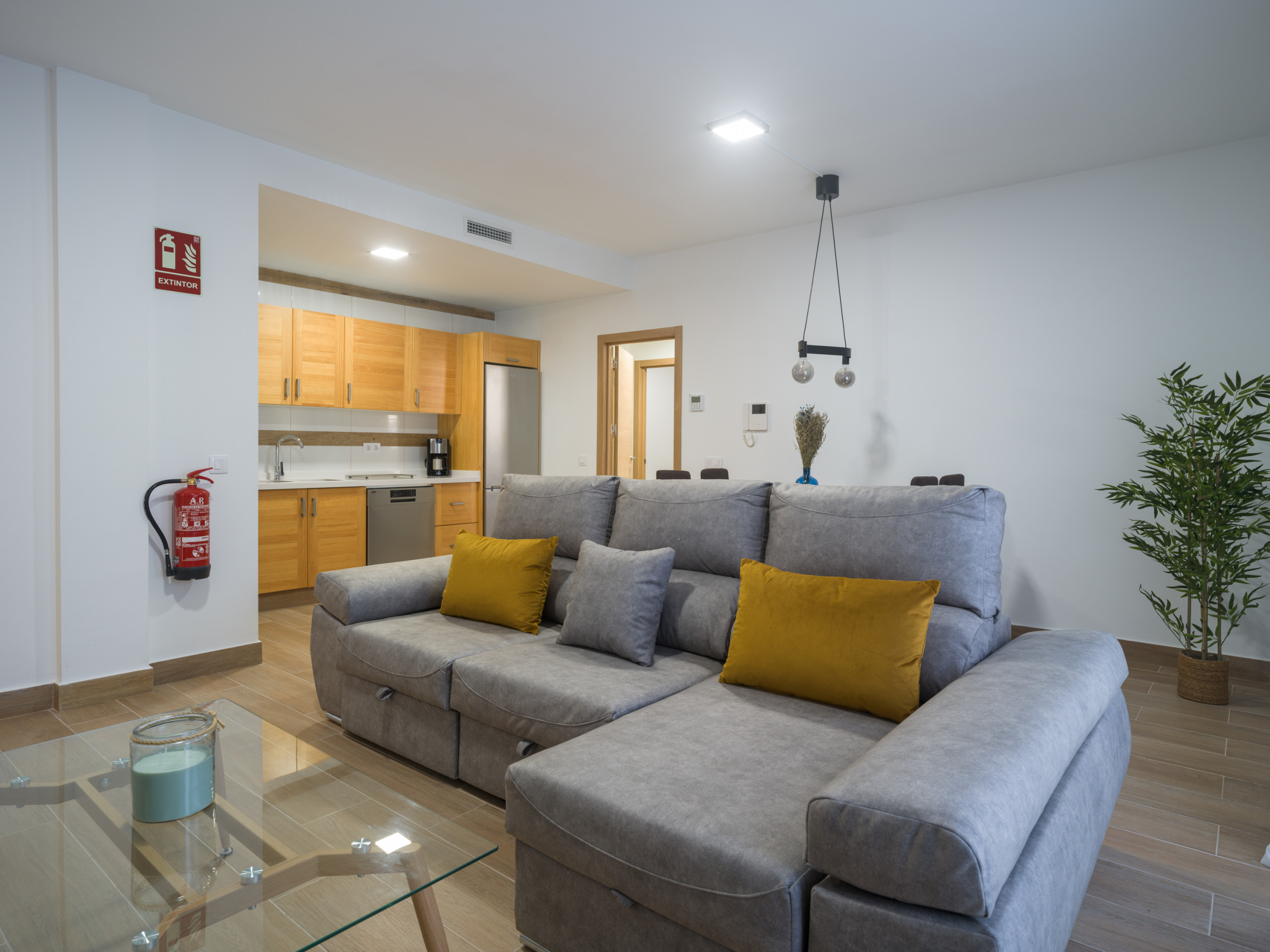 The property has two bedrooms, one with a double bed and another with a single bed, being ideal for small families or small groups. Its modern and bright design creates a pleasant and comfortable environment, designed so that you feel at home from the very first moment.