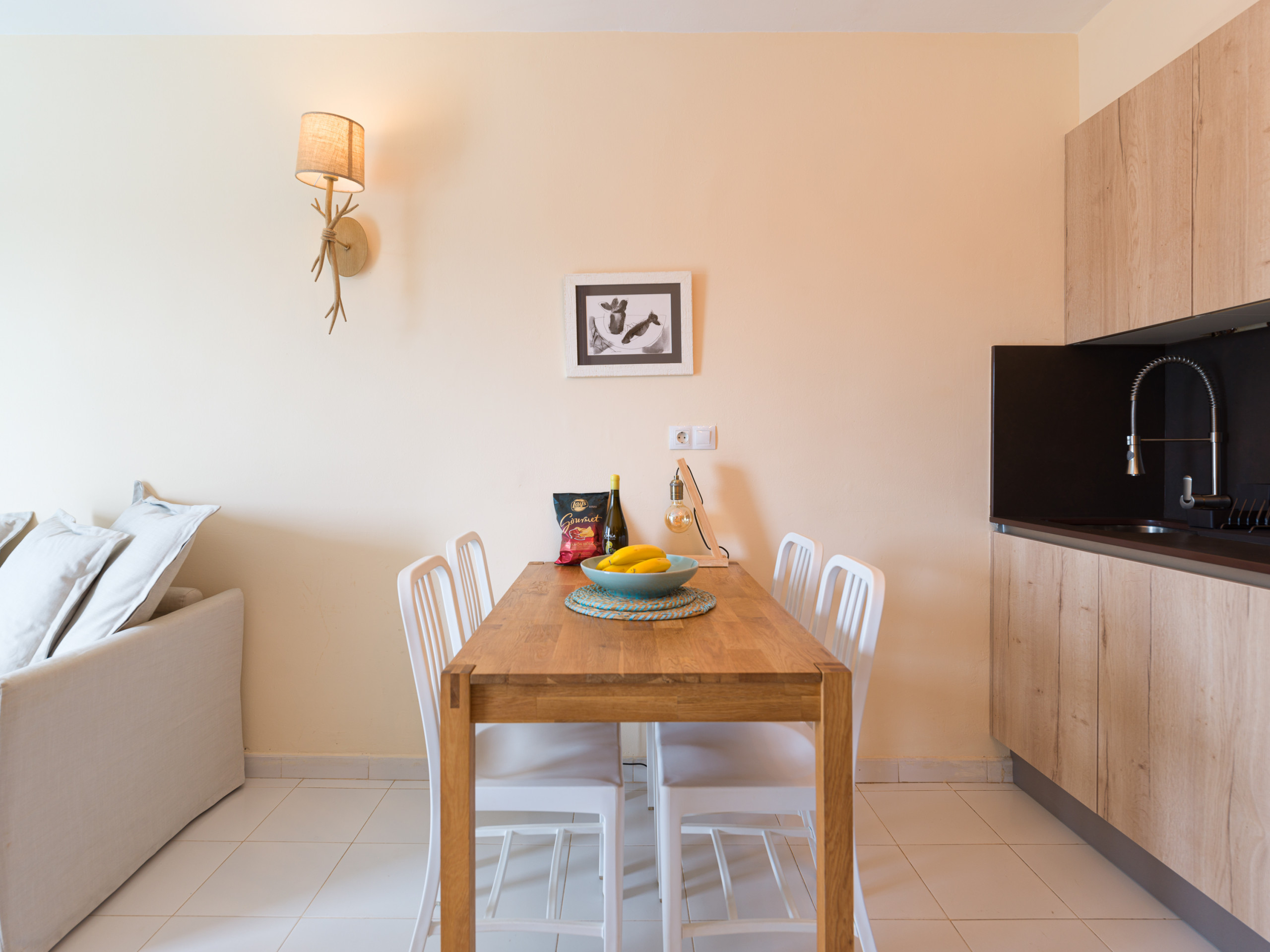 Kleines, aber schönes Apartment direkt am Strand (keine Straße dazwischen oder so). Neue moderne Küche, Backofen, Mikrowelle, genug Geschirr. Keine Gewürze/Öl/Zucker vorhanden, muss selber mitgebracht werden. Wifi funktionierte meistens ganz gut. Bett bequem, nicht allzu weich. Die Wände im Gebäude sind eher dünn, man hört halt dass da noch andere Ferien machen oder wohnen. Freundliche Nachbarn nebenan, man teilt sich jeweils die Treppe die zu den Apartments führt. Je nachdem wie man auf der Terrasse sitzt, sieht man entweder durch/neben Palmen an den Strand und Meer oder man hat einen Blick auf kaum bebaute Landschaft mit Bergen im Hintergrund. Check-In problemlos, Alma war pünktlich, sehr freundlich und hilfsbereit.