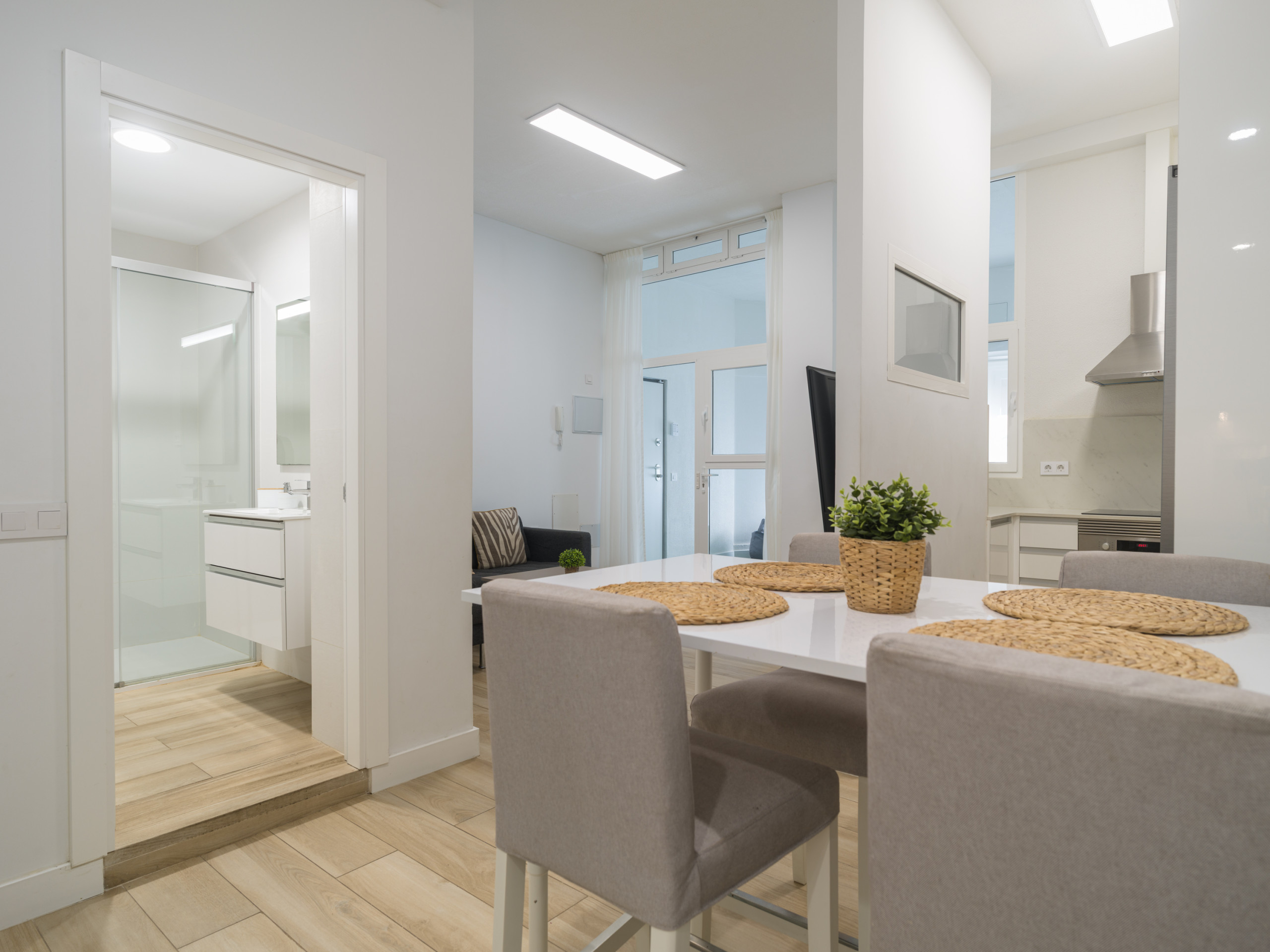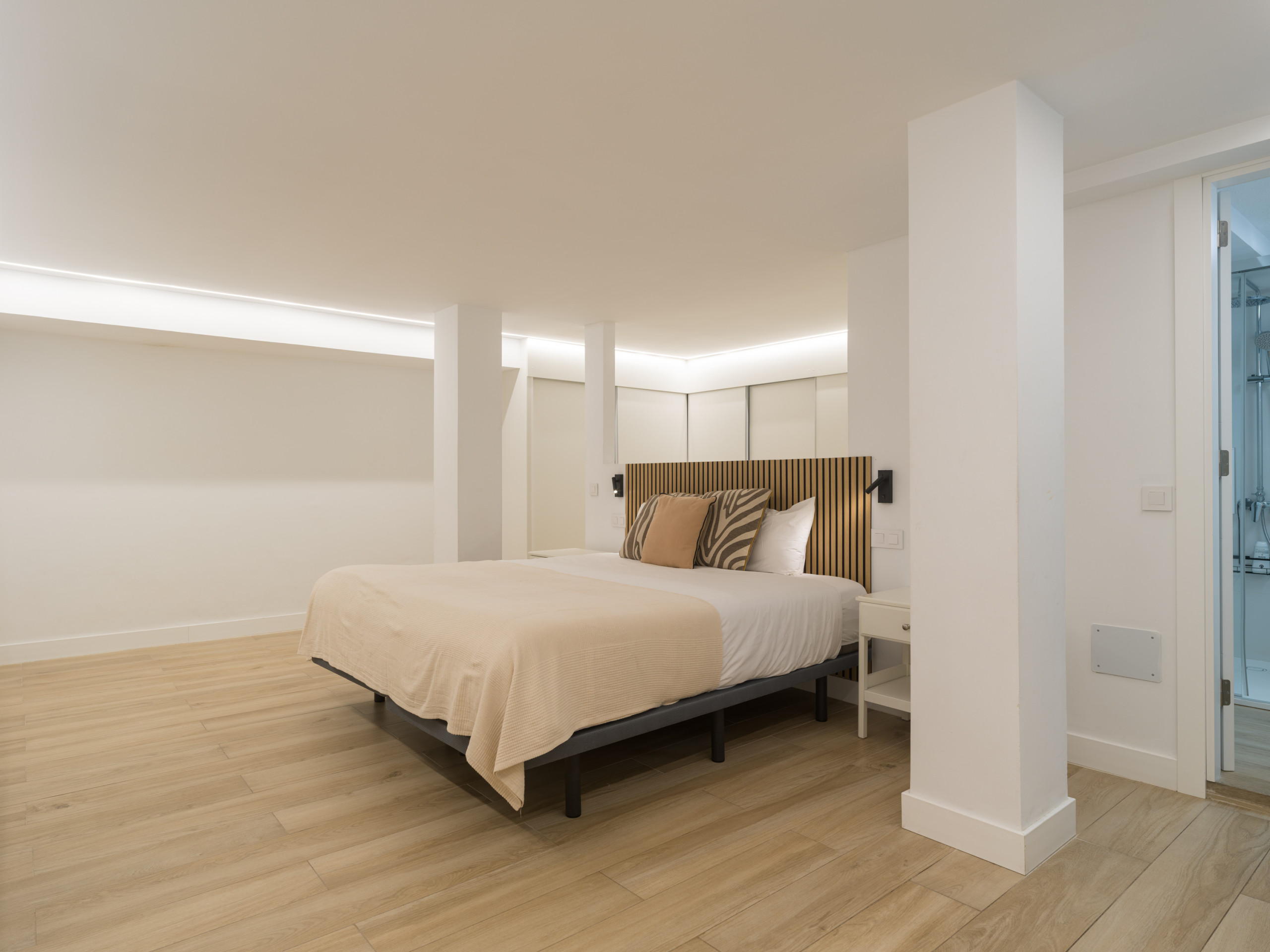 The accommodation has two bedrooms, the first with a queen-size bed, at the end of the house, to reach it you have to go down two steps, with a large walk-in wardrobe, smart TV and bathroom, and the other with two single beds, which offer flexibility for different guest configurations. The two bathrooms with shower guarantee comfort and privacy during your stay, one bathroom is in the suite and the other in the common areas.