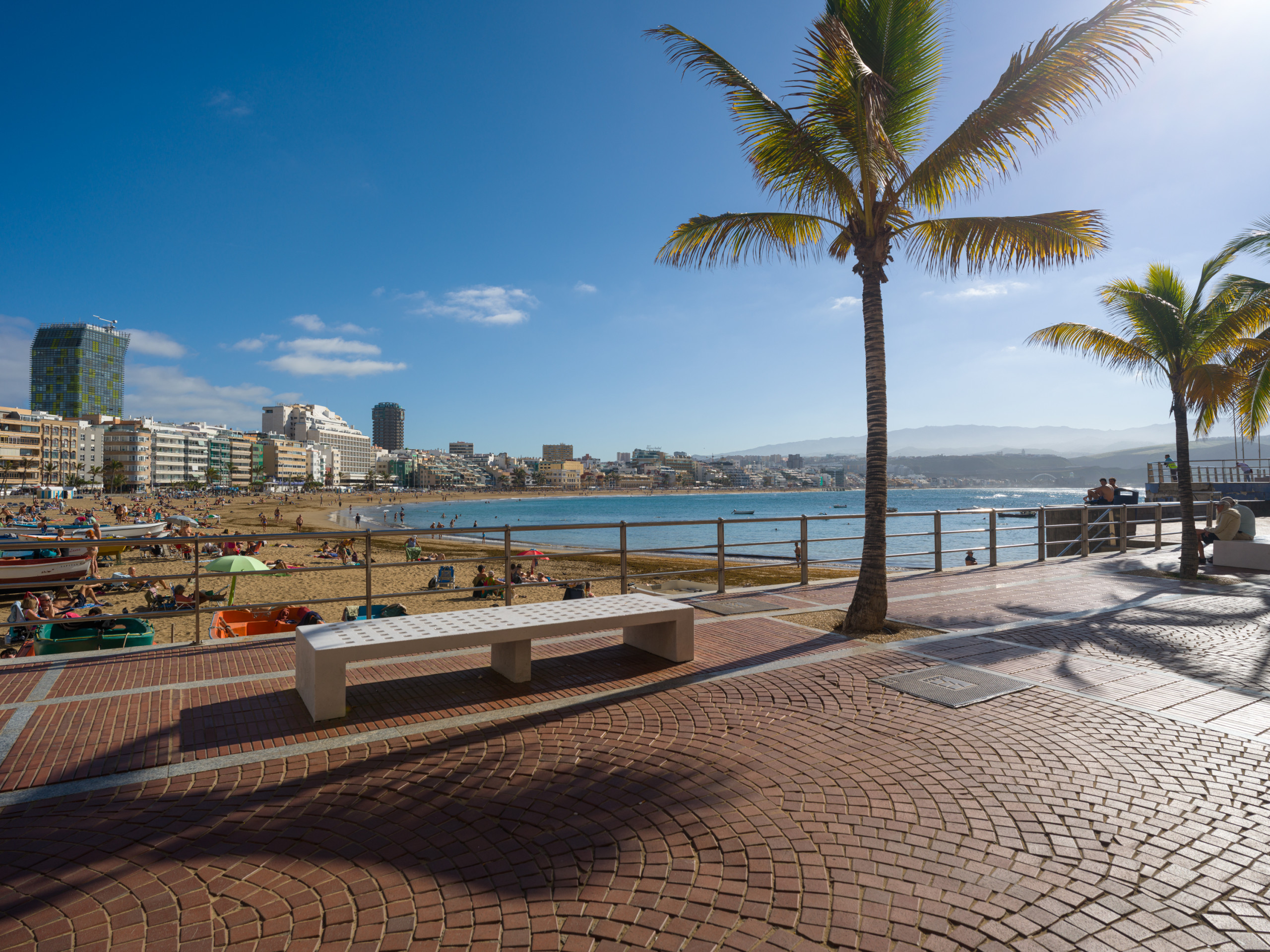 "La Playa de Las Canteras" is a long stretch of sand, occupying some 3800 metres of coastline, stretching across the bay.